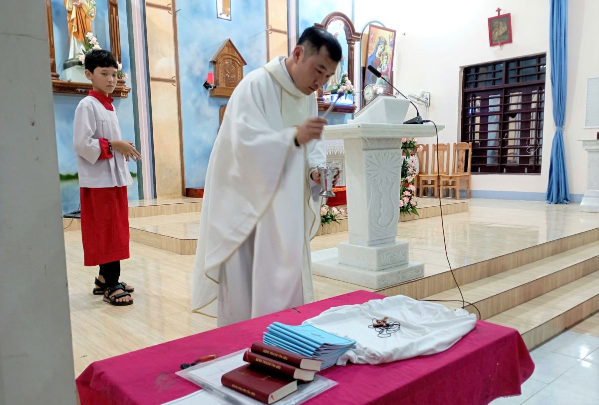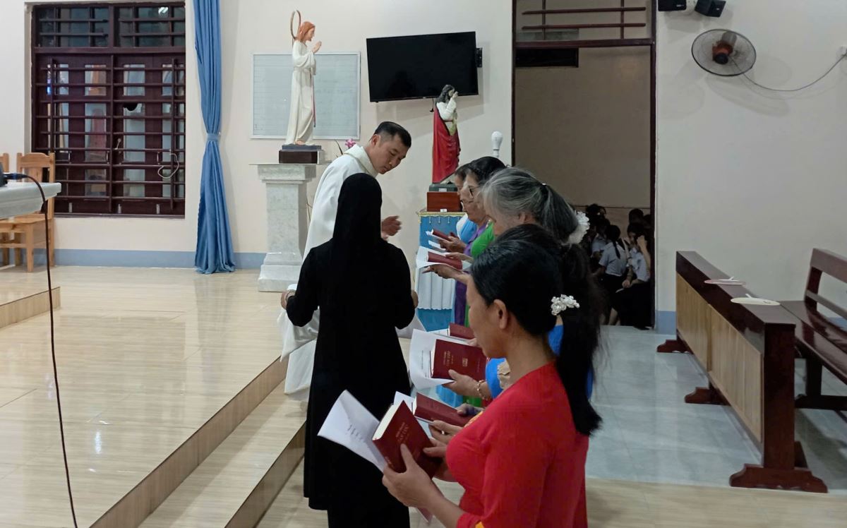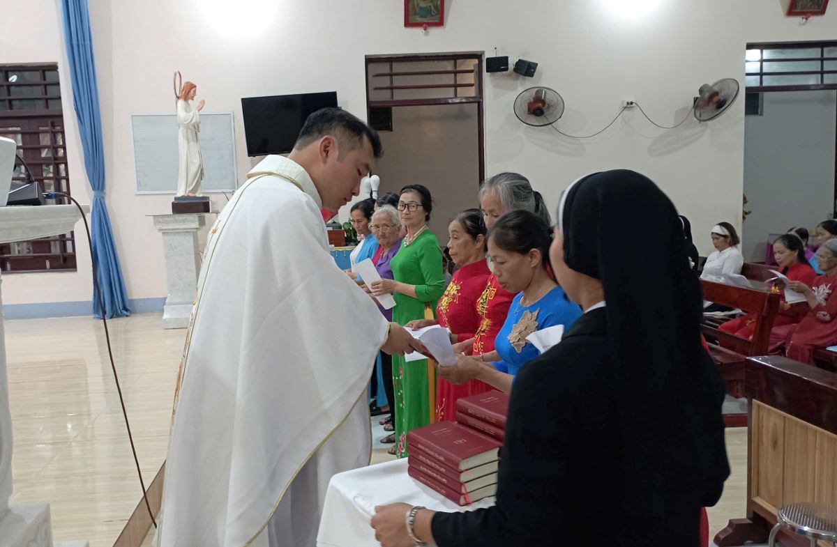 Cha Chủ tế trao Sách Phúc Âm cho các hội viên cam kết lần đầu