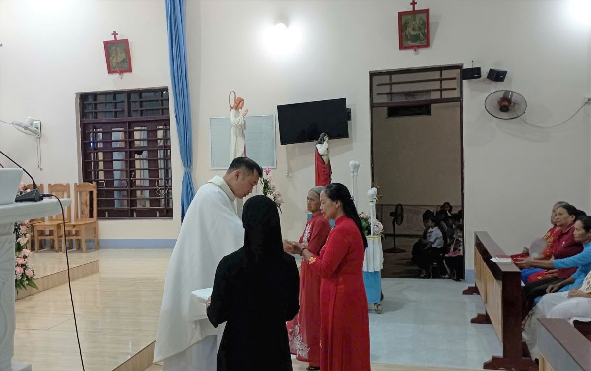 Vào lúc 19g00, Chúa Nhật XIII Thường Niên – mừng lễ trọng kính hai thánh Tông đồ Phêrô và Phaolô – tại ngôi thánh đường Giáo xứ Vàng Cài, Hội Dòng Mến Thánh Giá Hưng Hóa hân hoan đón nhận 9 hội viên cam kết lần đầu, 42 hội viên cam kết tạm và 2 hội viên cam kết vĩnh viễn. Thánh lễ do Cha xứ Phêrô Trần Mạnh Cường chủ tế. Hiện diện trong Thánh lễ còn có Dì Đặc trách Hiệp Hội, Dì Trợ úy, các thành viên Hiệp hội cùng cộng đoàn dân Chúa Giáo xứ Vàng Cài.