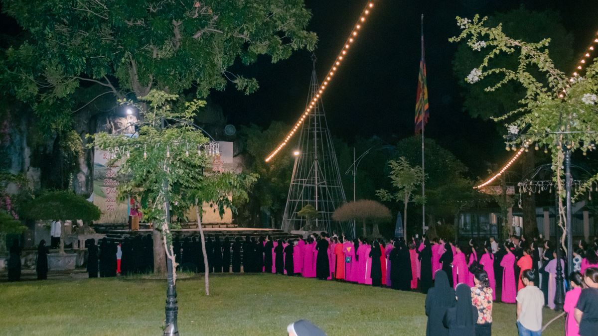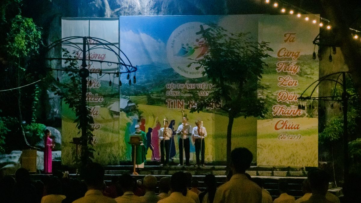 Vào lúc 19g30, cộng đoàn cùng nhau tập trung trước hang đá để tham dự nghi thức hành hương Năm Thánh do cha Giuse Nguyễn Đình Tuyến chủ sự. Trong bầu khí sốt sắng và trang nghiêm, từng bước chân hành hương như lời tuyên xưng đức tin, diễn tả khát mong được kín múc ân sủng Năm Thánh và canh tân đời sống Kitô hữu trong niềm hy vọng nơi Đức Kitô Phục Sinh. Đối với các hội viên Hiệp Hội Tín Hữu Mến Thánh Giá, nghi thức hành hương còn là một cơ hội quý giá để dâng lên Chúa những thao thức, ước nguyện và cam kết của đời mình. Với lòng đơn sơ và khiêm tốn, họ cùng nhau bước đi trong ánh sáng Lời Chúa, ước mong được nên đồng hình đồng dạng với Đức Kitô Chịu Đóng Đinh, để đời sống mỗi ngày trở thành một chứng tá hy vọng và tình yêu giữa lòng Giáo xứ, Giáo Phận và xã hội hôm nay.