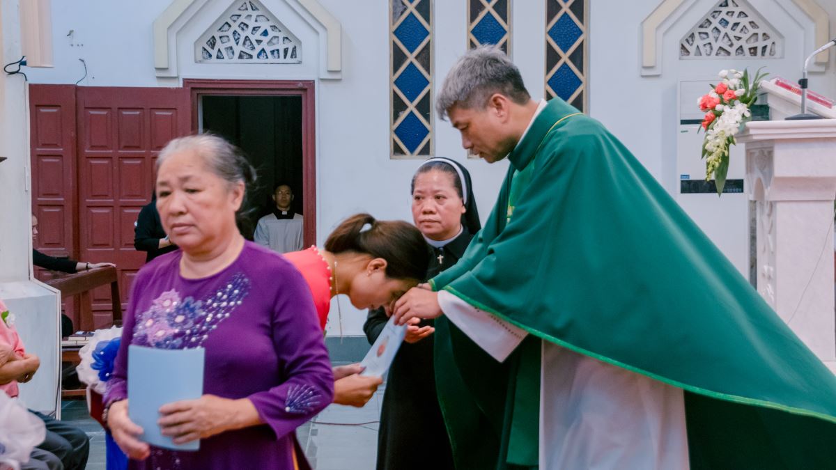 WMTGHH - Hội Những Người Mến Thánh Giá do Đức cha Lambert de la Motte sáng lập với ước nguyện “phổ biến khắp nơi tình yêu thực tiễn đối với Thánh Giá Con Thiên Chúa” và góp phần vào công cuộc Phúc Âm hóa Á châu. Hôm nay, lý tưởng ấy tiếp tục được triển nở nơi Giáo phận Hưng Hóa, cách riêng trong Thánh Lễ Gia Nhập, Cam Kết Lần Đầu và Cam Kết Tạm của Hiệp Hội Tín Hữu Mến Thánh Giá Sơn Lộc, như một lời đáp trả quảng đại của con người trước tình yêu vô biên của Thiên Chúa nơi Thập Giá. Để chuẩn bị tâm hồn cho ngày Cam kết và Gia nhập, vào lúc 14g30 ngày 15.8.2025, các hội viên đã cùng nhau bước vào giờ tĩnh tâm và lãnh nhận Bí tích Giao Hòa. Giây phút trở về với Chúa trong thinh lặng và lắng đọng nội tâm đã giúp mỗi người được thanh luyện tâm hồn, canh tân đời sống đức tin, để bước vào Thánh Lễ với một trái tim tinh tuyền, sẵn sàng dâng hiến và thưa lên lời cam kết trọn vẹn trước Thánh Giá Chúa Kitô.