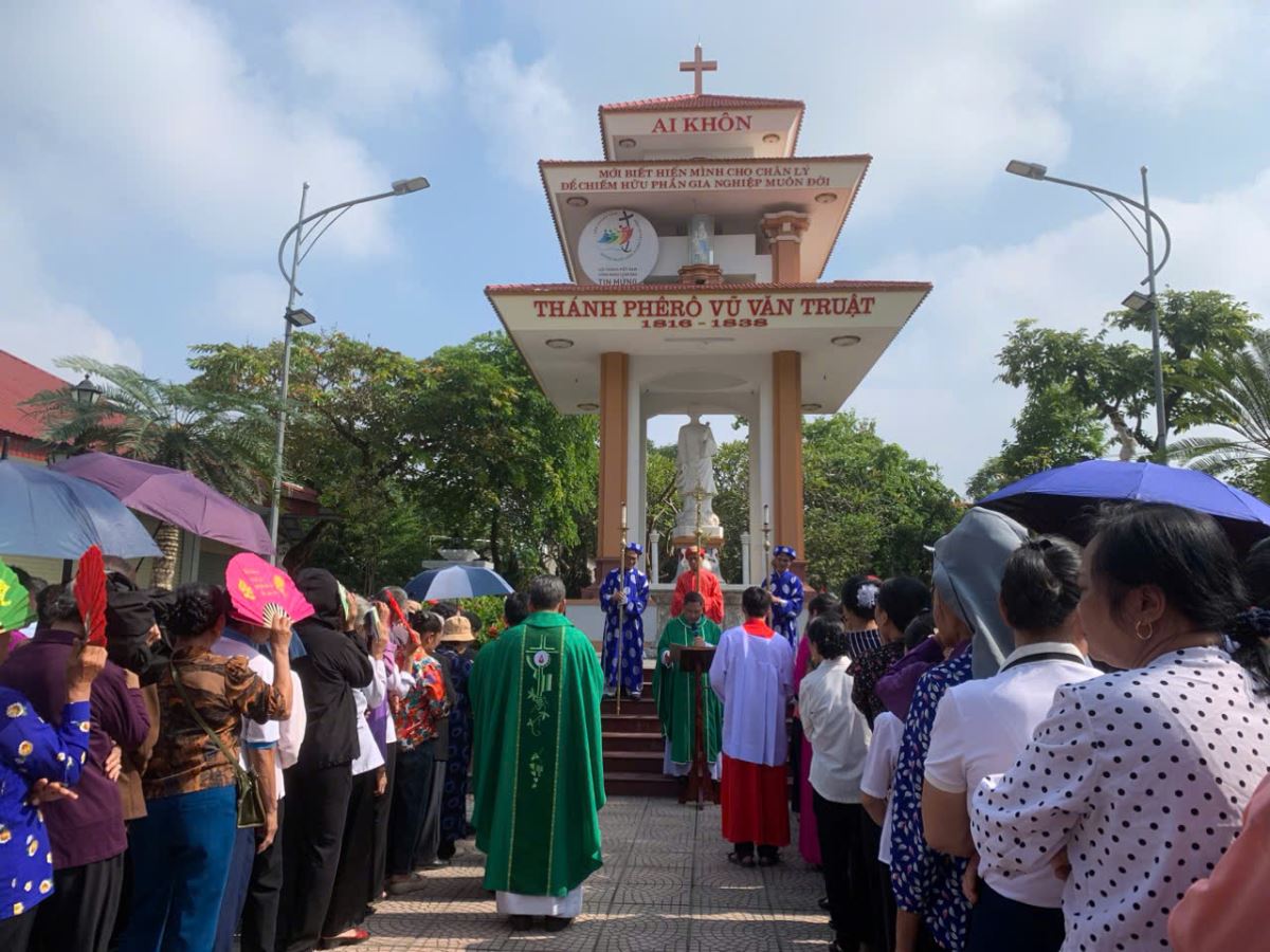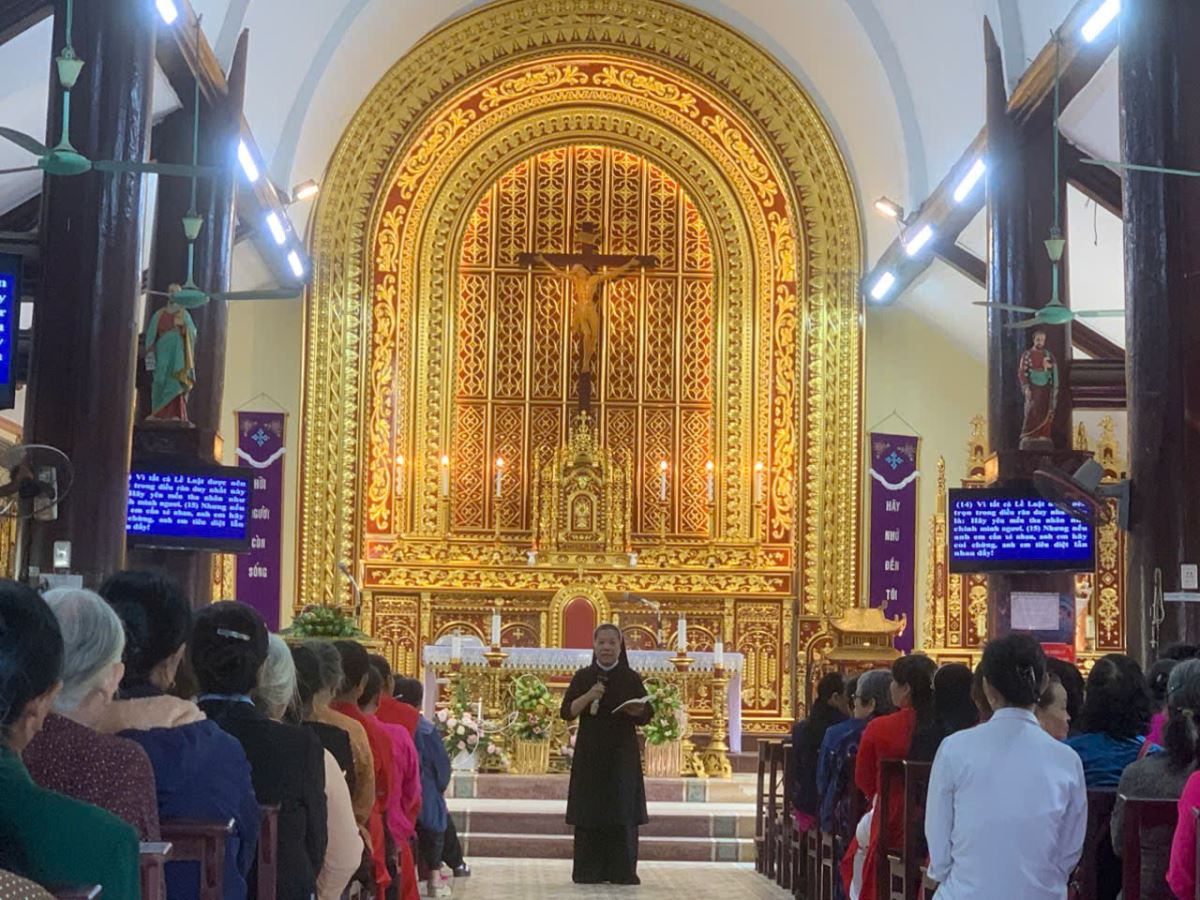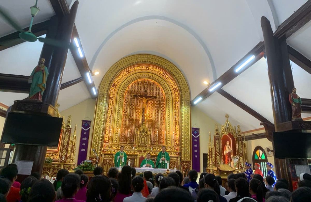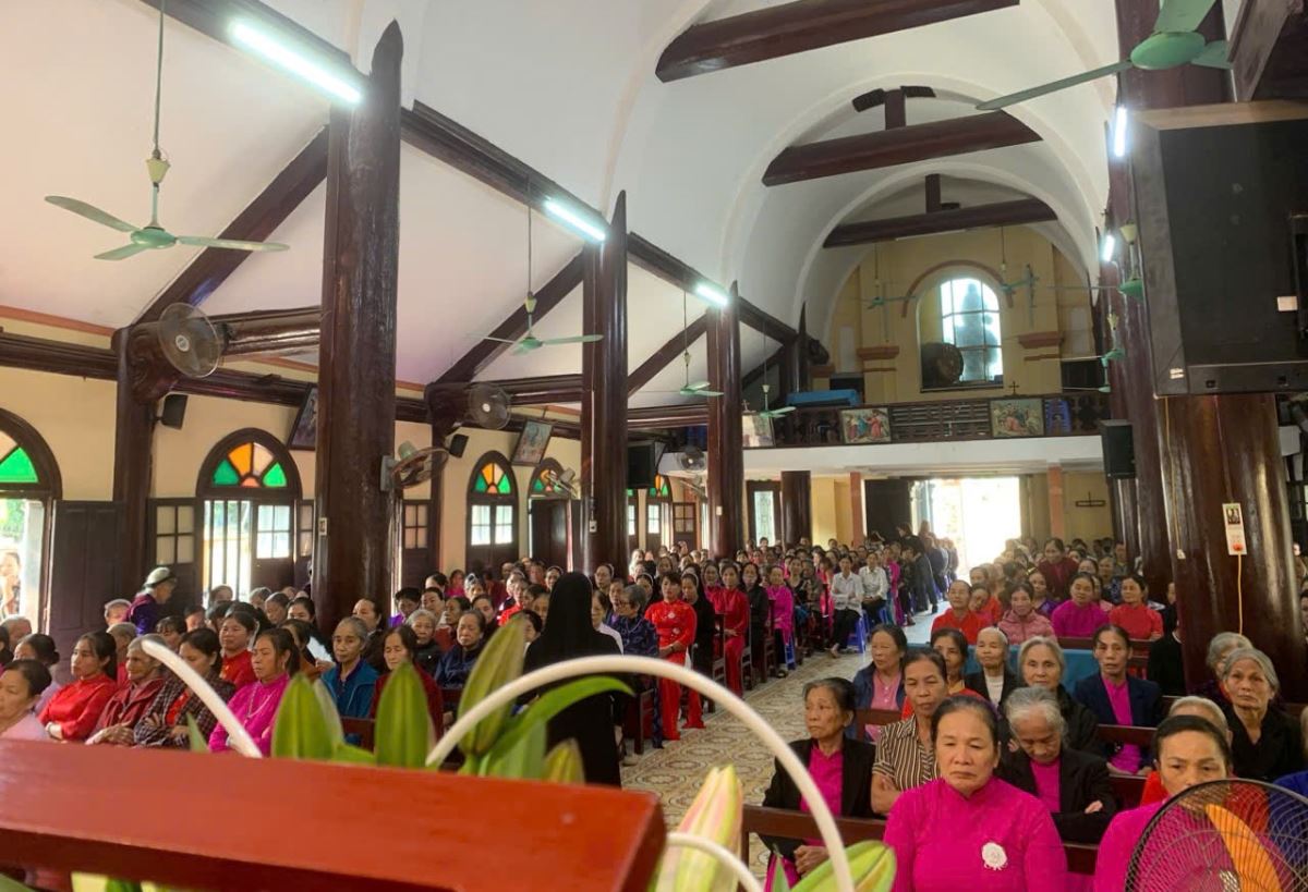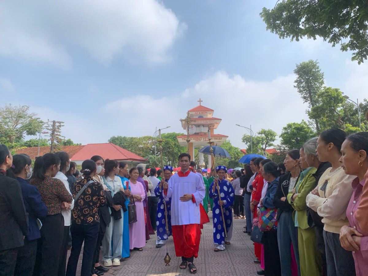 Thánh lễ do cha Giuse Chu Văn Khương chủ tế, cùng đồng tế với cha Phêrô Nguyễn Trường Thịnh và cha Phêrô Tạ Duy Tài. Hiệp dâng Thánh lễ còn có sự hiện diện của quý dì trợ úy, quý dì thuộc các cộng đoàn Mến Thánh Giá trong giáo hạt, cùng đông đảo các hội viên và bà con giáo dân trong và ngoài giáo hạt.