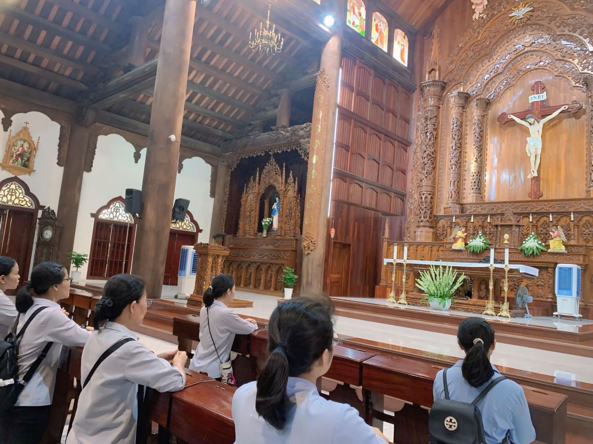Chuyến đi càng trở nên đặc biệt khi các chị em đặt chân đến Nhà Tổ Dòng Mến Thánh Giá – nơi lưu giữ ký ức thiêng liêng về hai nữ tu tiên khởi đã được Đức Cha Lambert de la Motte đón nhận lời khấn, khởi đầu cho một dòng tu mang linh đạo Thánh Giá gắn bó sâu sắc với đời sống dân tộc. Nơi đây, mỗi chị em được mời gọi trở về với căn tính ơn gọi, chiêm ngắm và học hỏi nơi các bậc tiền nhân đời sống kết hiệp sâu xa với Chúa Giêsu và lòng trung kiên trong sứ vụ tông đồ giữa lòng thế giới.