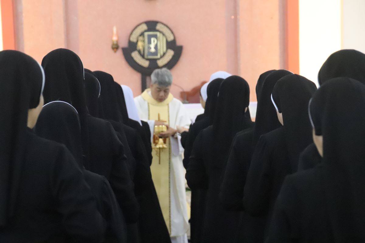 WMTGHH - Hòa chung niềm vui của toàn thể Giáo hội mừng lễ kính thánh Gioakim và Anna song thân Đức Maria, cộng đoàn Mến Thánh giá Sơn Lộc đã long trọng cử hành thánh lễ quan thầy của cộng đoàn. Thánh lễ do cha Giuse Nguyễn Đình Tuyến chủ tế, vào lúc 5.30 sáng, thứ Bảy ngày 26.07.2025, tại nhà nguyện Hội Dòng. Tham dự thánh lễ có thầy giúp xứ Giuse Chu Văn Thái, quý chị em trong cộng đoàn Nhà Mẹ và một số bà con giáo dân. Mở đầu thánh lễ, cha Giuse mời gọi cộng đoàn noi gương thánh Gioakim và Anna song thân Đức Maria về đời sống nhân đức. Bên cạnh đó, xin các ngài chuyển cầu trước tòa Chúa cho chúng ta sống xứng đáng làm con cái Thiên Chúa hơn. Giảng trong thánh lễ, cha Giuse giúp cộng đoàn hiểu rõ hơn về đời sống đạo đức của thánh Gioakim và Anna. Hai thánh nhân sinh Đức Maria -là người con duy nhất, trong lúc tuổi già. Thế nhưng, hai ông bà đã dâng người con duy nhất đó cho Thiên Chúa. Sau này, Đức Maria chính là người đã cưu mang Đức Giêsu - Ngôi Lời Nhập Thể. Vì thế, mừng lễ thánh Gioakim và Anna, không chỉ chúng ta biết ơn các ngài vì đã sinh ra Đức Maria mà chúng ta còn đón nhận hai bài học lớn đó là: dám sẵn sàng hy sinh trong tinh thần phục vụ và quảng đại dâng hoa thơm trái tốt cho Thiên Chúa. Sau cùng, cha Giuse nhắn nhủ cộng đoàn noi gương các ngài sống đạo đức, thánh thiện để sinh hoa trái tốt trong đời sống đức tin ngõ hầu làm vinh danh Chúa. Thánh lễ kết thúc lúc 6g15 trong tâm tình tri ân cảm tạ Chúa. Nguyện xin thánh Gioakim và Anna song thân Đức Maria cầu bầu trước nhan Chúa ban tràn đầy ân sủng và bình an cho quý chị em. Đồng thời, mỗi chị em noi gương nhân đức thánh bổn mạng sống tỏa hương mến Chúa và đơm bông yêu người, để làm chứng nhân tình yêu Thiên Chúa giữa lòng thế giới hôm nay.