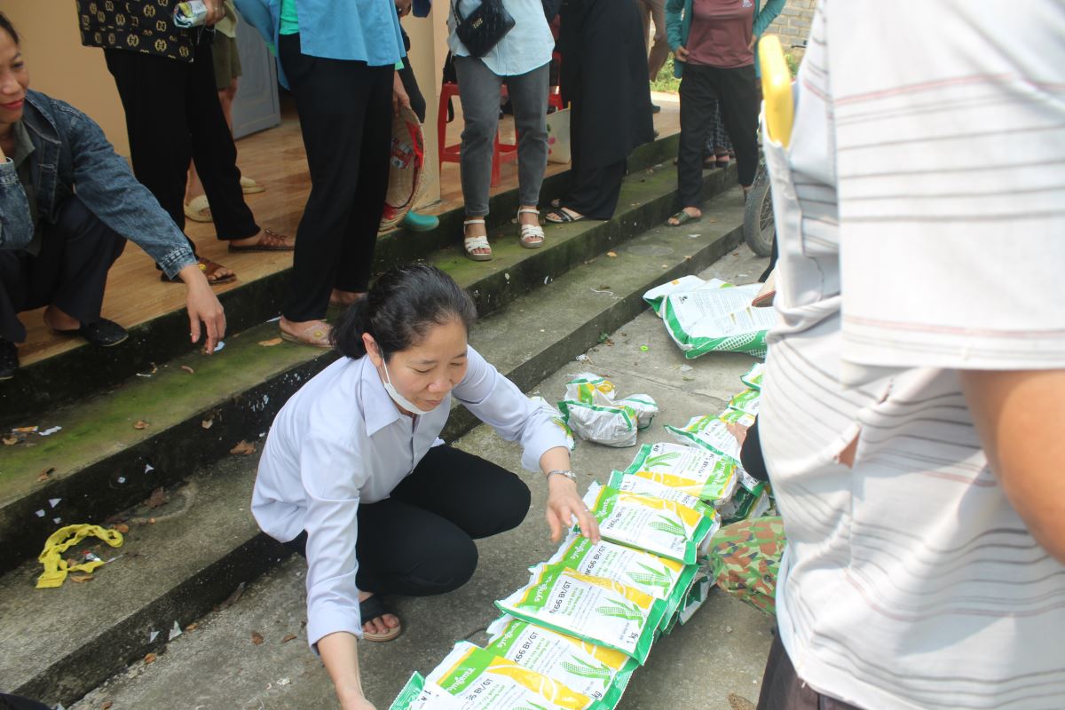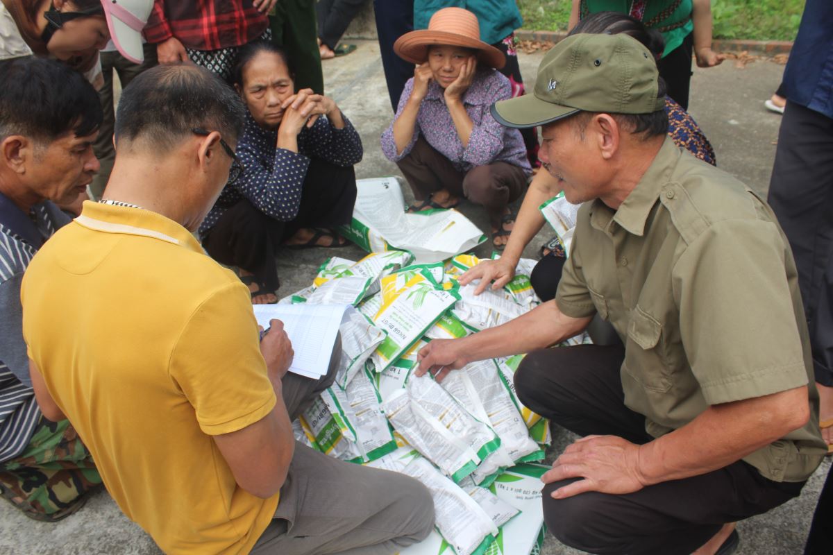 Trao ngô giống tại điểm 3 gồm thôn Đồi Gianh, Pạc Bo, Cốc Phương: