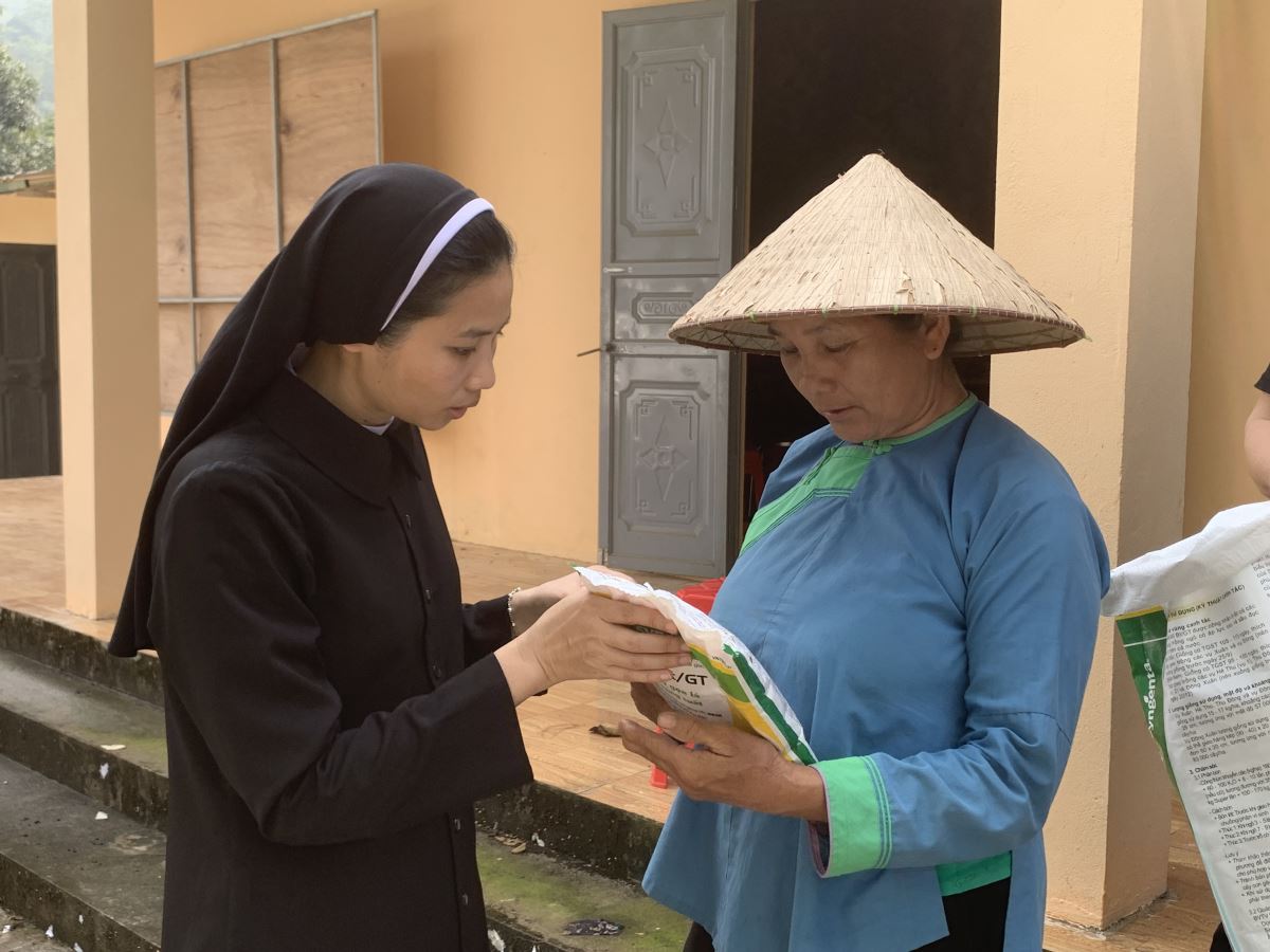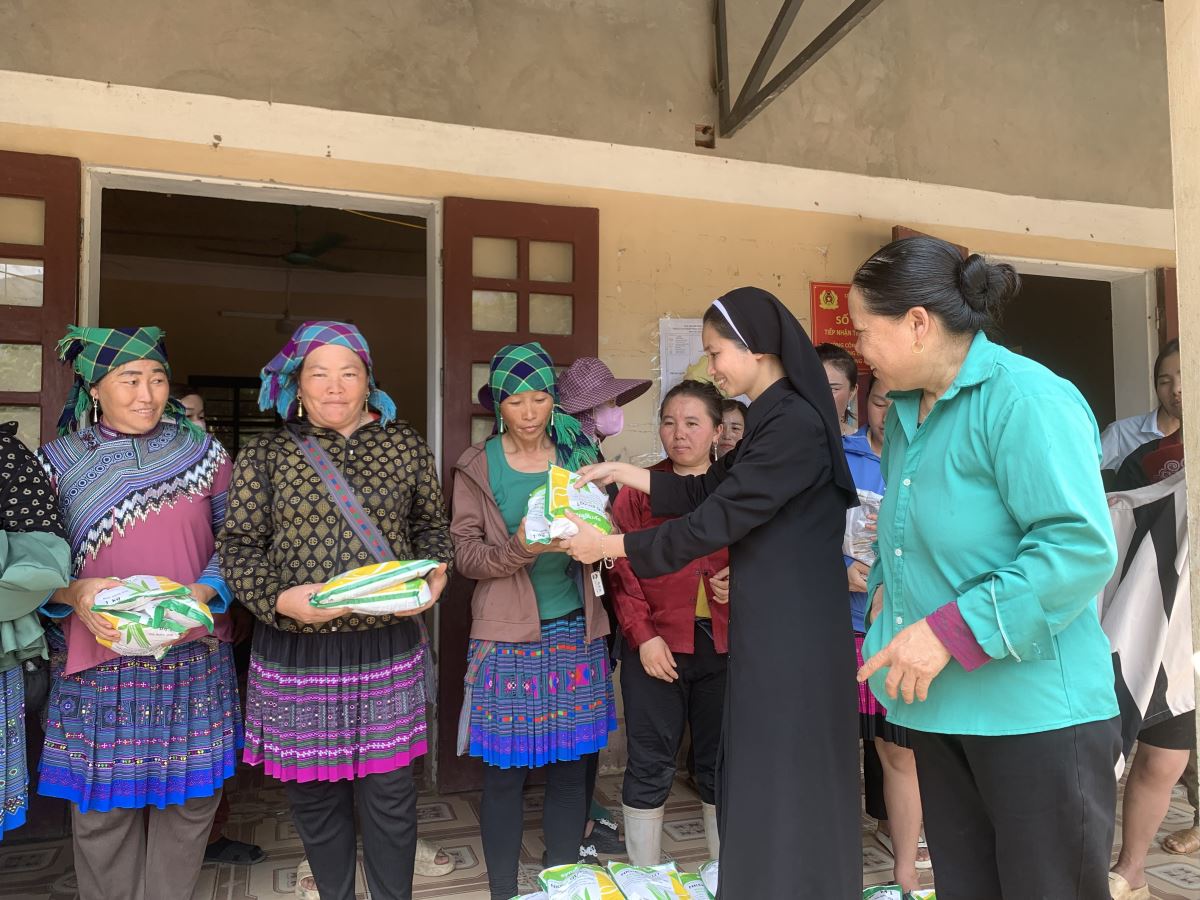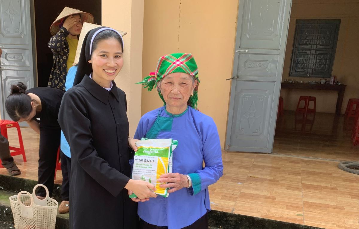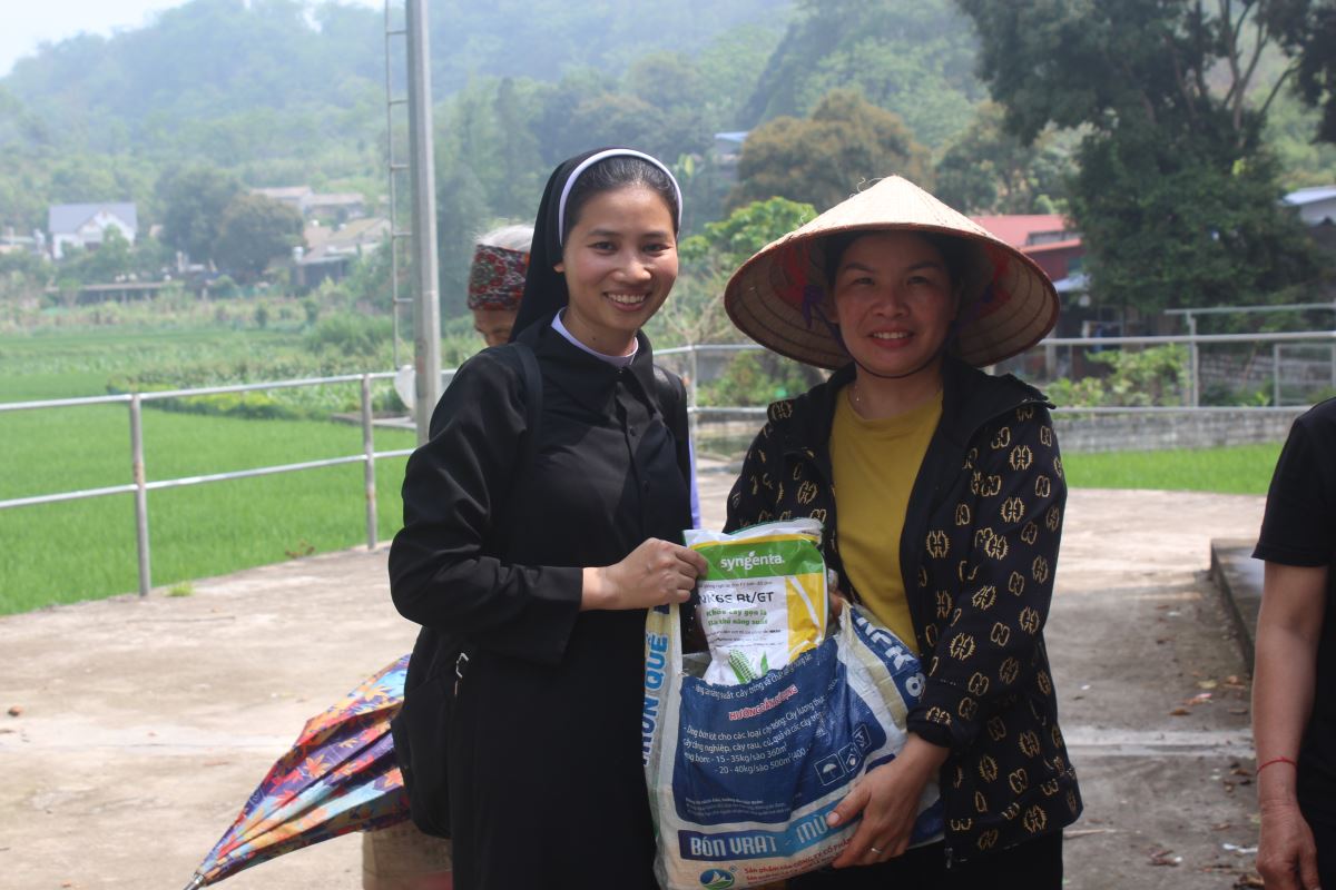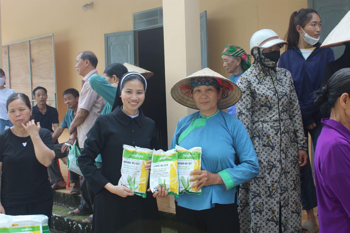 WMTGHH - Cơn bão số 3 (Yagi) đi qua đã để lại những hậu quả nặng nề cho người dân, đặc biệt là những người nông dân nghèo nơi vùng cao - vốn đã vất vả nay lại càng chồng chất khó khăn. Vụ mùa ngô, lúa đang chuẩn bị đến ngày thu hoạch bỗng chốc bị nước lũ cuốn trôi, chìm sâu trong biển nước. Khi nước rút đi, chỉ còn lại bùn đất, hoa màu hư hỏng, khô héo, nhiều nơi trở thành bãi đất hoang tàn, đổ nát. Sau bao tháng ngày gieo trồng và chăm sóc, người nông dân chỉ còn biết đứng lặng thinh nhìn những gì mình dày công vun đắp tan theo dòng nước, lòng đau xót vì tất cả vốn liếng, hy vọng, công sức đều mất trắng. Một mùa màng thất thu đồng nghĩa với cái nghèo, cái khổ vẫn đeo bám không rời. Tuy nhiên, giữa biết bao khó khăn sau cơn bão Yagi, người dân đã nhận được tấm lòng quảng đại từ quý Ân Nhân hỗ trợ chương trình ngô giống cho bà con. Vì vậy, ngày 23 tháng 4 năm 2025, Ban Bác Ái Hội Dòng Mến Thánh Giá Hưng Hóa đã lên đường đến với bà con xã Bản Lầu, huyện Mường Khương, tỉnh Lào Cai. Với đặc thù địa hình, Bản Lầu là một xã miền núi vùng cao, người dân chủ yếu sống bằng nghề nông truyền thống, điều kiện sản xuất còn nhiều hạn chế. Trong chuyến đi lần này, Ban Bác Ái đã chuyển đến 422 kg ngô giống cho 178 hộ gia đình xã Bản Lầu tại 12 thôn: Na Pao, Na Mạ 1, Na Mạ 2, Cốc Chứ, Na Lốc 4, Na Lin, Pạc Bo, Đồi Gianh, Na Nhung, Trung Tâm, Cốc Phương và Lùng Cẩu. Chương trình được thực hiện tại 3 điểm. Điểm 1 gồm các thôn: Trung Tâm, Na Nhung, Cốc Chứ, Na Lin, Lùng Cẩu. Điểm 2 gồm: thôn Na Pao, Na Mạ 1, Na Mạ 2 và điểm 3 gồm thôn Đồi Gianh, Pạc Bo, Cốc Phương. Đây là một hoạt động ý nghĩa trong chương trình bác ái nhằm hỗ trợ người dân khắc phục hậu quả sau thiên tai, từng bước ổn định cuộc sống và phục hồi kinh tế nông hộ nơi vùng cao. Thay lời cho 178 hộ gia đình 12 thôn xã Bản Lầu nhận được sự hỗ trợ, chúng con xin chân thành tri ân đến tấm lòng quảng đại của quý Ân Nhân và xin Thiên Chúa chúc lành cho quý Ân Nhân. Đồng thời, qua chương trình này cũng là lời mời gọi mỗi người chúng ta tiếp tục chung tay gieo những hạt giống của lòng nhân ái, để tình người được nảy nở trên khắp các nẻo đường vùng cao bởi vì “Mỗi hạt giống gieo xuống hôm nay không chỉ trổ bông trên đất, mà còn trổ hoa trong lòng người.”