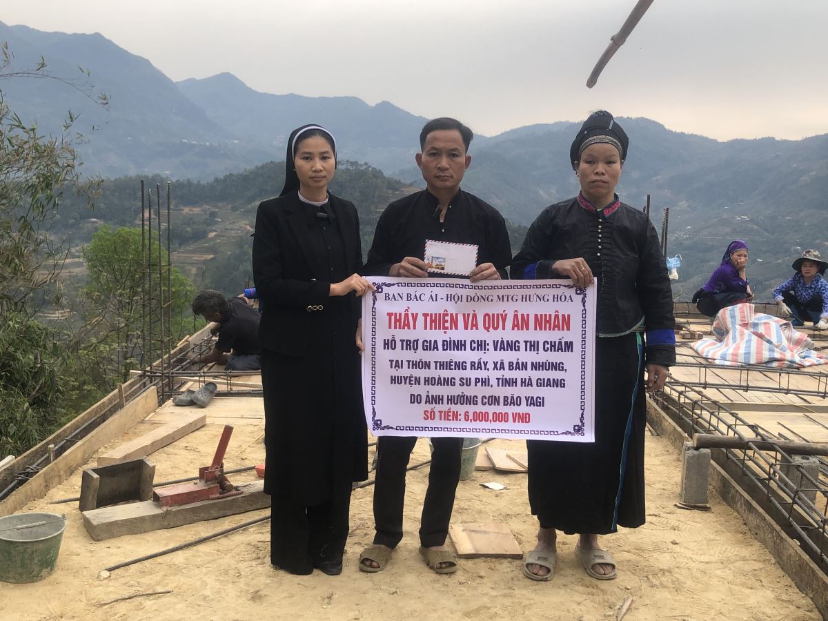 Các nữ tu và các cộng sự đã không quản ngại khó khăn, vượt qua những con đường trơn trượt, lầy lội sau bão để đến tận nơi khảo sát, thăm hỏi, động viên và đồng hành với từng hộ gia đình trong quá trình sửa chữa và hoàn thiện nhà ở. Nhiều nơi không có sóng điện thoại, không có phương tiện hiện đại, nhưng tiếng cười, ánh mắt và lời cầu nguyện âm thầm của các nữ tu đã trở thành nguồn an ủi lớn lao cho biết bao người dân đang kiệt sức sau thiên tai.