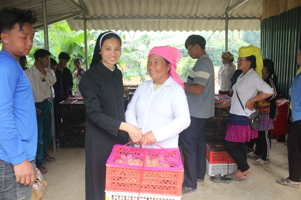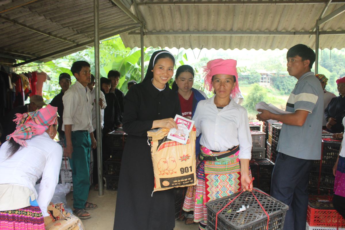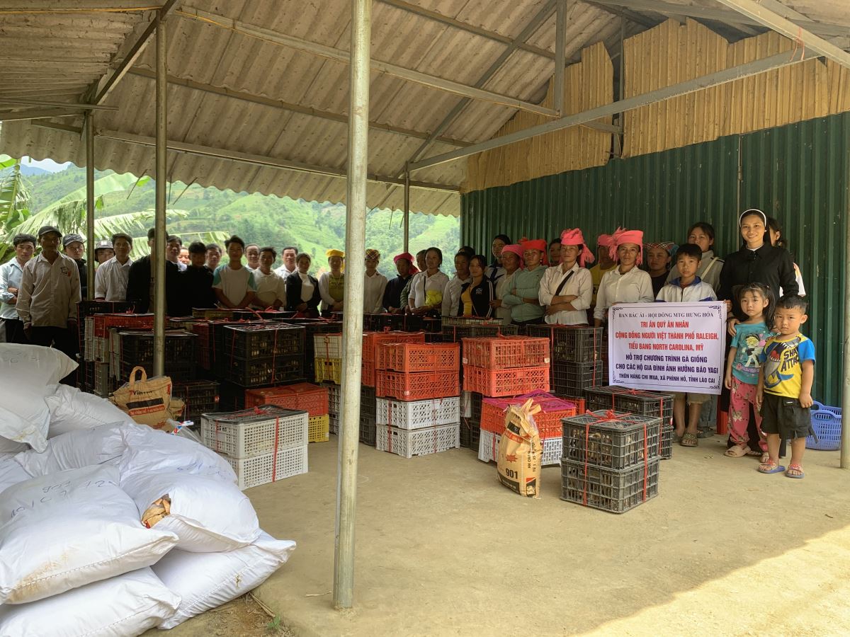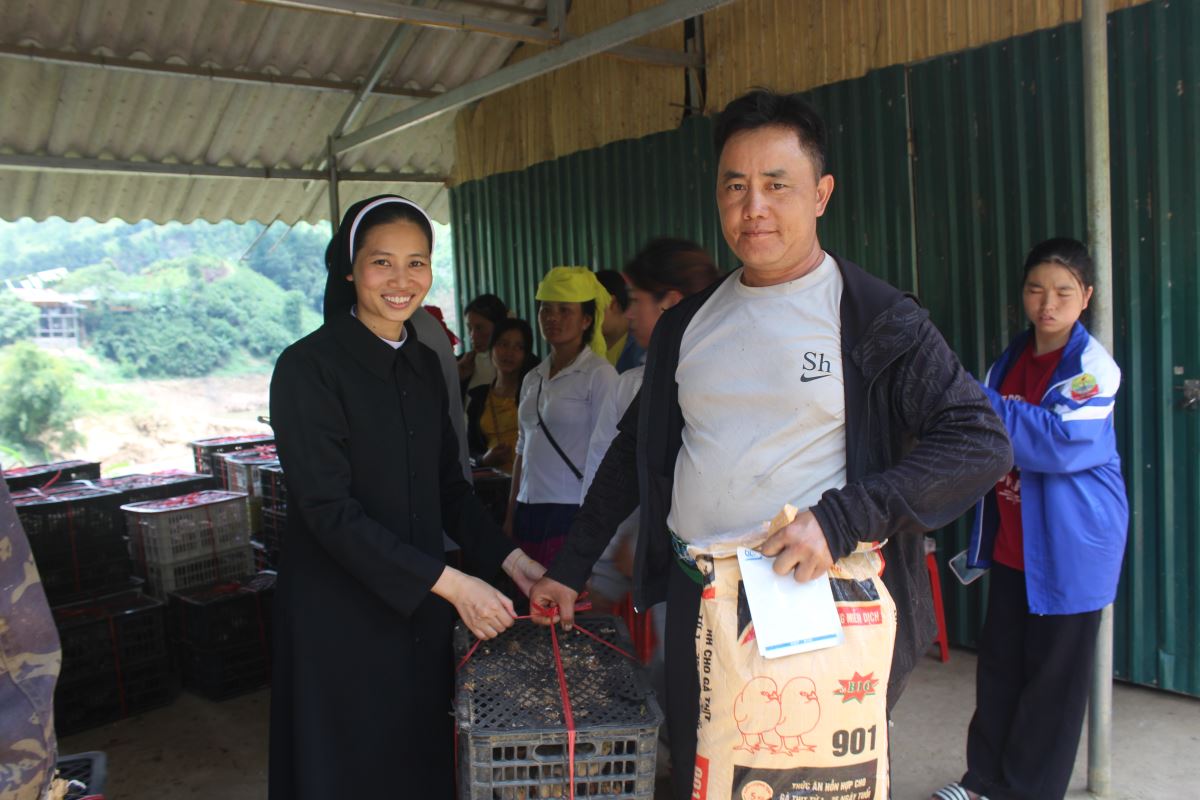 WMTGHH– Cơn bão Yagi tuy đã đi qua lâu, nhưng hậu quả mà nó để lại vẫn còn in hằn trong cuộc sống của người dân bản Háng Chi Mua, xã Phình Hồ, tỉnh Lào Cai. Đây là một bản thuộc vùng cao, nằm sâu trong núi rừng Tây Bắc, giao thông đi lại vô cùng khó khăn, đặc biệt vào mùa mưa lũ. Bà con nơi đây phần lớn là người dân tộc thiểu số, đời sống còn nhiều thiếu thốn: không chỉ khó khăn về kinh tế mà cả trong các nhu cầu cơ bản như nước sạch, điện sinh hoạt, chăm sóc y tế và giáo dục cho con em. Giữa vùng núi cao quanh năm mây phủ, bản Háng Chi Mua vẫn lặng lẽ chống chọi với cuộc sống thiếu thốn trăm bề. Dấu vết của cơn bão Yagi vẫn còn hiện diện trong những mái nhà dột nát, những mảnh vườn cằn khô, và trong ánh mắt khắc khổ của người dân, những người dân tộc thiểu số chưa một lần buông xuôi, dù cuộc sống còn đầy chông chênh. Dù thời gian đã trôi qua, nhưng do thiếu phương tiện và điều kiện phục hồi, đến nay nhiều gia đình vẫn chưa thể khắc phục được hậu quả, tiếp tục sống trong cảnh thiếu thốn và bấp bênh. Hiểu được những khó khăn ấy, Ban Bác Ái Hội Dòng, với sự đồng hành đầy yêu thương của Cộng đồng người Việt tại thành phố Raleigh, bang North Carolina, Hoa Kỳ, đã mang đến những con gà giống. Đó là niềm hy vọng được ấp ủ, là phương tiện mưu sinh thiết thực, là bước khởi đầu cho hành trình vươn lên của những gia đình còn đang chật vật sau thiên tai. Với tấm lòng quảng đại và sự chung tay của quý Ân nhân, Ban Bác Ái Hội Dòng đã chuyển trao 3000 con gà giống và 500 kg cám cho 100 hộ gia đình tại bản Háng Chi Mua trong đợt hỗ trợ lần này. Món quà tuy giản dị nhưng vô cùng ý nghĩa, góp phần giúp bà con gây dựng lại cuộc sống sau bão, phát triển chăn nuôi nhỏ lẻ để tạo thu nhập ổn định, hướng tới một tương lai bớt nhọc nhằn hơn giữa núi rừng heo hút. Ban Bác Ái Hội Dòng Mến Thánh Giá Hưng Hóa xin chân thành tri ân Cộng đồng người Việt tại thành phố Raleigh, bang North Carolina, Hoa Kỳ vì đã không chỉ sẻ chia vật chất, mà còn trao ban cả yêu thương và hy vọng tới người dân vùng cao. Đó là những điều quý giá nhất giúp xoa dịu nỗi đau và vực dậy niềm tin nơi những mảnh đời còn nhiều thiếu thốn. Nguyện xin Thiên Chúa là nguồn mạch tình yêu và sự sống, trả công bội hậu cho tất cả những tấm lòng quảng đại, và tiếp tục ban muôn ơn lành trên Quý vị cùng gia đình.