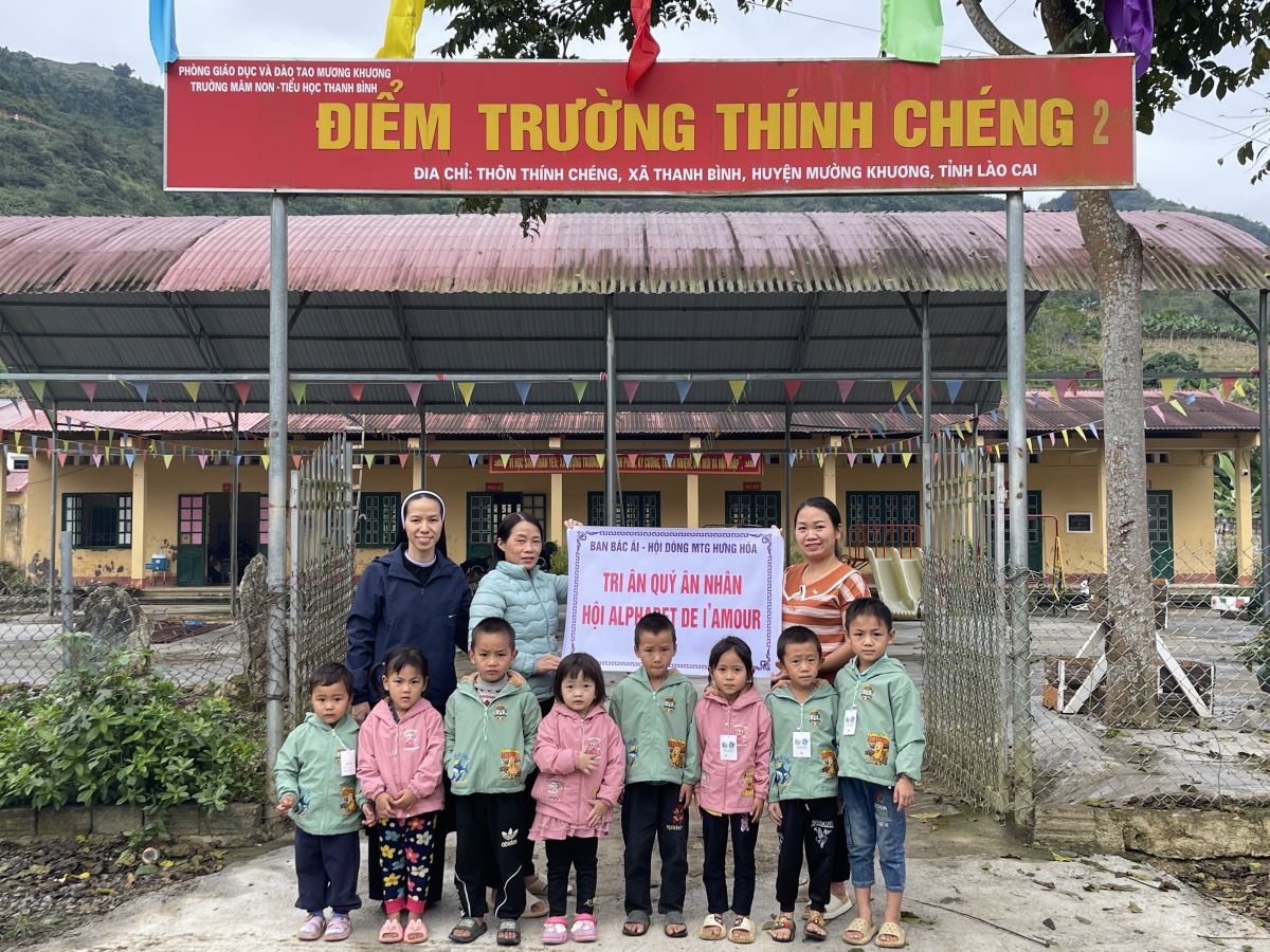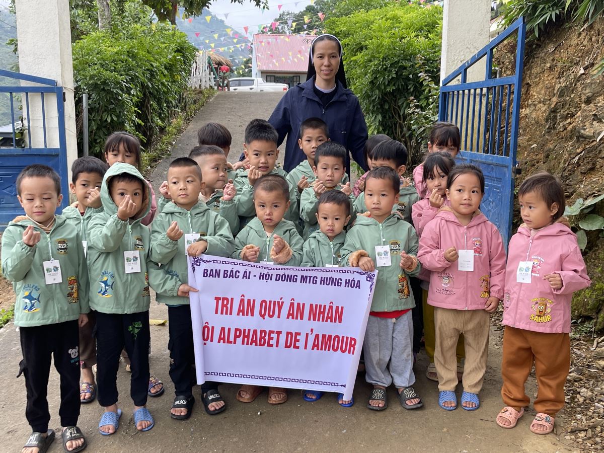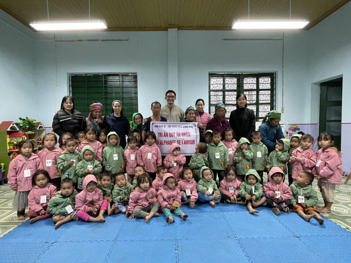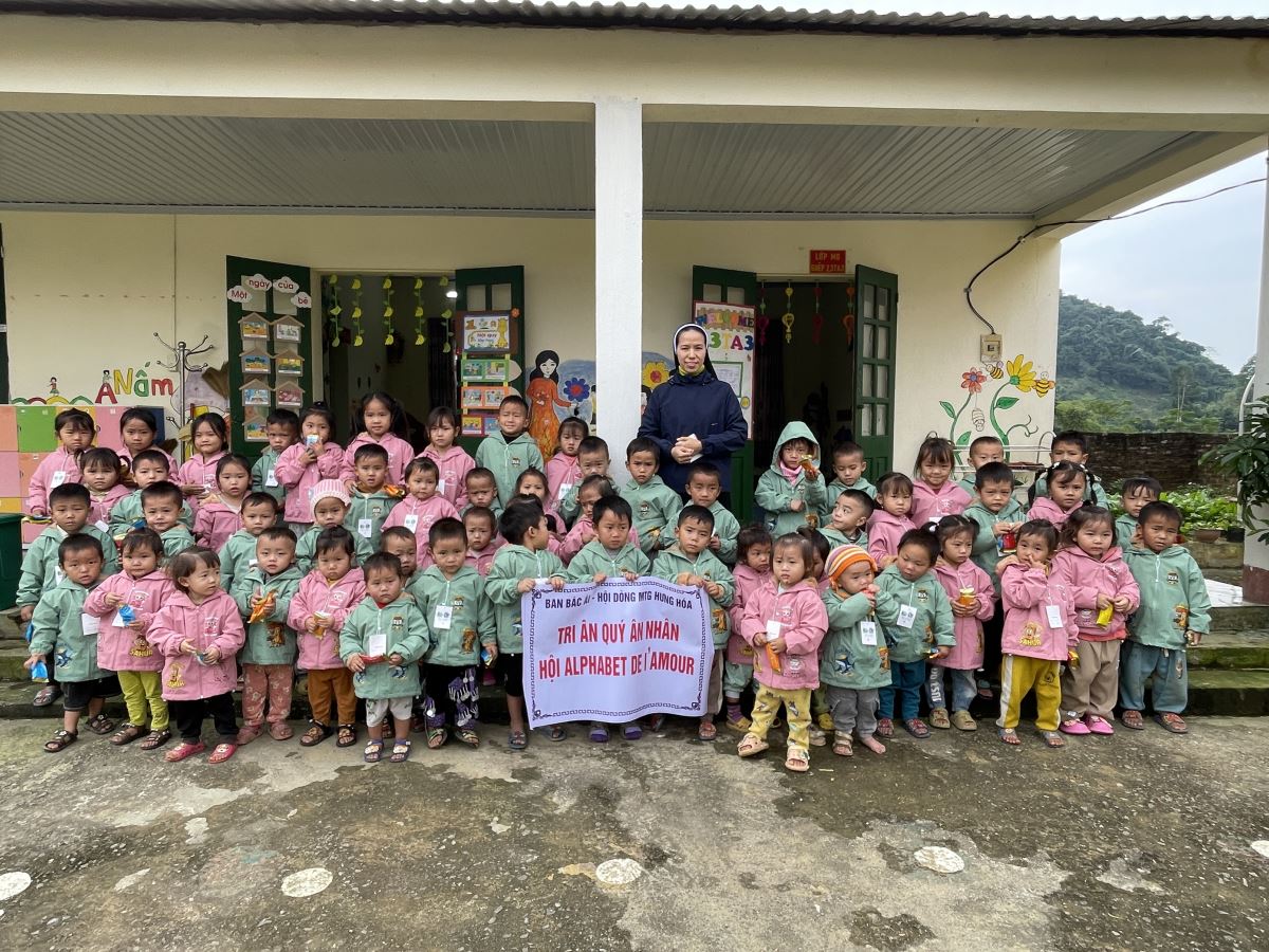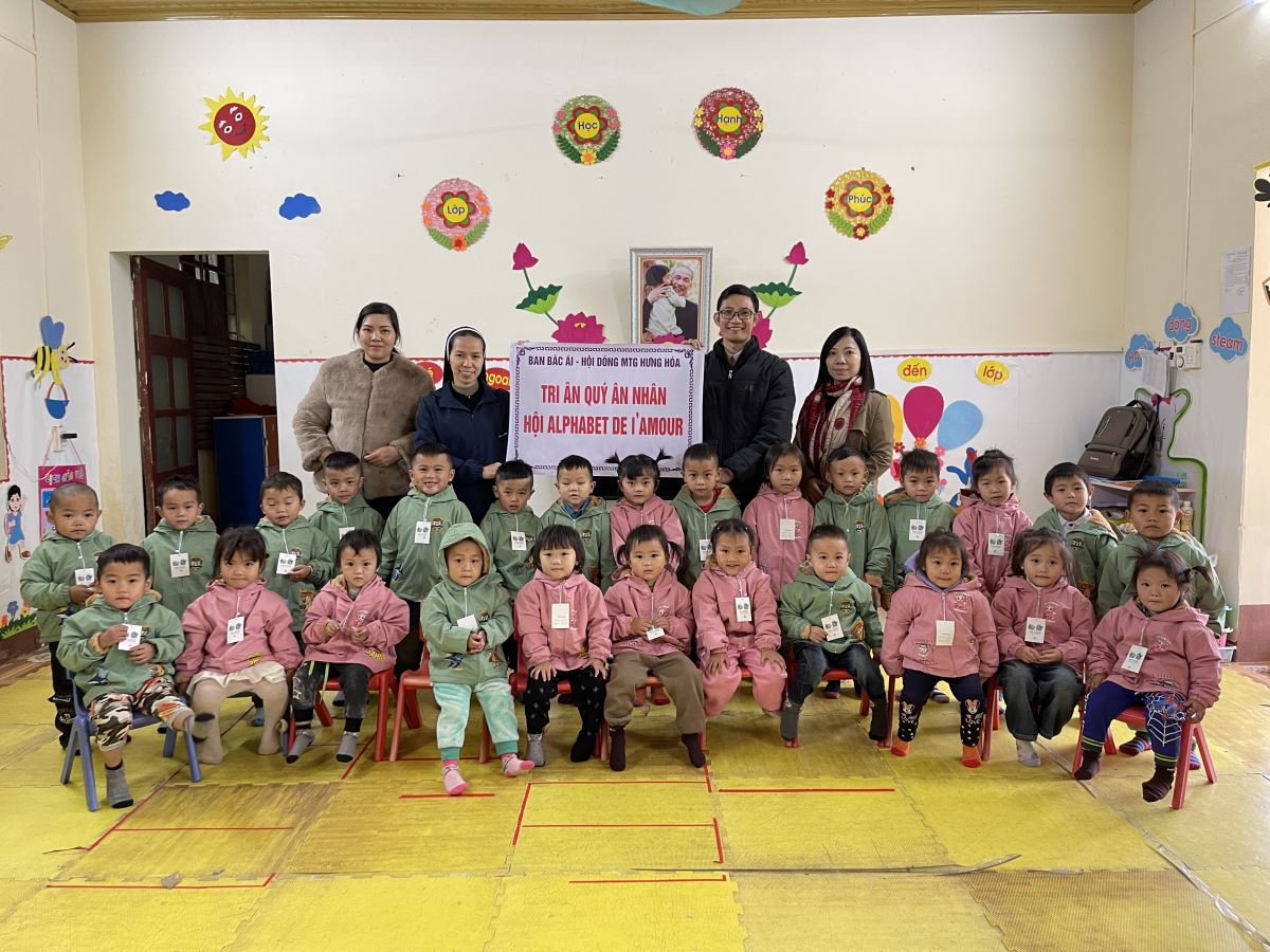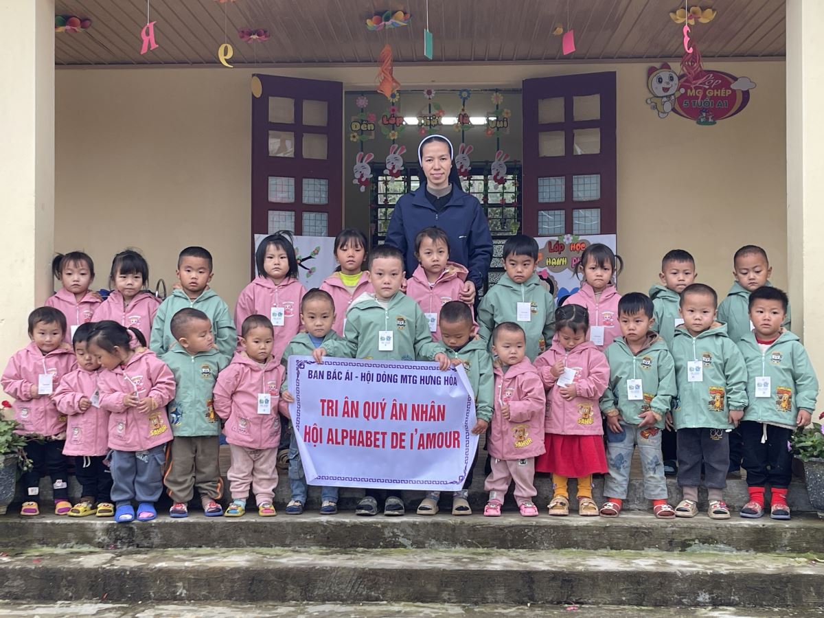 WMTGHH - Nhờ tấm lòng yêu thương và quảng đại của quý ân nhân Hội ALPHABET DE L’AMOUR, từ ngày 17 đến ngày 23 tháng 11 năm 2025, Ban Bác Ái Hội dòng Mến Thánh Giá Hưng Hóa đã gửi trao 1.130 chiếc áo ấm mùa đông đến 1.130 em học sinh người H’Mông, Nùng, Dao, Phù Lá… tại hơn 30 điểm Trường Mầm non và Trường Trung học cơ sở thuộc 5 xã: Dìn Chin, Pha Long, Cao Sơn, Bản Lầu, Mường Khương, cùng nhiều bản làng khác của tỉnh Lào Cai.