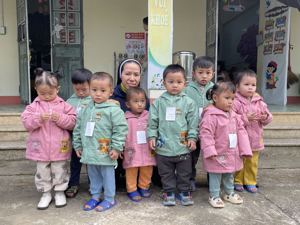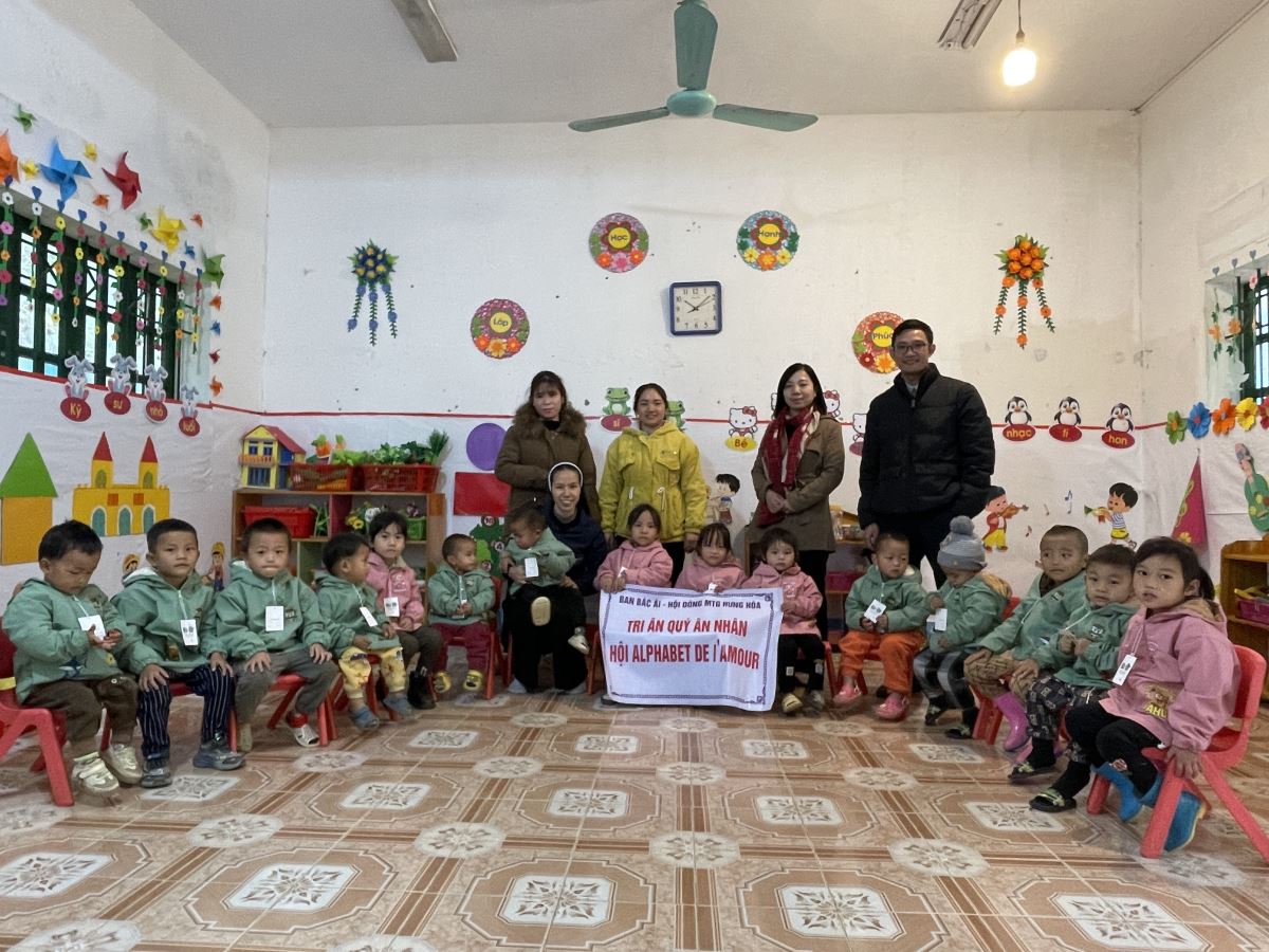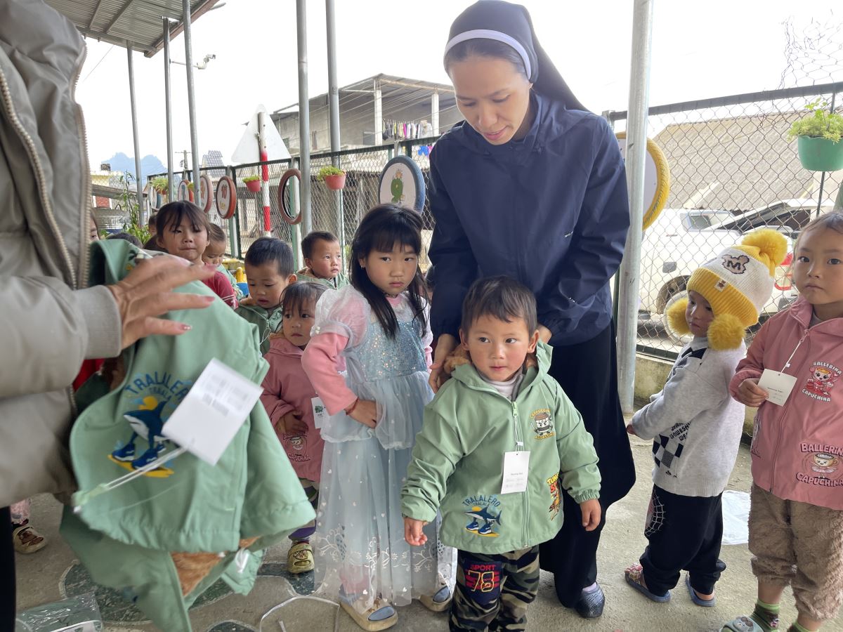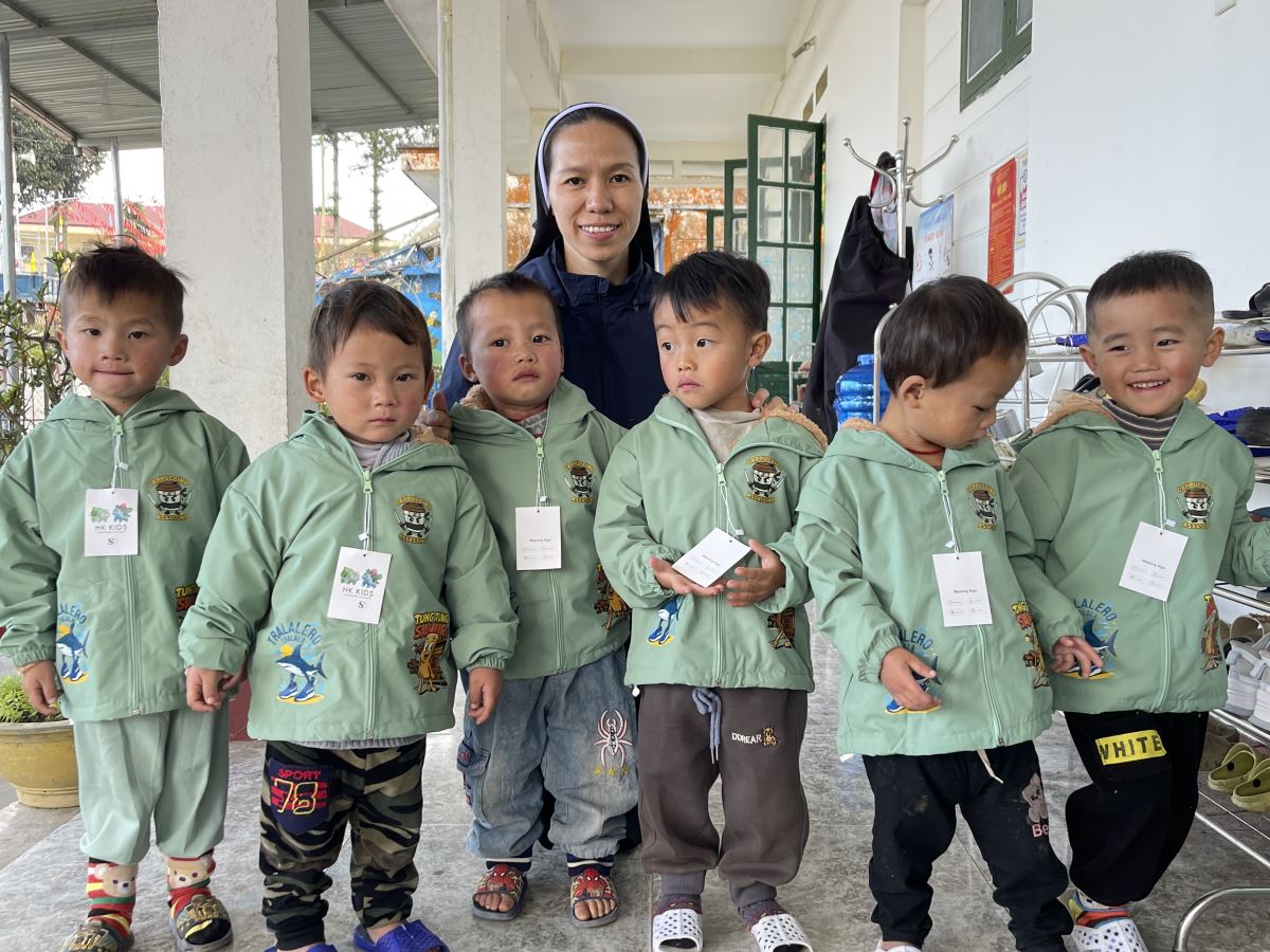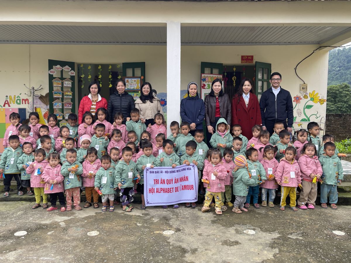 WMTGHH - Nhờ tấm lòng yêu thương và quảng đại của quý ân nhân Hội ALPHABET DE L’AMOUR, từ ngày 17 đến ngày 23 tháng 11 năm 2025, Ban Bác Ái Hội dòng Mến Thánh Giá Hưng Hóa đã gửi trao 1.130 chiếc áo ấm mùa đông đến 1.130 em học sinh người H’Mông, Nùng, Dao, Phù Lá… tại hơn 30 điểm Trường Mầm non và Trường Trung học cơ sở thuộc 5 xã: Dìn Chin, Pha Long, Cao Sơn, Bản Lầu, Mường Khương, cùng nhiều bản làng khác của tỉnh Lào Cai.
