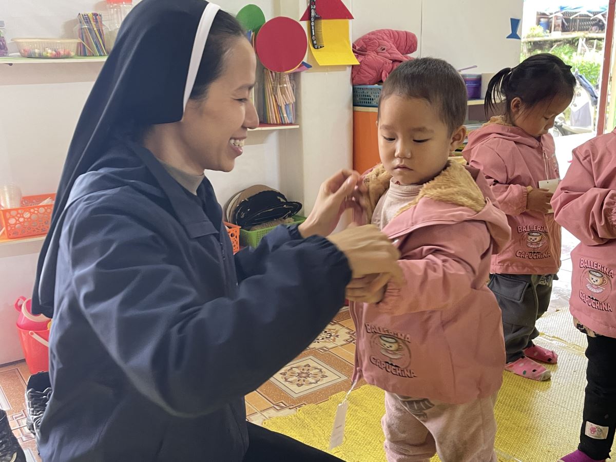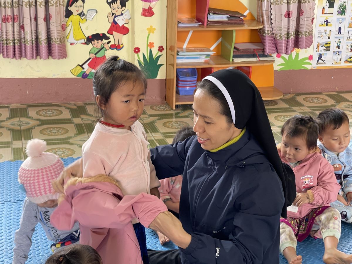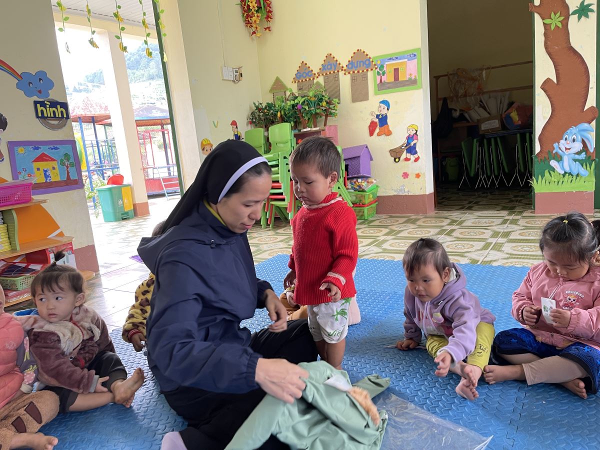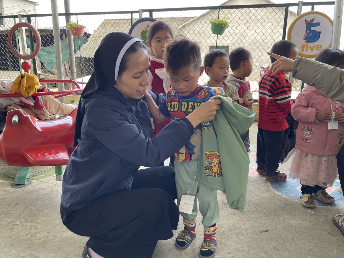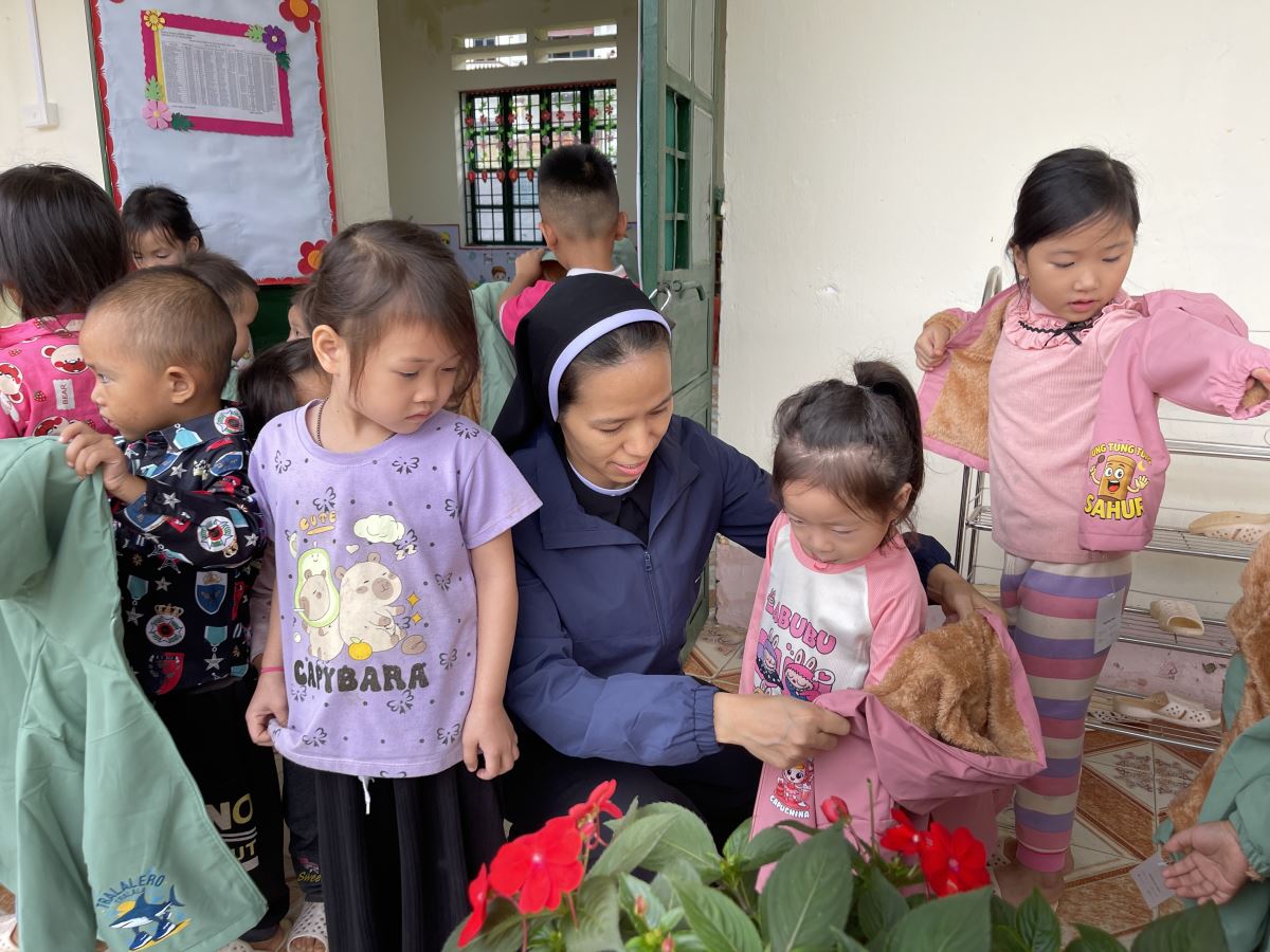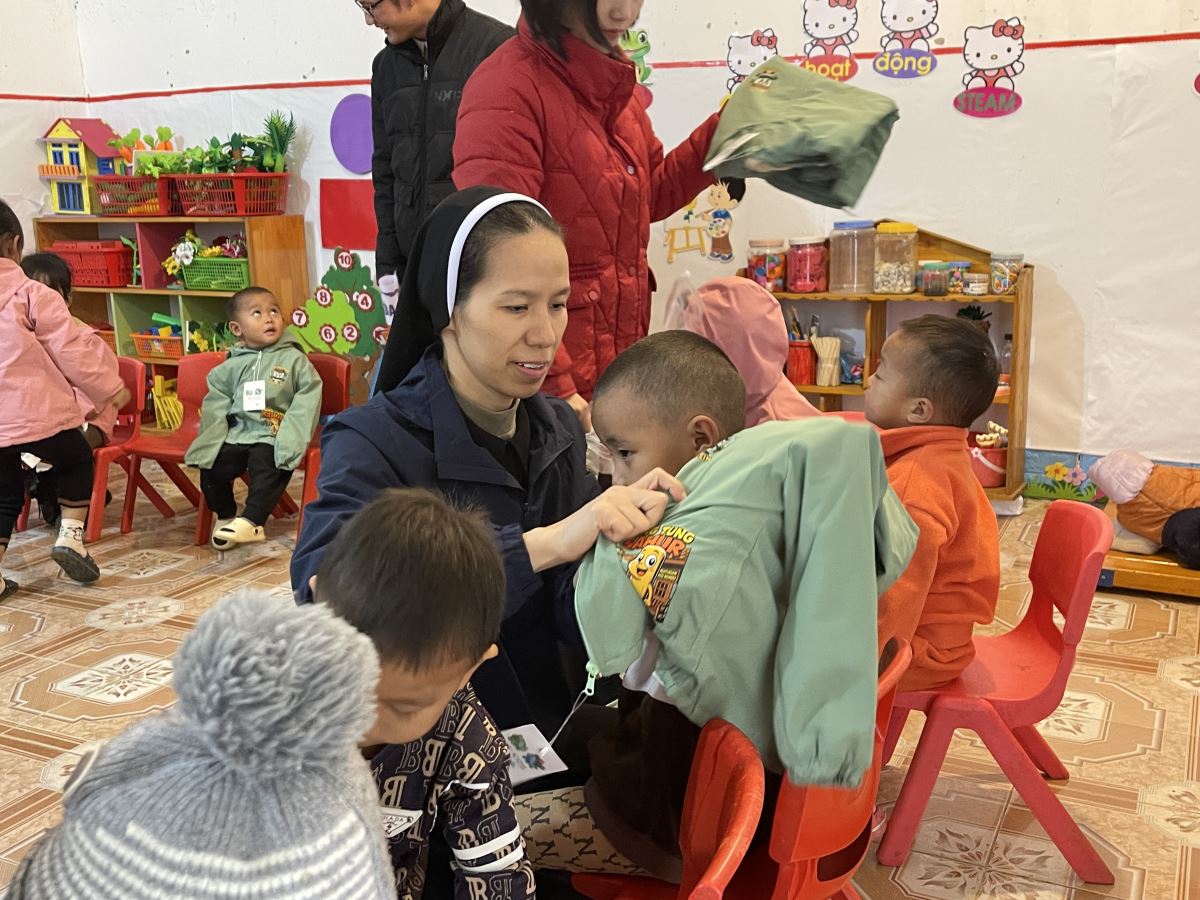 WMTGHH - Nhờ tấm lòng yêu thương và quảng đại của quý ân nhân Hội ALPHABET DE L’AMOUR, từ ngày 17 đến ngày 23 tháng 11 năm 2025, Ban Bác Ái Hội dòng Mến Thánh Giá Hưng Hóa đã gửi trao 1.130 chiếc áo ấm mùa đông đến 1.130 em học sinh người H’Mông, Nùng, Dao, Phù Lá… tại hơn 30 điểm Trường Mầm non và Trường Trung học cơ sở thuộc 5 xã: Dìn Chin, Pha Long, Cao Sơn, Bản Lầu, Mường Khương, cùng nhiều bản làng khác của tỉnh Lào Cai.