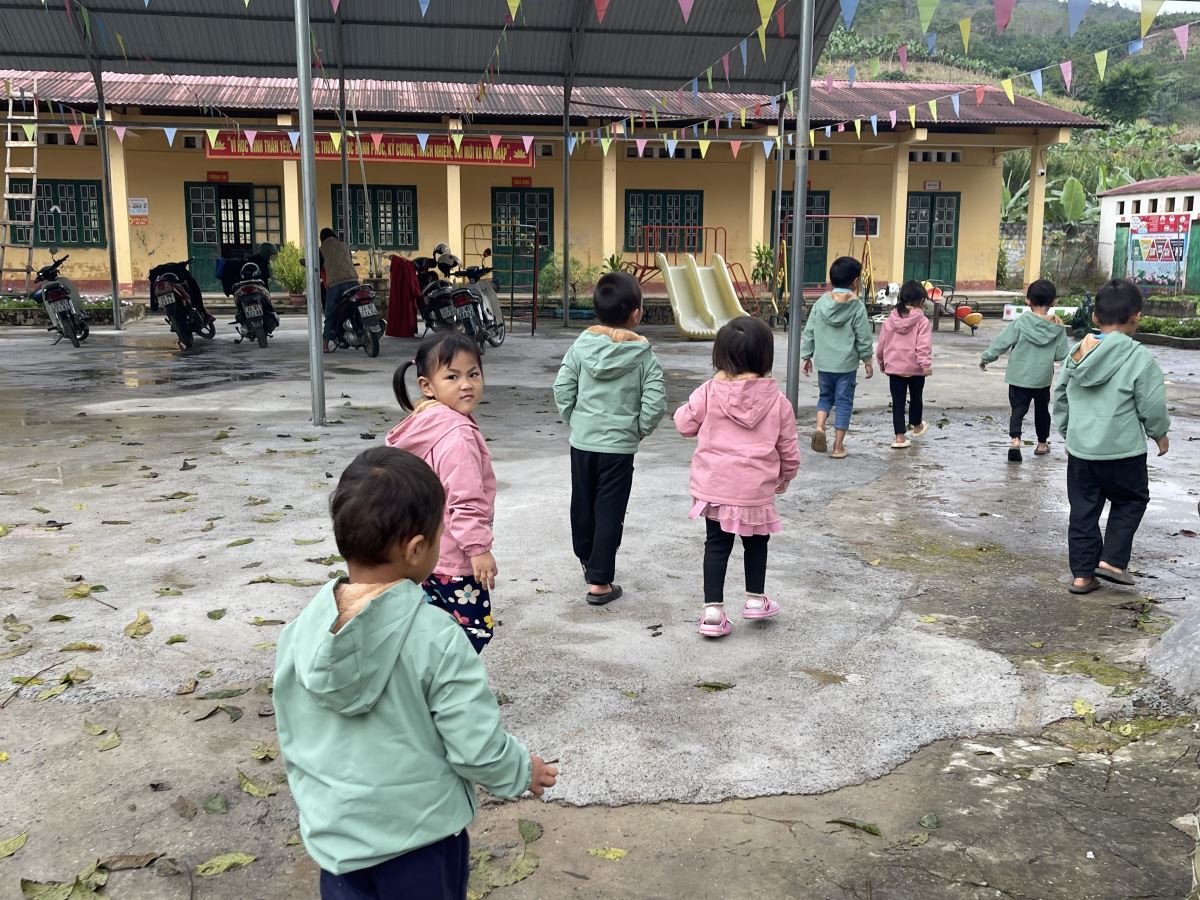 Khi tới các điểm trường, với nền nhiệt trên núi chỉ còn