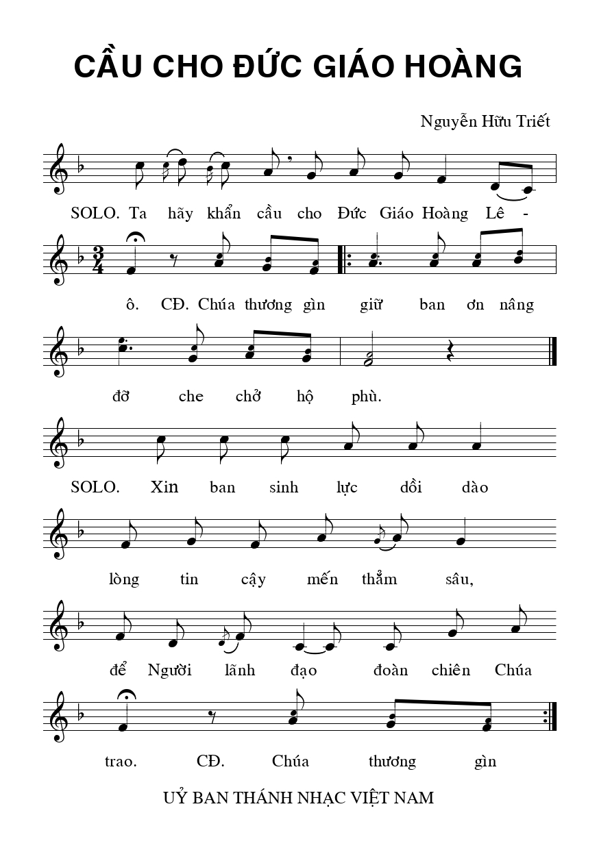 1. Bài hát: "CẦU CHO ĐỨC GIÁO HOÀNG" - Nhạc sĩ Nguyễn Hữu Triết