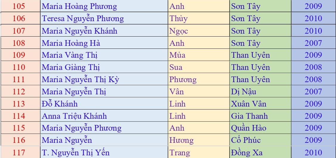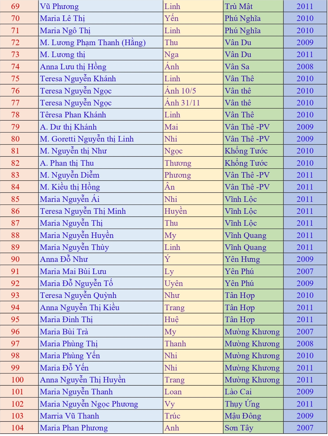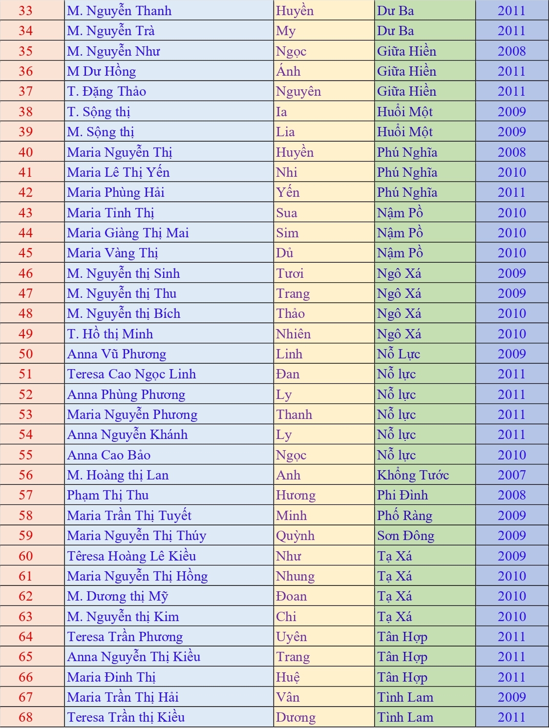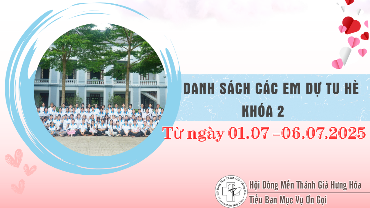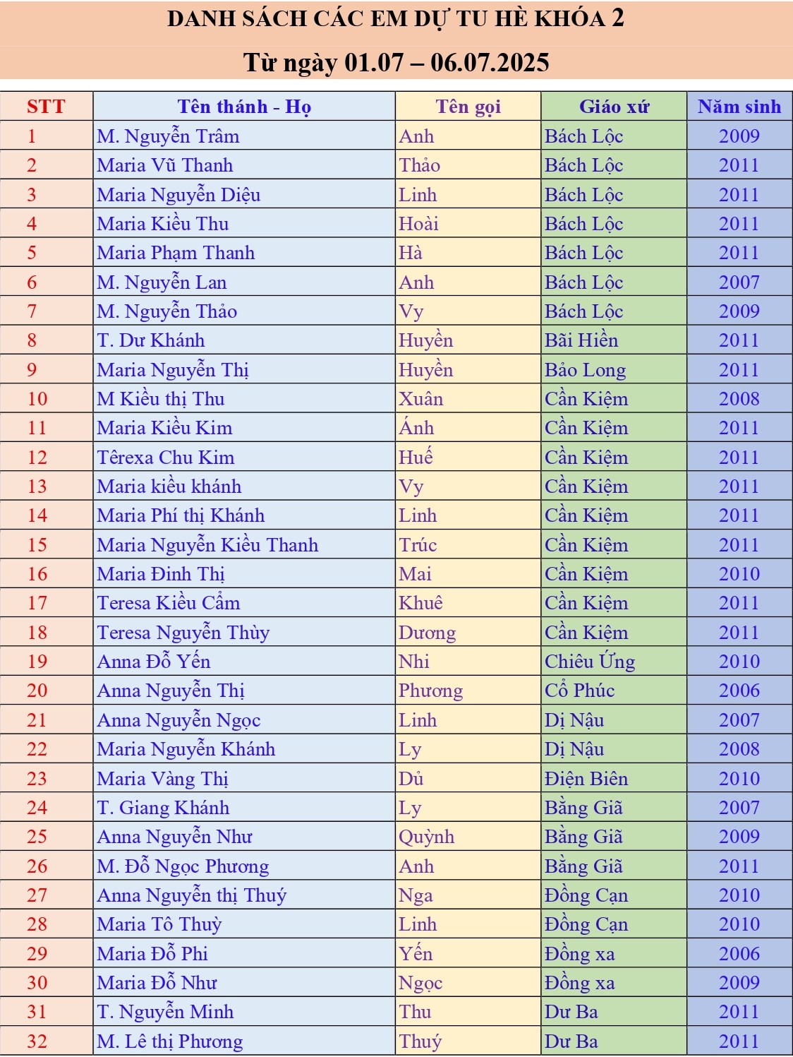 Danh sách các em dự tu hè Khóa 1 từ ngày 25/06 - 30/06/2025 tại Hội dòng Mến Thánh Giá Hưng Hóa