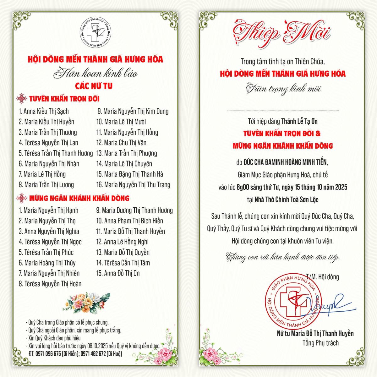 Thiệp mời Hiệp Thông Thánh Lễ Khấn Dòng Năm 2025