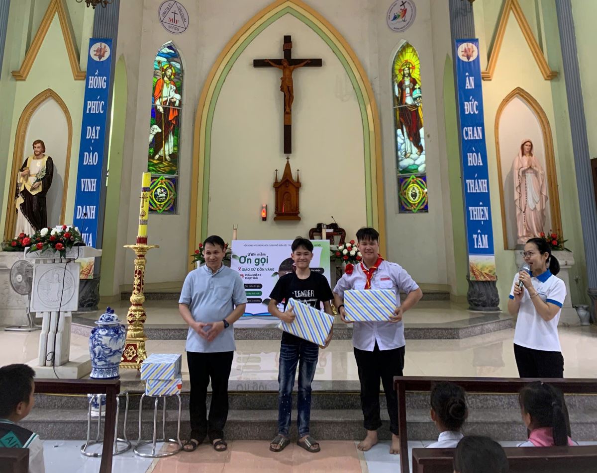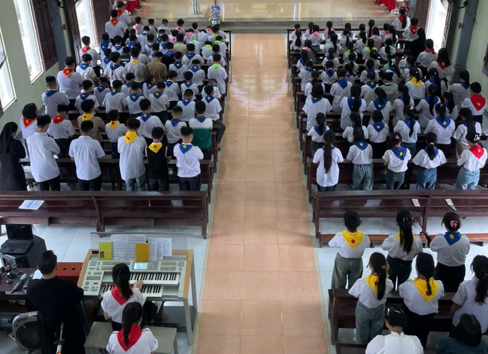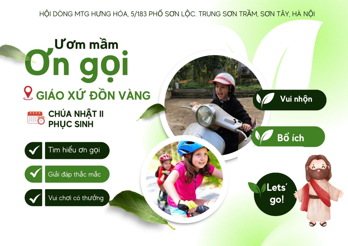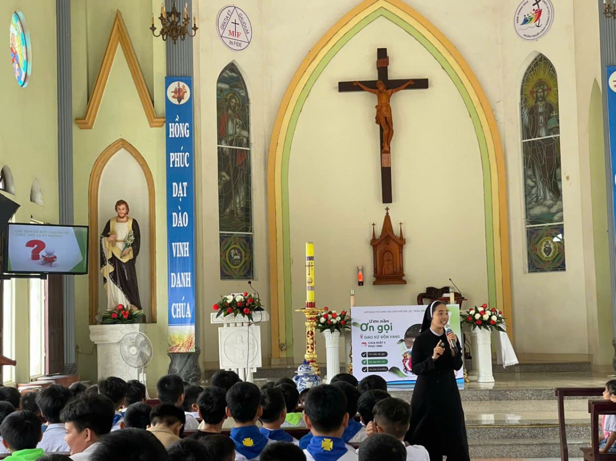 WMTGHH - Với thao thức vun trồng và phát triển ơn gọi thánh hiến trong lòng Giáo Hội, vào Chúa Nhật II Phục Sinh ngày 27.04. 2025, Tiểu ban Mục vụ Ơn gọi – Hội Dòng Mến Thánh Giá Hưng Hóa đã cộng tác cùng với Cha Phaolô Nguyễn Quốc Tuấn. MF tổ chức chương trình "Gieo mầm ơn gọi" tại Giáo xứ Đồn Vàng. Qua các hoạt động gặp gỡ, chia sẻ và sinh hoạt, chương trình nhằm khơi dậy nơi các em thiếu nhi và giới trẻ ý thức cao quý về ơn gọi dâng hiến, đồng thời mời gọi các em quảng đại đáp lại tiếng Chúa mời gọi trong cuộc đời mình. Hy vọng chương trình sẽ đem lại những hoa trái tốt đẹp, giúp các em thiếu nhi và giới trẻ thêm vững bước trên hành trình khám phá ơn gọi, biết mở lòng lắng nghe tiếng Chúa và sẵn sàng đáp lại bằng tình yêu và lòng quảng đại. Xin Chúa tiếp tục đồng hành và chúc lành cho những nỗ lực gieo mầm ơn gọi của Tiểu ban Mục vụ Ơn gọi Hội dòng nơi cánh đồng truyền giáo thân yêu của Giáo phận.