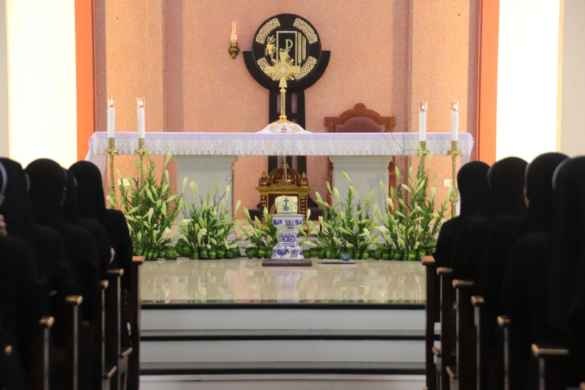 Ước mong trong tuần tĩnh tâm này, mỗi chị em trong Khối Học viện được thực sự chạm đến tình yêu sâu thẳm của Chúa Giêsu – Đấng vẫn luôn ở lại và đồng hành trong từng nhịp sống thường ngày. Nguyện xin ơn Chúa giúp mỗi người biết mở lòng để được biến đổi, biết vun trồng đời sống nội tâm vững mạnh, và luôn trung thành bước theo Chúa trong ơn gọi hiến dâng. Xin cho hành trình trở về với Chúa trong tuần tĩnh tâm trở thành điểm khởi đầu mới – nơi mỗi chị em được canh tân tình yêu, được củng cố ơn gọi, và được sai đi với lòng hăng say phục vụ giữa lòng Hội Dòng và thế giới hôm nay.