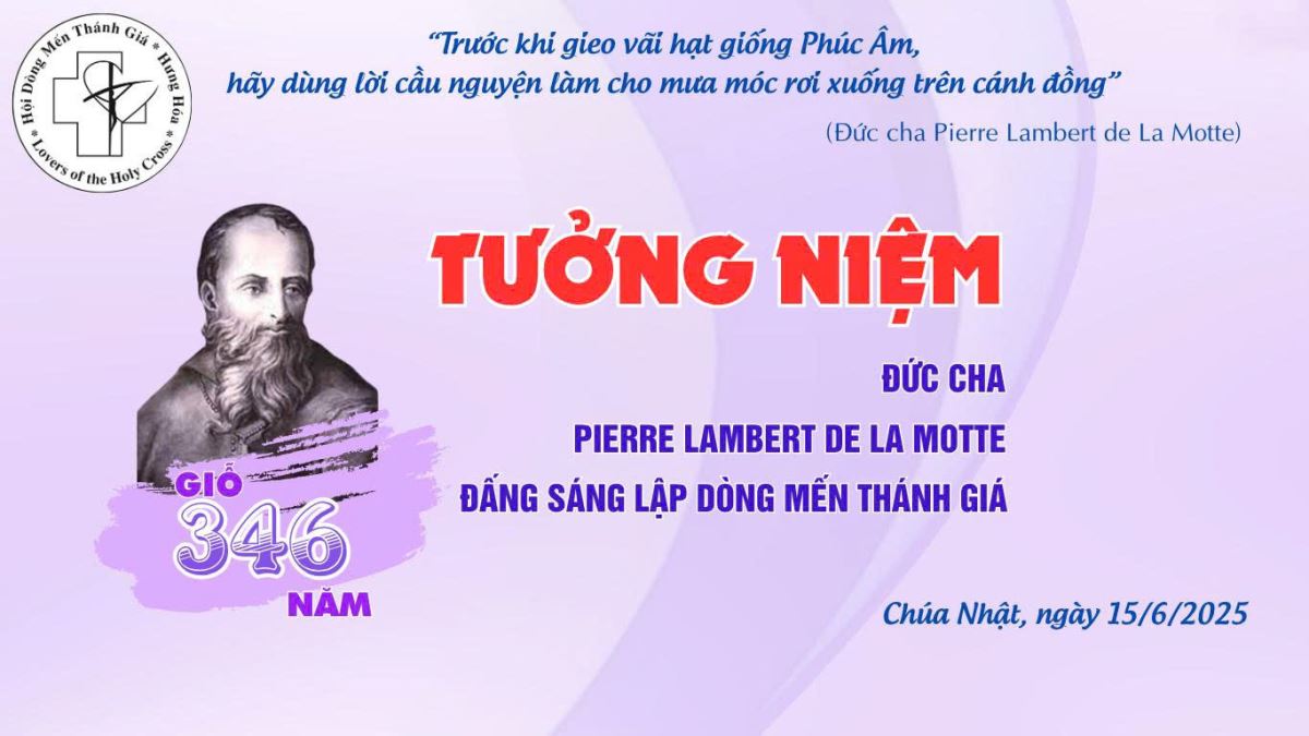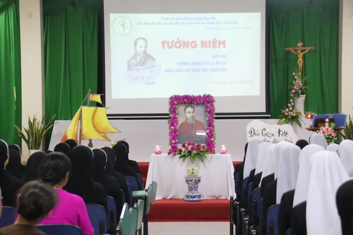 Trong tâm tình tri ân và thảo hiếu, vào lúc 19g00 ngày 15/6/2025, Hội Dòng Mến Thánh Giá Hưng Hóa đã long trọng cử hành Nghi thức tưởng niệm Đức Cha Phê-rô Lambert de la Motte – vị Giám mục thừa sai đầu tiên tại Đàng Trong, Đấng sáng lập Dòng Mến Thánh Giá, nhân ngày giỗ 346 năm (1679- 2025), tại Hội trường của Hội dòng. Tham dự nghi thức có sự tham dự của chị Tổng Phụ trách, quý chị Ban Điều hành, quý chị em Cộng đoàn Sơn Lộc và quý anh chị em Hội Tín Hữu MTG Giáo xứ Sơn Lộc. Tưởng niệm Đấng Sáng Lập là dịp để toàn thể chị em sống ơn gọi Mến Thánh Giá nói chung và chị em trong Hội Dòng MTG Hưng Hóa cùng các anh chị em Hiệp Hội Tín Hữu Giáo Phận Hưng Hóa nói riêng có cơ hội nhìn lại cội nguồn ơn gọi của mình, đồng thời canh tân đời sống thánh hiến theo linh đạo Mến Thánh Giá giữa lòng Hội Thánh và thế giới hôm nay.
