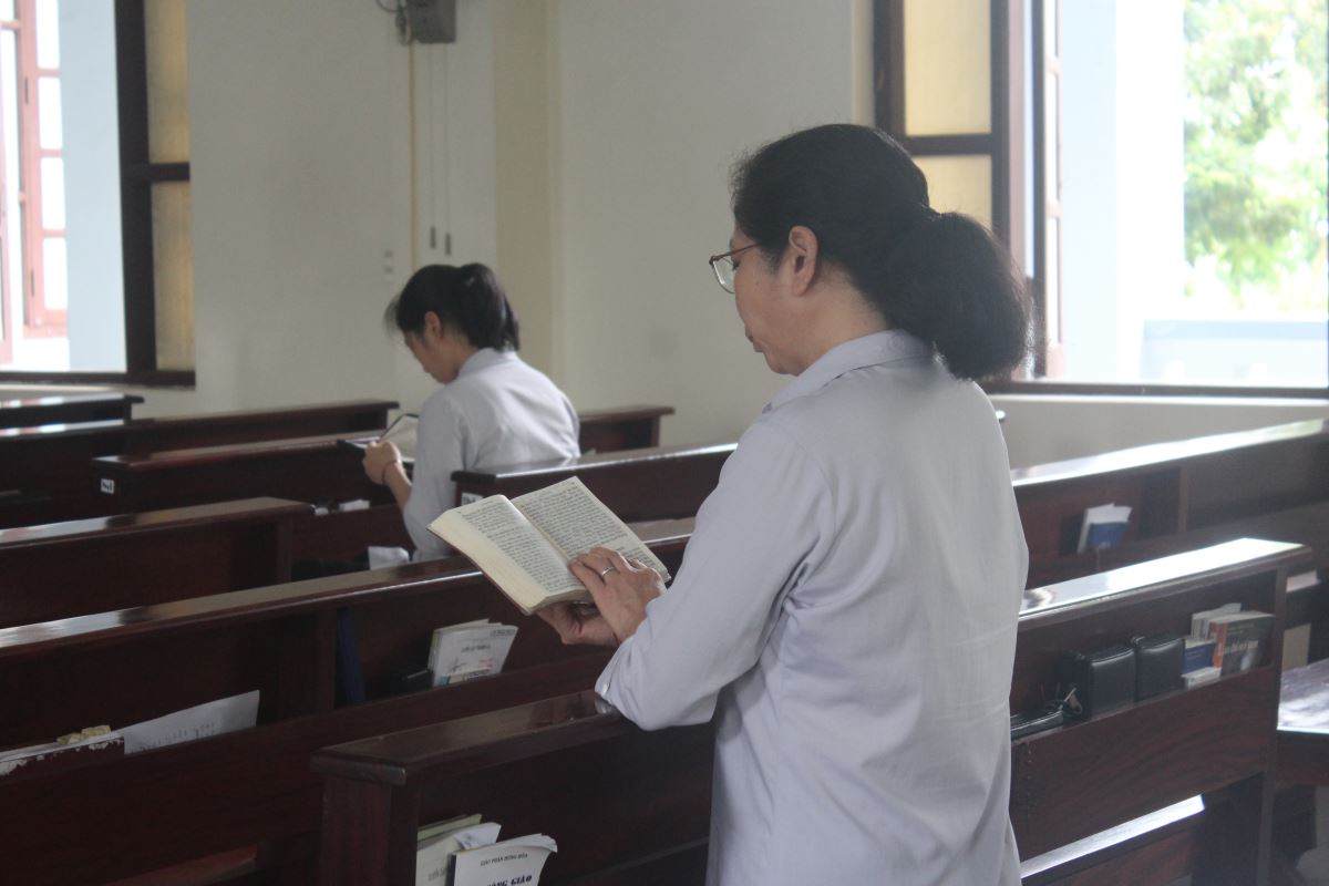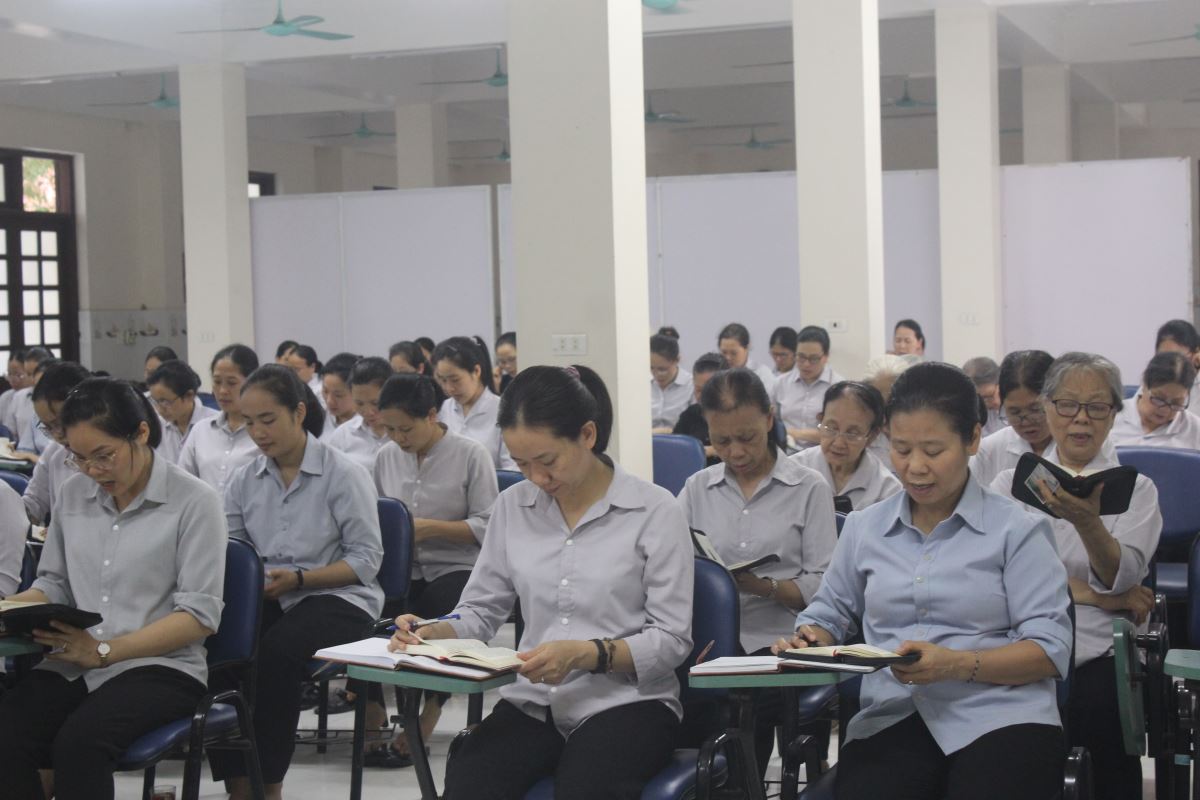 Trong bầu khí thinh lặng nội tâm, chị em được mời gọi “trở về với cõi lòng”, nhìn lại hành trình ơn gọi, nhận ra sự hiện diện trung tín của Chúa qua từng biến cố đời sống, từ đó củng cố lại mối tương quan cá nhân với Thiên Chúa, với chính mình và với sứ mạng được trao. Các giờ cầu nguyện cá nhân, suy niệm Lời Chúa, thánh lễ, và gặp gỡ thiêng liêng diễn ra mỗi ngày như những điểm tựa thiêng liêng nuôi dưỡng tâm hồn. Khóa linh thao không chỉ là thời gian nghỉ ngơi bên Chúa, mà còn là dịp để chị em được “ở lại” và kín múc sức mạnh thiêng liêng, chuẩn bị cho hành trình tông đồ phía trước.