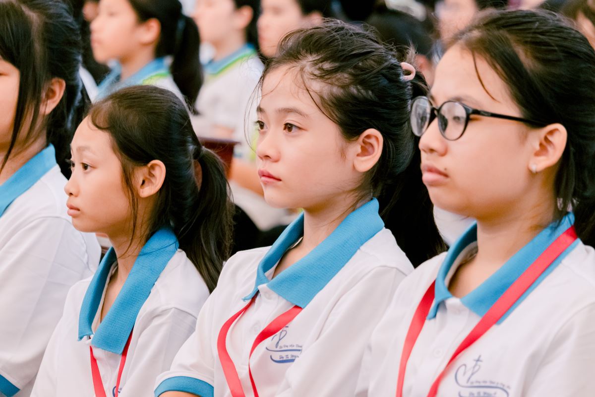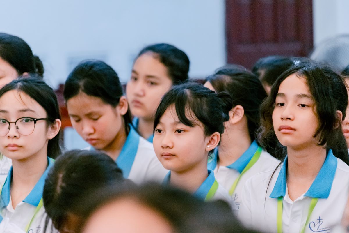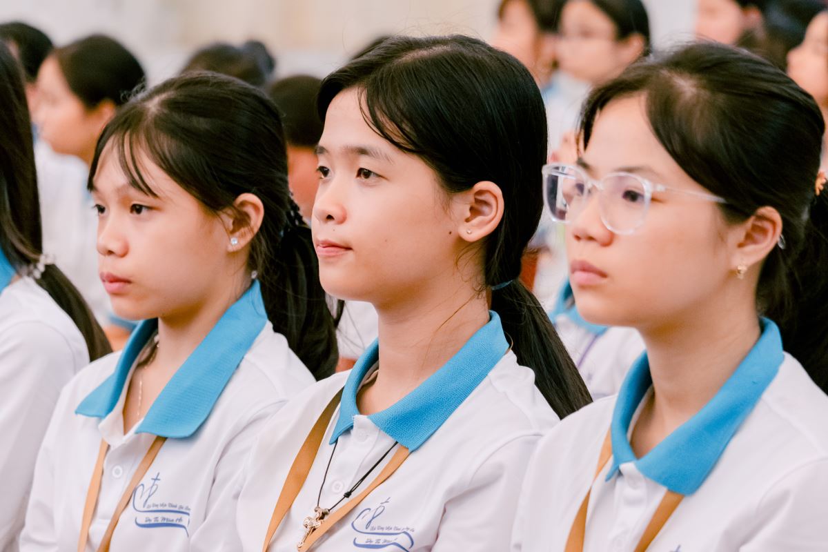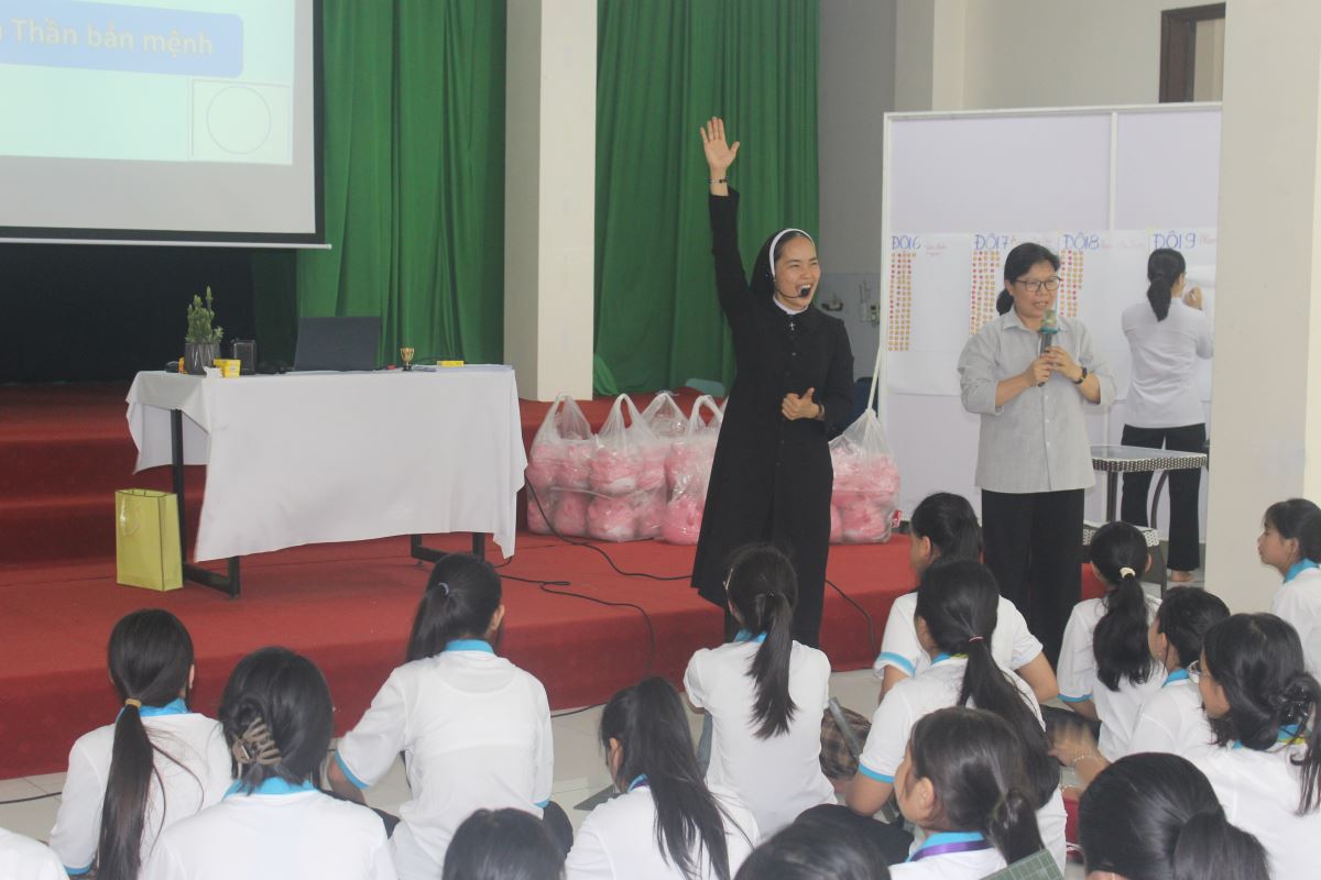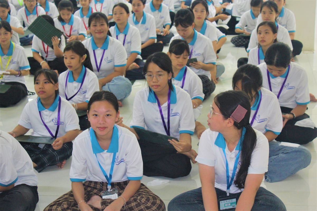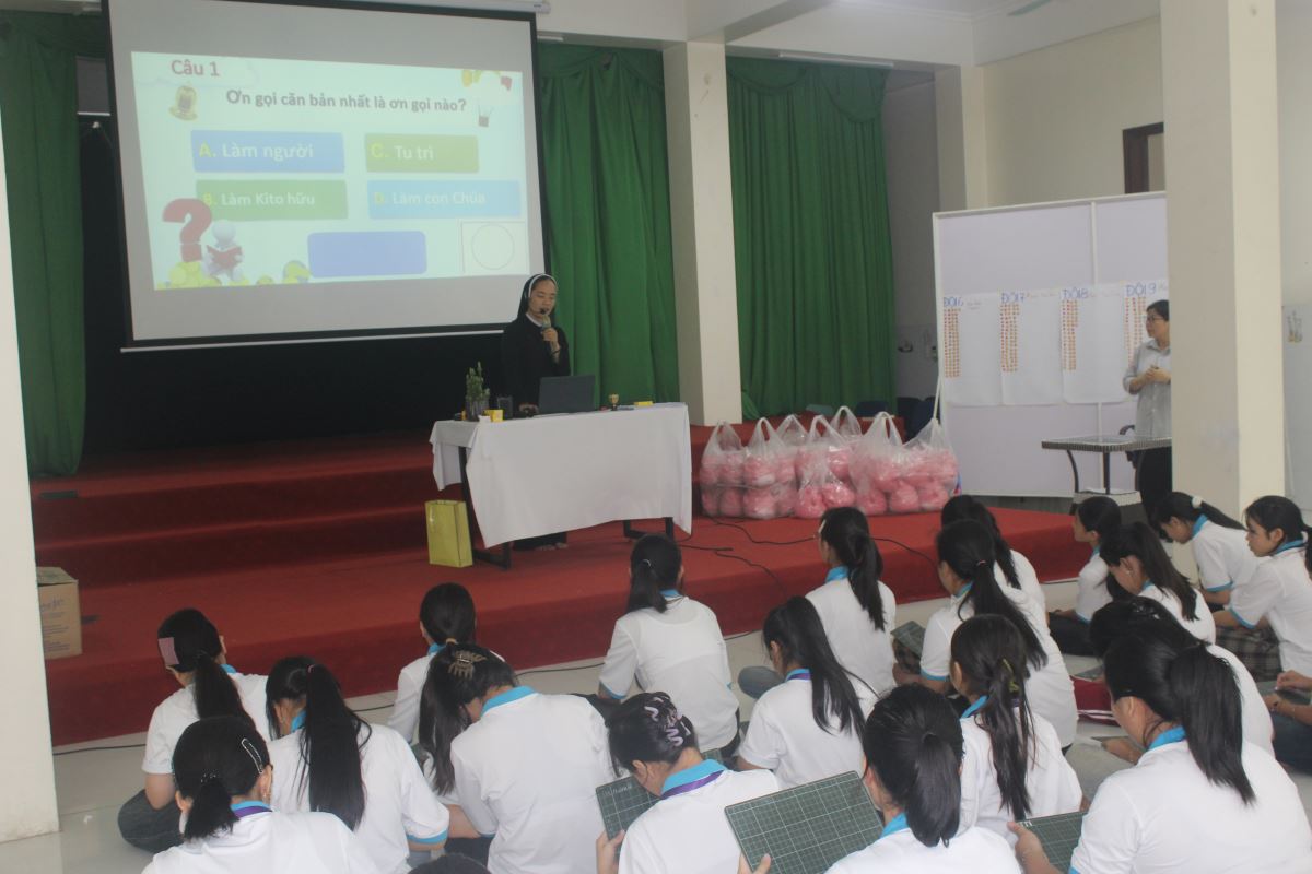 Từ những phút giây bỡ ngỡ ban đầu, các em nữ sinh đã dần bước vào nhịp sống tu trì: cùng nhau sống chung, cầu nguyện, học hỏi và vui chơi trong tinh thần hiệp nhất và yêu thương. Qua những giờ kinh Thần vụ, những buổi Chầu Thánh Thể trang nghiêm, các em được dẫn dắt làm quen với đời sống cầu nguyện, lắng nghe tiếng nói nội tâm và nhận ra sự hiện diện yêu thương của Thiên Chúa. Không chỉ vậy, các em còn được học hỏi về nhân bản và kỹ năng sống, rèn luyện khả năng lắng nghe, chia sẻ Lời Chúa trong nhóm nhỏ và đồng hành với nhau trong tinh thần trách nhiệm. Qua các hoạt động thường nhật như vệ sinh, nhặt rau, dọn bàn ăn, thể thao và làm việc nhóm, các em từng bước học cách sống chung, làm việc chung với tinh thần bác ái và hy sinh. Đây chính là những giá trị thiết yếu trong đời sống dâng hiến.