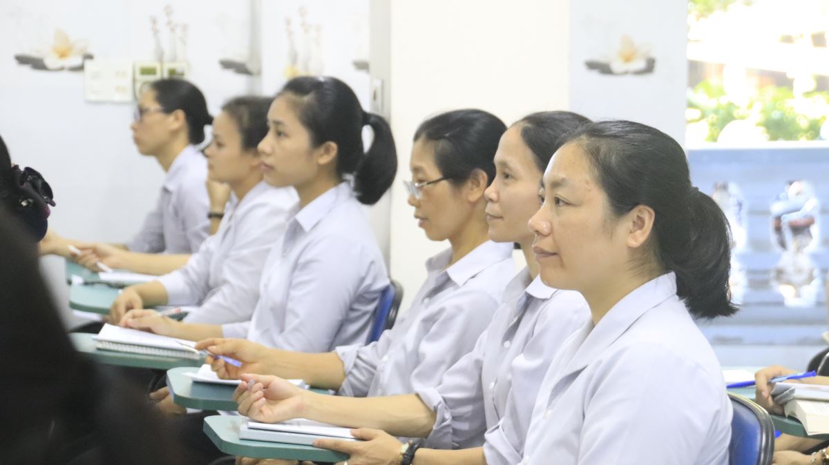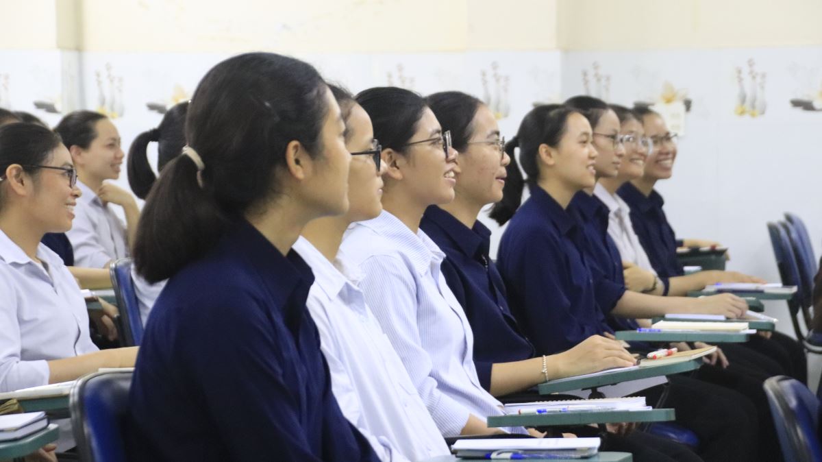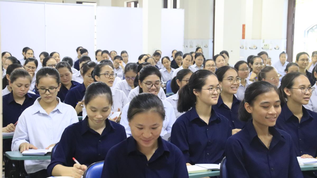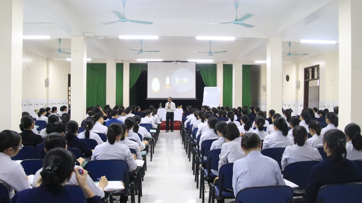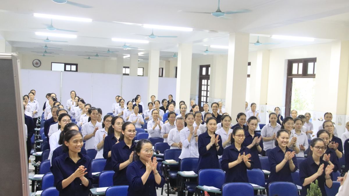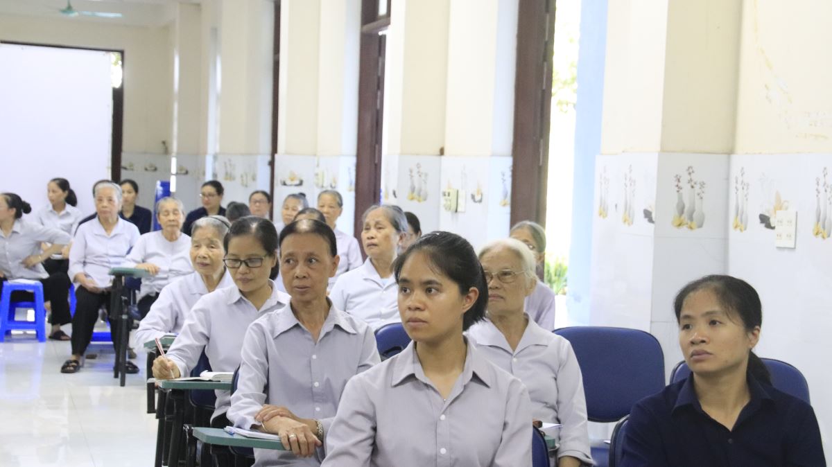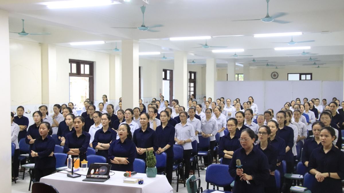 WMTGHH - Như một dịp dừng chân ý nghĩa giữa nhịp sống sứ vụ, các chị em Hội dòng Mến Thánh Giá Hưng Hóa đã cùng nhau tham dự khóa thường huấn ngoại khóa mang chủ đề “Phẩm giá con người – Một vài suy tư từ góc độ giáo dục”. Khóa thường huấn do Thầy Phaolô Đỗ Mạnh Cường – Chủ tịch Hội đồng trường Đại học Quốc tế Hồng Bàng, Viện trưởng Viện Khoa học Giáo dục và Đào tạo Giáo viên, Thường trực Hội đồng Giáo dục kiêm Giám đốc Chuyên môn Tập đoàn Nguyễn Hoàng (NHG) hướng dẫn. Với những chia sẻ vừa sâu sắc, vừa thực tiễn, Thầy đã mở ra nhiều góc nhìn mới giúp người nữ tu Mến Thánh Giá thêm vững vàng trên hành trình sống và phục vụ, luôn gìn giữ và lan tỏa phẩm giá nơi mình và nơi tha nhân. Khóa thường huấn quy tụ 180 chị em thuộc các khối: Thanh tuyển, Tiền Tập viện, Tiền Vĩnh khấn, khối Khấn trọn và Quý Bà Nhà hưu dưỡng. Đây là dịp hiếm có để mọi thành phần trong Hội dòng cùng ngồi lại, mở lòng lắng nghe, đối thoại và đào sâu về một chủ đề vừa mang tính nền tảng, vừa có ý nghĩa đối với sứ vụ và đời sống con người hôm nay. Trước khi bước vào chương trình, Dì Giám sư Học viện Maria Nguyễn Thị Thay đã gửi lời chào mừng nồng nhiệt tới Thầy Phaolô. Dì cũng bày tỏ niềm hân hoan khi Hội dòng được đón tiếp Thầy đến chia sẻ, đồng thời trân trọng nói lời tri ân Thầy đã quảng đại dành tặng những suất học bổng ý nghĩa cho Hội dòng trong nhiều năm nay. Món quà này không chỉ là sự hỗ trợ quý báu về mặt vật chất, mà còn là nguồn khích lệ tinh thần, giúp chị em thêm động lực học tập và dấn thân trong sứ vụ. Bằng kiến thức học thuật và trải nghiệm giáo dục phong phú, Thầy Phaolô đã giúp chị em nhận ra chiều sâu và vẻ đẹp của phẩm giá con người – một giá trị bẩm sinh do Thiên Chúa trao ban, đồng thời là nền tảng cho mọi hoạt động giáo dục. Từ đó, mỗi người được mời gọi chiêm ngắm phẩm giá nơi chính mình và nơi tha nhân, không chỉ bằng ánh nhìn của tri thức, mà còn bằng trái tim biết lắng nghe, tôn trọng và yêu thương. Không chỉ dừng lại ở lý thuyết, các buổi học còn mở ra những trao đổi cởi mở, nơi chị em được chia sẻ kinh nghiệm, đặt câu hỏi và cùng nhau tìm ra hướng thực hành. Trong môi trường cộng đoàn, phẩm giá thể hiện qua sự tôn trọng, cảm thông và nâng đỡ nhau. Trong sứ vụ, phẩm giá lan tỏa qua cách đối xử với học sinh, bệnh nhân, người nghèo… như chính hình ảnh của Đức Kitô. Còn trong xã hội, phẩm giá được bảo vệ khi ta dám lên tiếng cho công lý, sự thật và tình thương. Dù khóa thường huấn ngoại khóa chỉ tóm gọn trong hai ngày ngắn ngủi, nhưng đã để lại nơi chị em nhiều ấn tượng sâu đậm. Không chỉ được mở rộng tầm nhìn và khơi gợi những suy tư mới mẻ về phẩm giá con người, chị em còn được tiếp thêm nhiệt huyết để sống trọn ơn gọi và sứ vụ. Những kiến thức, kinh nghiệm và định hướng từ Thầy Phaolo sẽ trở thành hành trang quý giá, giúp người nữ tu Mến Thánh Giá tiếp tục lan tỏa tình yêu, sự tôn trọng và niềm hy vọng đến với mọi người, đặc biệt là những người bé mọn và dễ bị tổn thương.