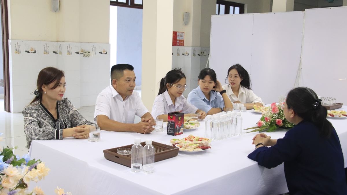 Tiếp theo, Chị Tổng Phụ trách Maria Đỗ Thị Thanh Huyền đại diện Hội Dòng ân cần chào đón, cầu chúc và khích lệ các em luôn can đảm tiến bước trên hành trình thánh hiến, phó thác trọn vẹn trong tình yêu của Thiên Chúa.