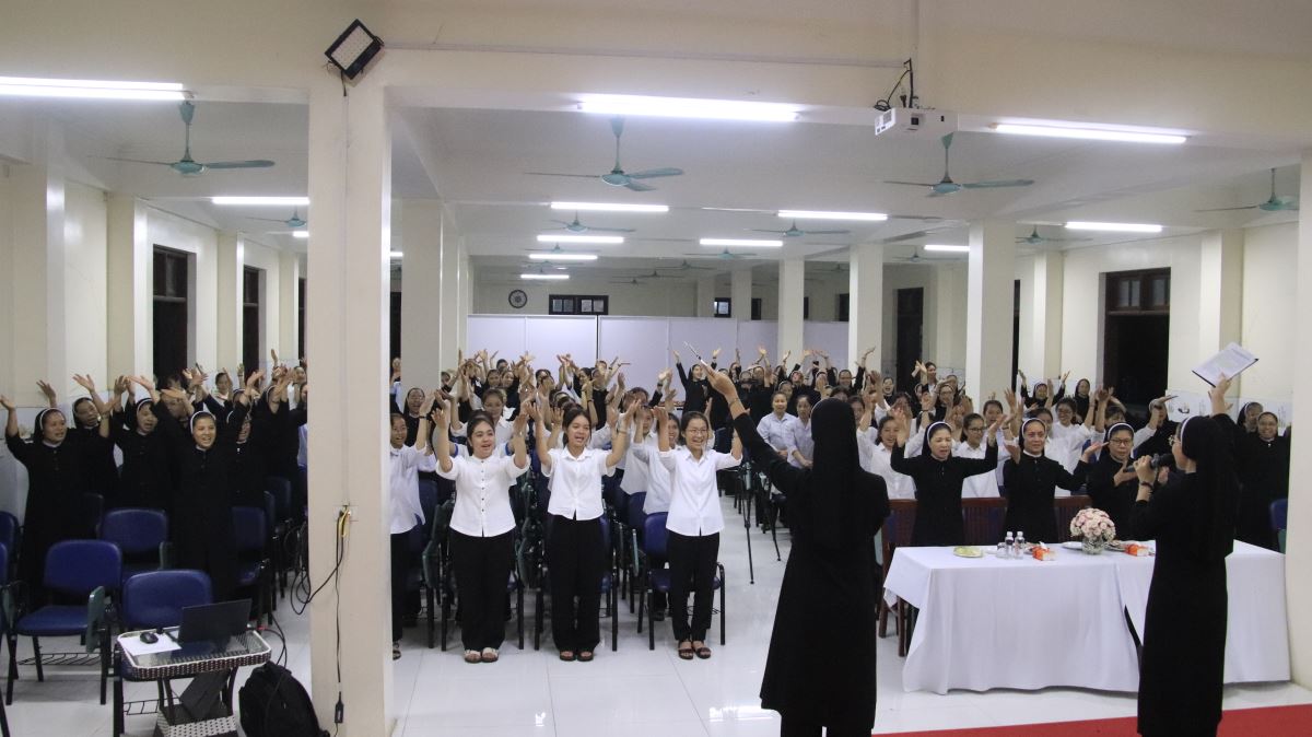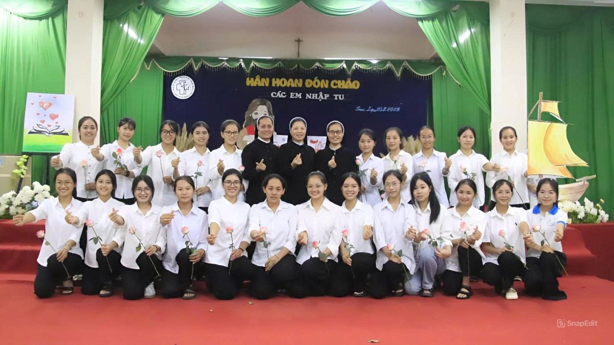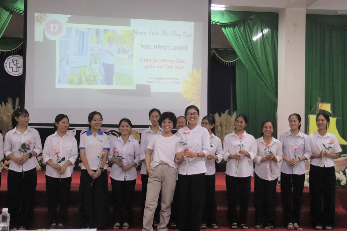Chương trình khép lại vào lúc 21g00 trong tâm tình tạ ơn Thiên Chúa. Khi “Khúc cảm tạ” vang lên, cả Hội trường như hòa chung một nhịp thở thiêng liêng: lời ca không chỉ là giai điệu, mà còn là tâm tình tri ân tha thiết của các em dâng lên Thiên Chúa. Trong giây phút lắng đọng ấy, mỗi em như thầm nguyện hứa: sống trọn đời tận hiến để đáp lại muôn hồng ân Chúa đã thương ban. Sau ngày nhập tu này, các em sẽ chính thức bước vào chương trình huấn luyện khởi đầu với những môn học căn bản cùng nếp sống tu trì và đời sống cộng đoàn. Từng ngày, các em sẽ học cách lắng nghe tiếng Chúa, để tình yêu Người dẫn dắt và thanh luyện. Dẫu hành trình còn nhiều thử thách, nhưng niềm vui thánh hiến sẽ là sức mạnh nâng đỡ các em luôn trung thành với lời thưa ban đầu. Hành trình trước mắt tuy còn dài và nhiều thử thách, nhưng chắc chắn cũng chan chứa niềm vui và ân sủng. Ước mong các em sẽ cảm nghiệm được hạnh phúc ngọt ngào của tình yêu Chúa, để mỗi ngày thêm xác tín và kiên vững trong lời đáp trả: “Con xin theo Thầy.” Nguyện xin Thiên Chúa – Đấng khơi nguồn ơn gọi, luôn nâng đỡ và dìu dắt các em trong từng bước đường, để các em có thể dấn thân trọn vẹn trong ơn gọi thánh hiến. Xin cho cuộc đời các em trổ sinh những hoa trái thiêng liêng, tỏa hương thánh thiện, để làm rạng ngời tình yêu Mến Thánh Giá giữa thế giới hôm nay.