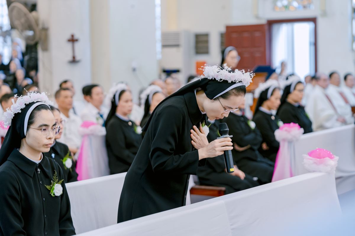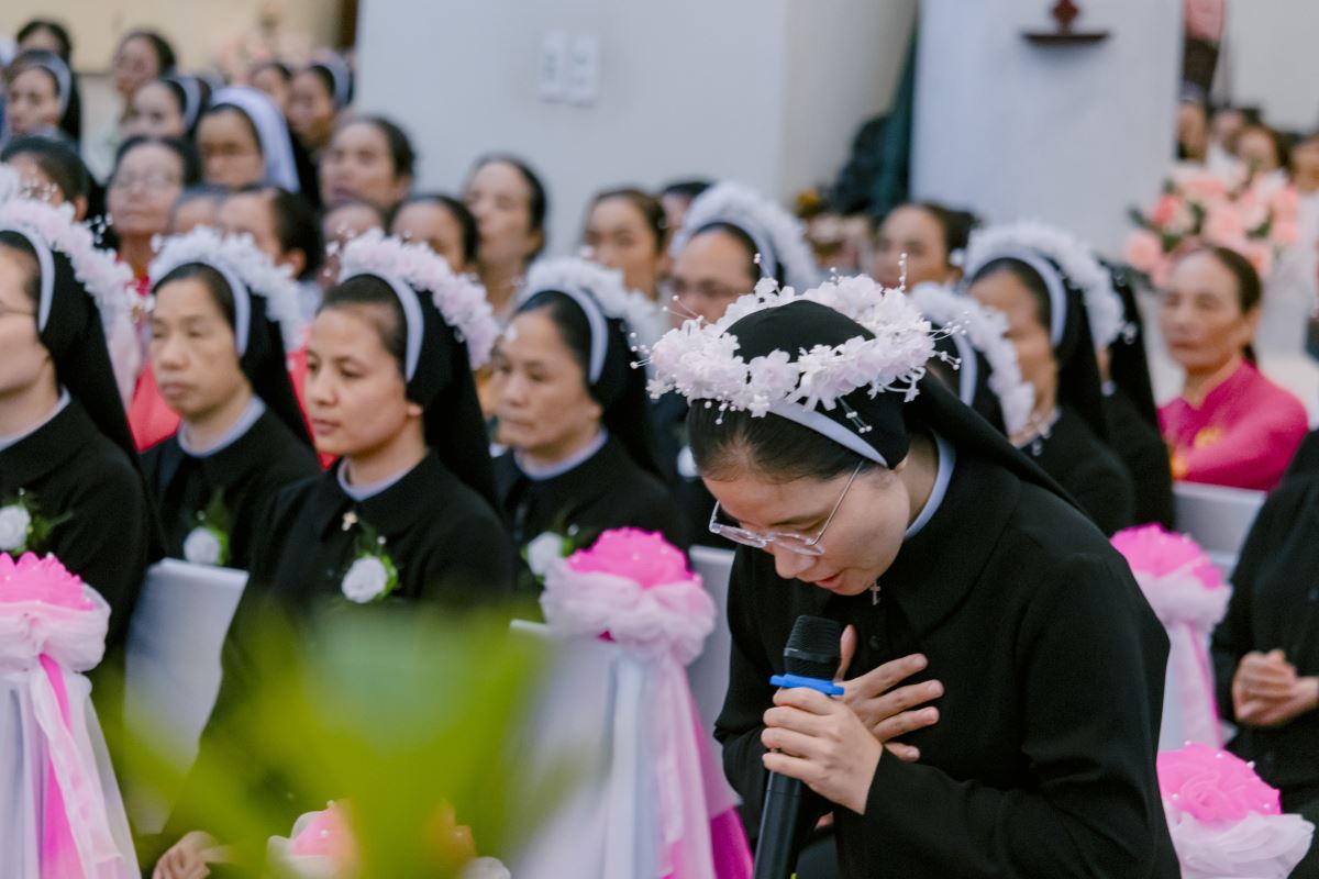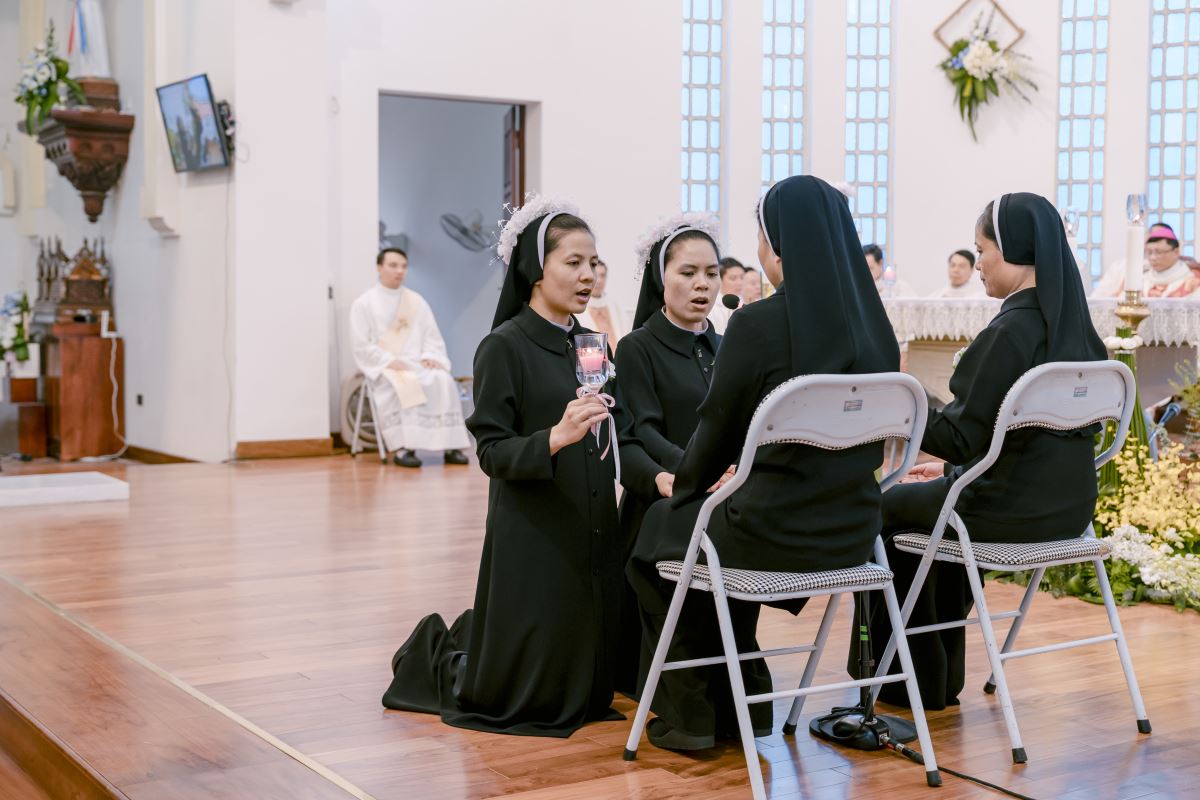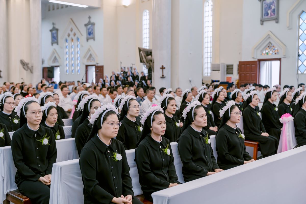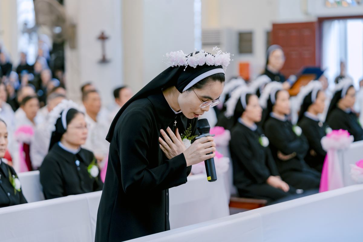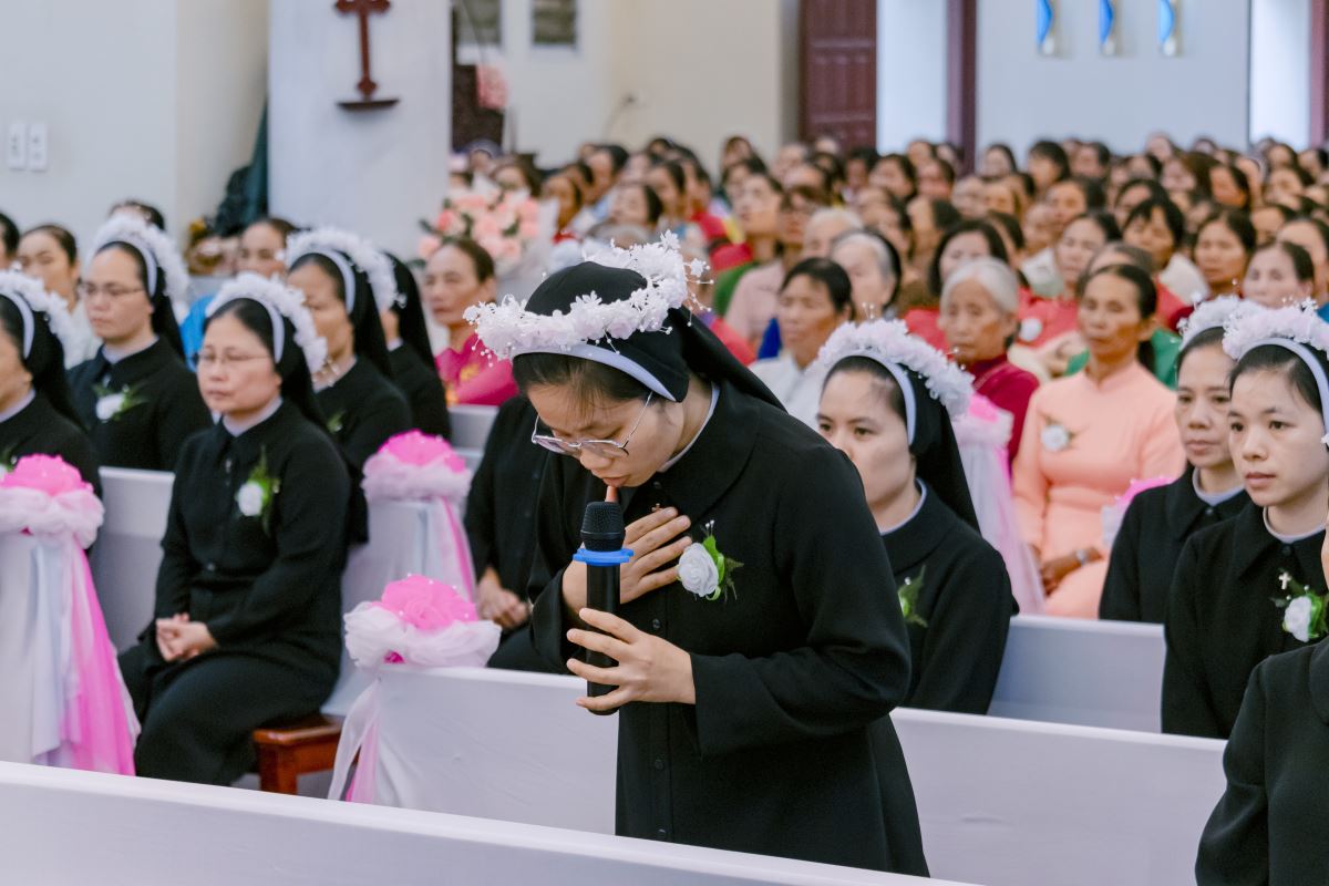 Mở đầu Thánh lễ, Đức cha Đaminh mời gọi cộng đoàn dâng lời tạ ơn Thiên Chúa vì hồng ân Người đã ban cho Giáo phận Hưng Hóa và Hội Dòng có thêm 16 nữ tu tuyên khấn trọn đời và 15 nữ tu mừng Ngân khánh khấn dòng. Đồng thời, Đức cha cũng tha thiết nguyện xin Chúa tuôn đổ muôn phúc lành trên các nữ tu, giúp mỗi chị em luôn sống thánh thiện, đạo đức và trung tín trong đời dâng hiến, để trở nên tấm gương sáng của đời sống tu trì và là chứng nhân sống động cho tình yêu Chúa giữa lòng thế giới hôm nay.