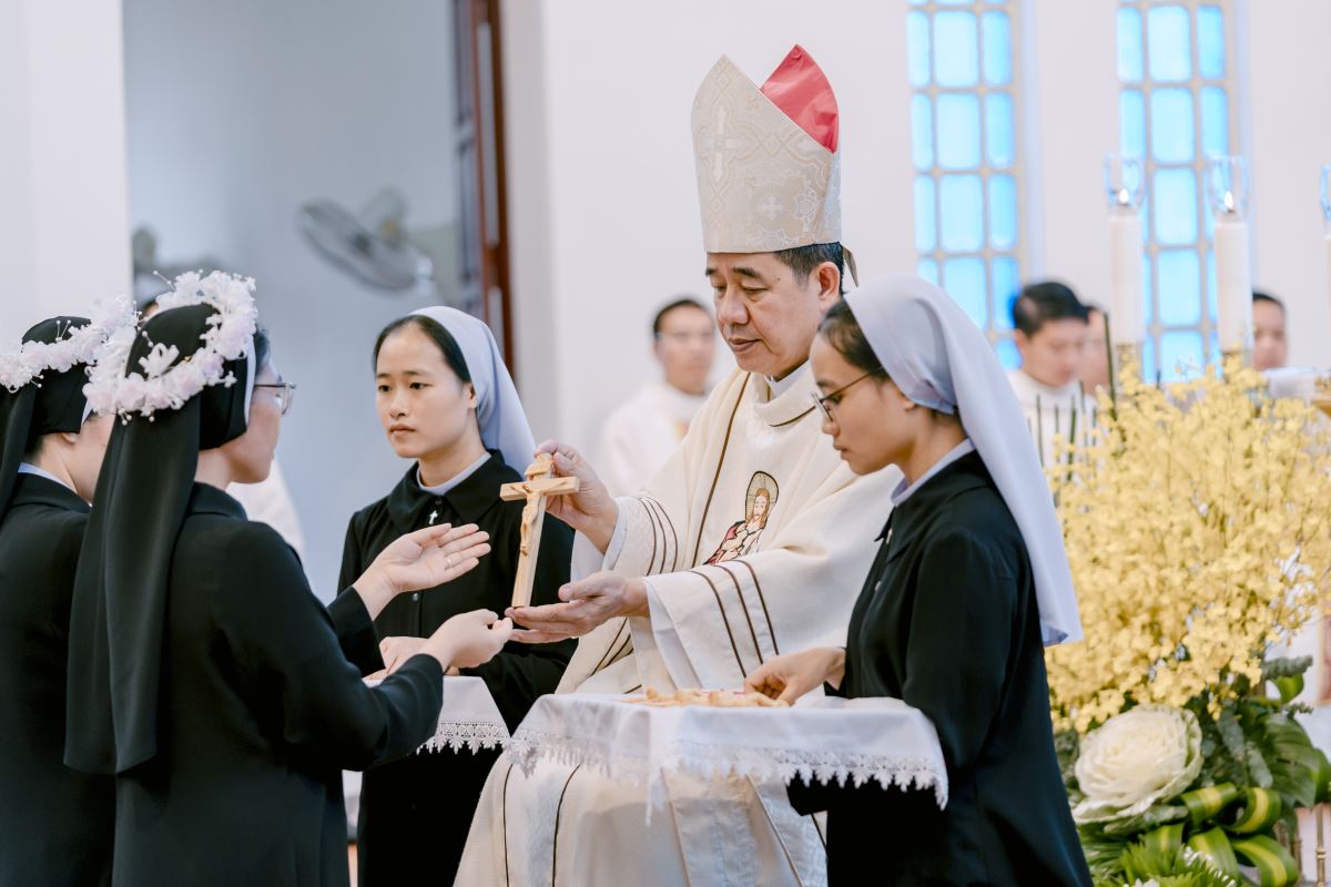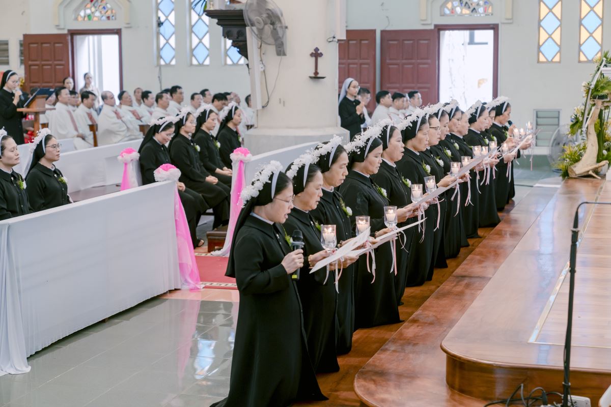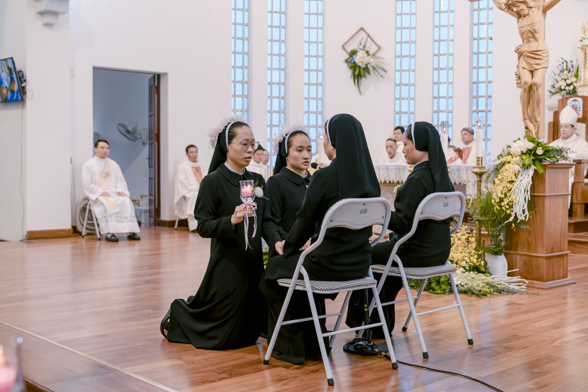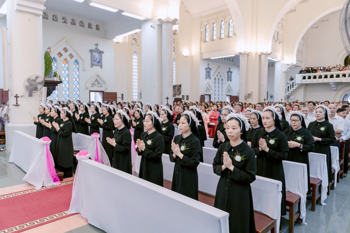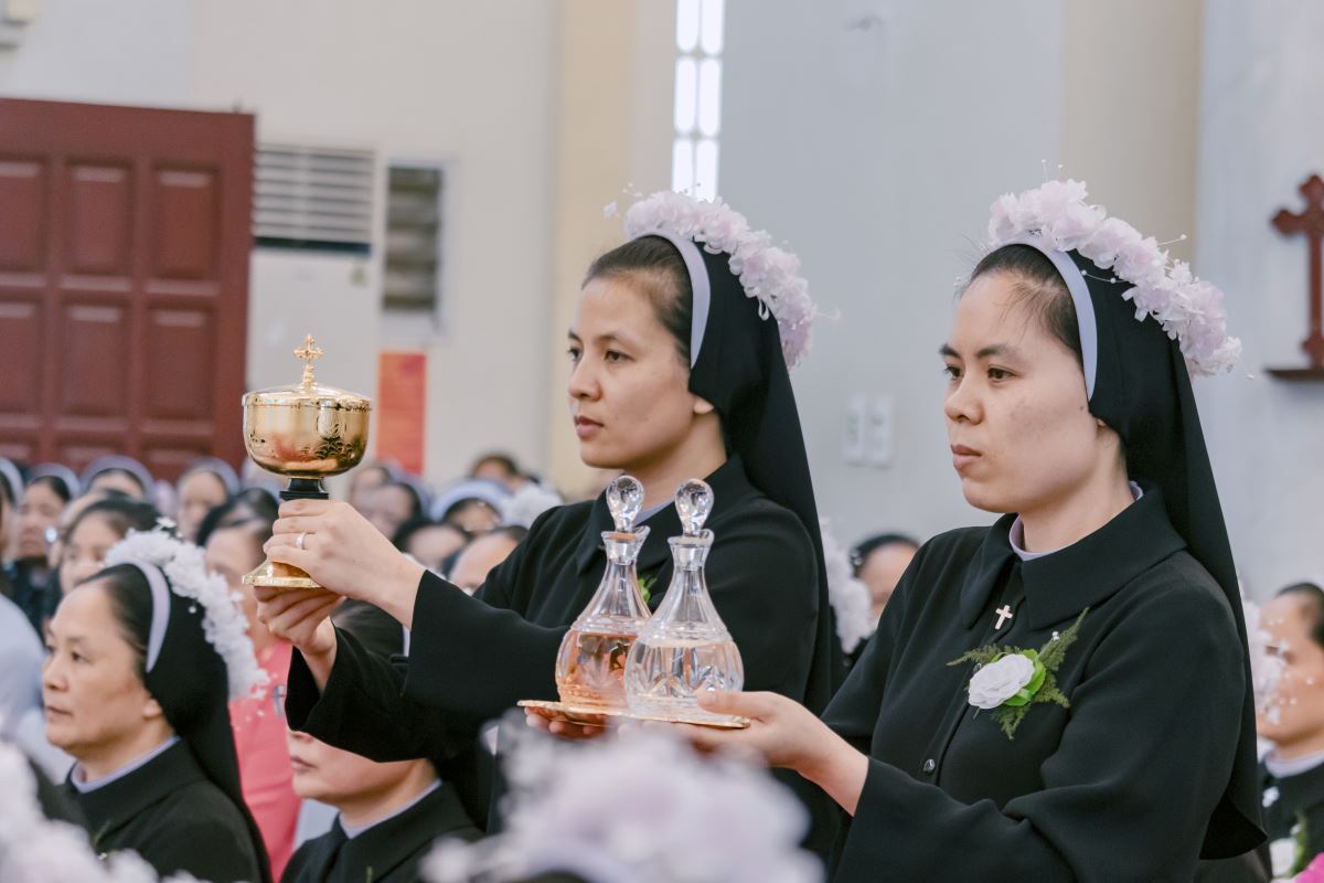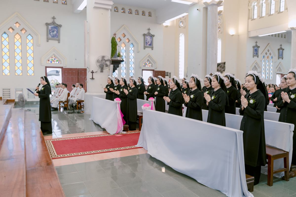 Mở đầu Thánh lễ, Đức cha Đaminh mời gọi cộng đoàn dâng lời tạ ơn Thiên Chúa vì hồng ân Người đã ban cho Giáo phận Hưng Hóa và Hội Dòng có thêm 16 nữ tu tuyên khấn trọn đời và 15 nữ tu mừng Ngân khánh khấn dòng. Đồng thời, Đức cha cũng tha thiết nguyện xin Chúa tuôn đổ muôn phúc lành trên các nữ tu, giúp mỗi chị em luôn sống thánh thiện, đạo đức và trung tín trong đời dâng hiến, để trở nên tấm gương sáng của đời sống tu trì và là chứng nhân sống động cho tình yêu Chúa giữa lòng thế giới hôm nay.