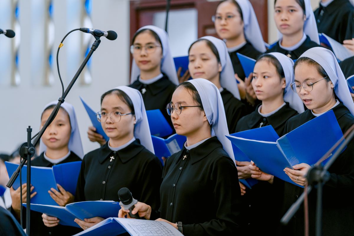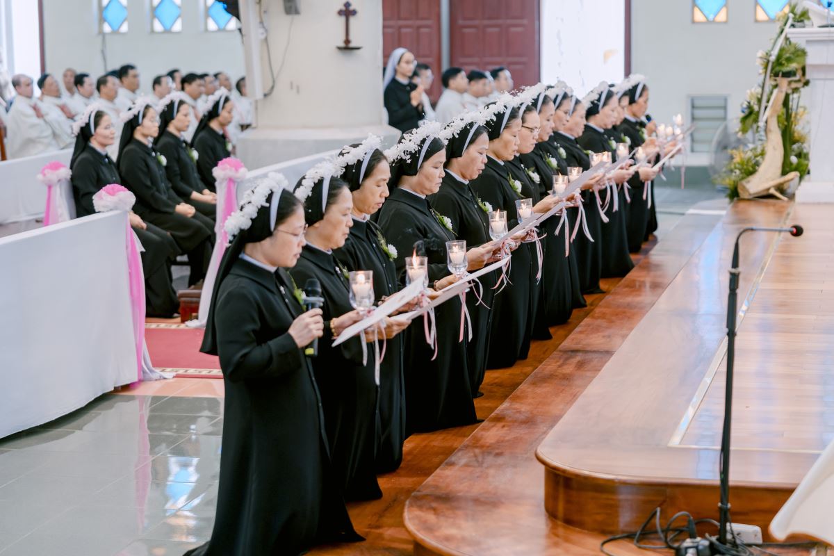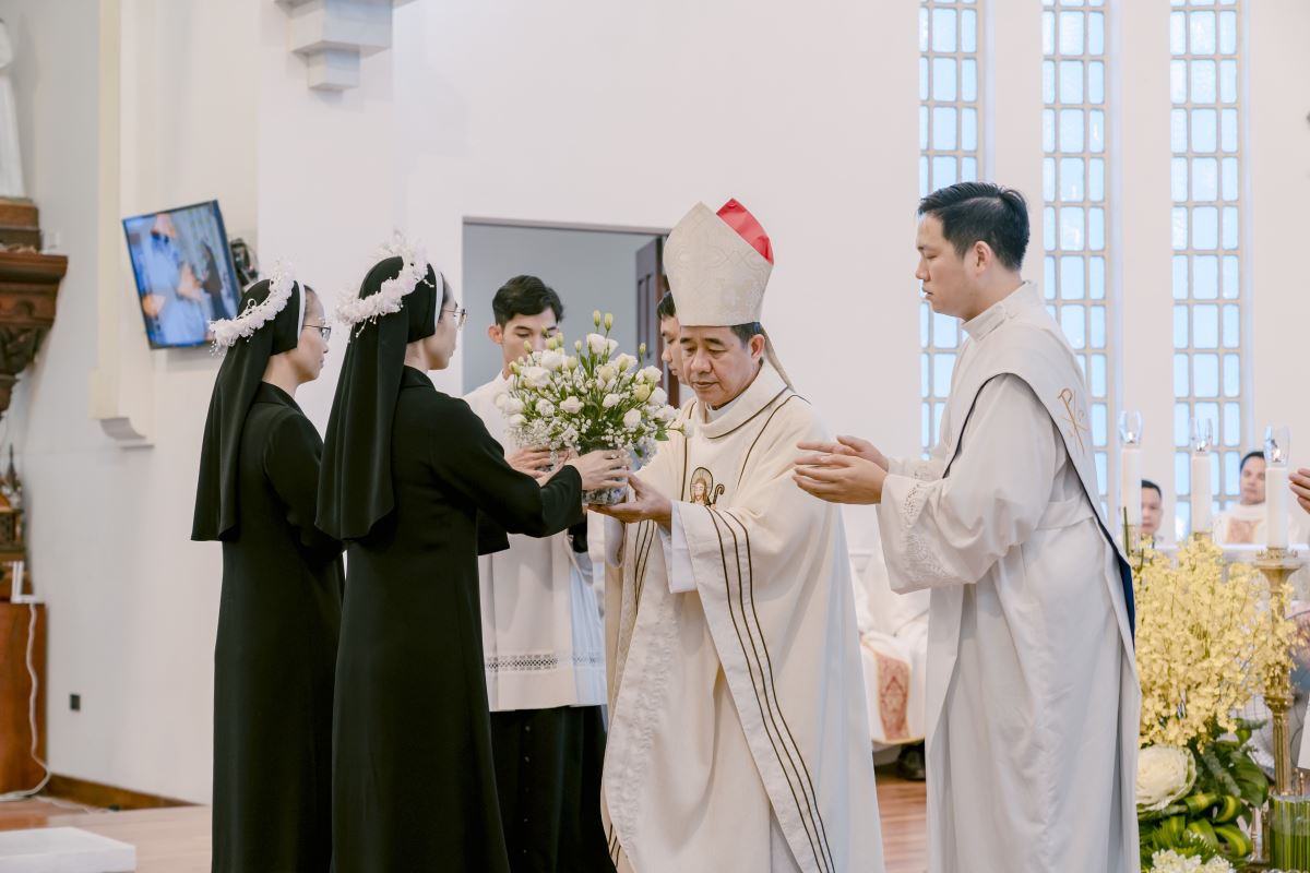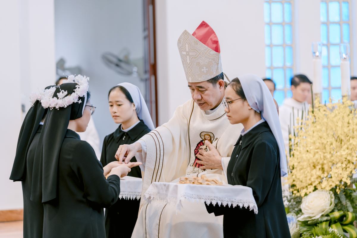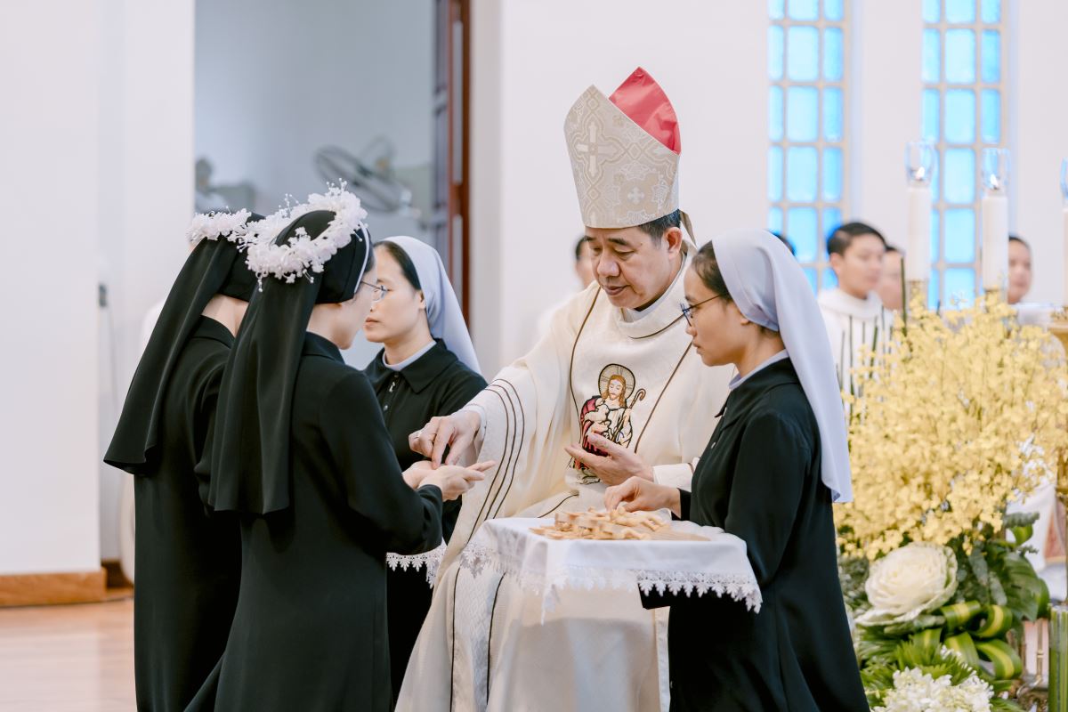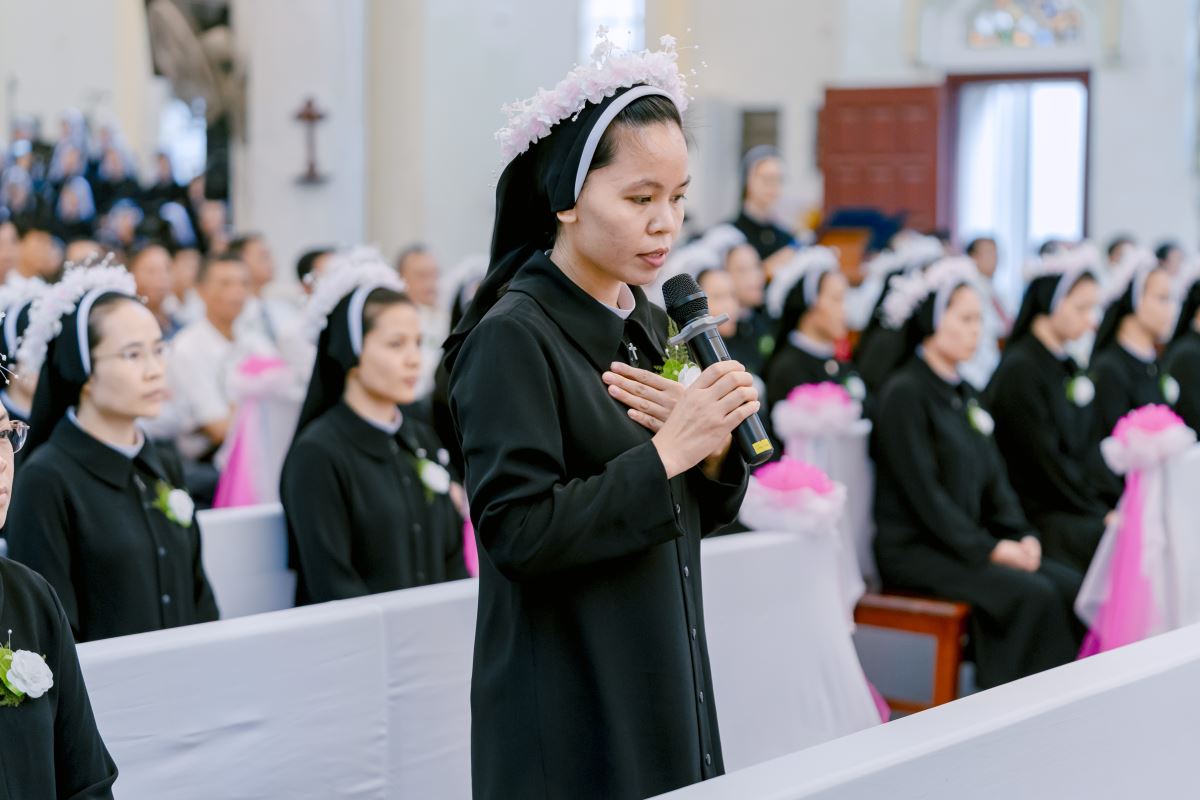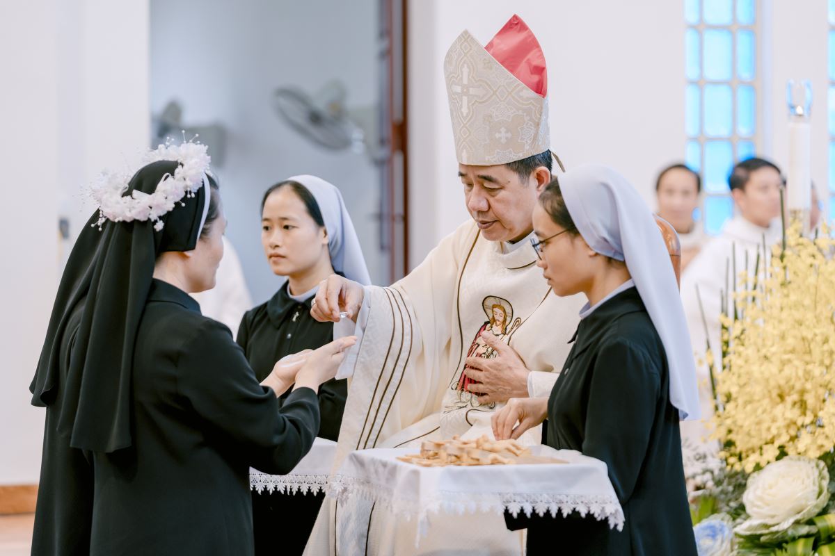 Mở đầu Thánh lễ, Đức cha Đaminh mời gọi cộng đoàn dâng lời tạ ơn Thiên Chúa vì hồng ân Người đã ban cho Giáo phận Hưng Hóa và Hội Dòng có thêm 16 nữ tu tuyên khấn trọn đời và 15 nữ tu mừng Ngân khánh khấn dòng. Đồng thời, Đức cha cũng tha thiết nguyện xin Chúa tuôn đổ muôn phúc lành trên các nữ tu, giúp mỗi chị em luôn sống thánh thiện, đạo đức và trung tín trong đời dâng hiến, để trở nên tấm gương sáng của đời sống tu trì và là chứng nhân sống động cho tình yêu Chúa giữa lòng thế giới hôm nay.