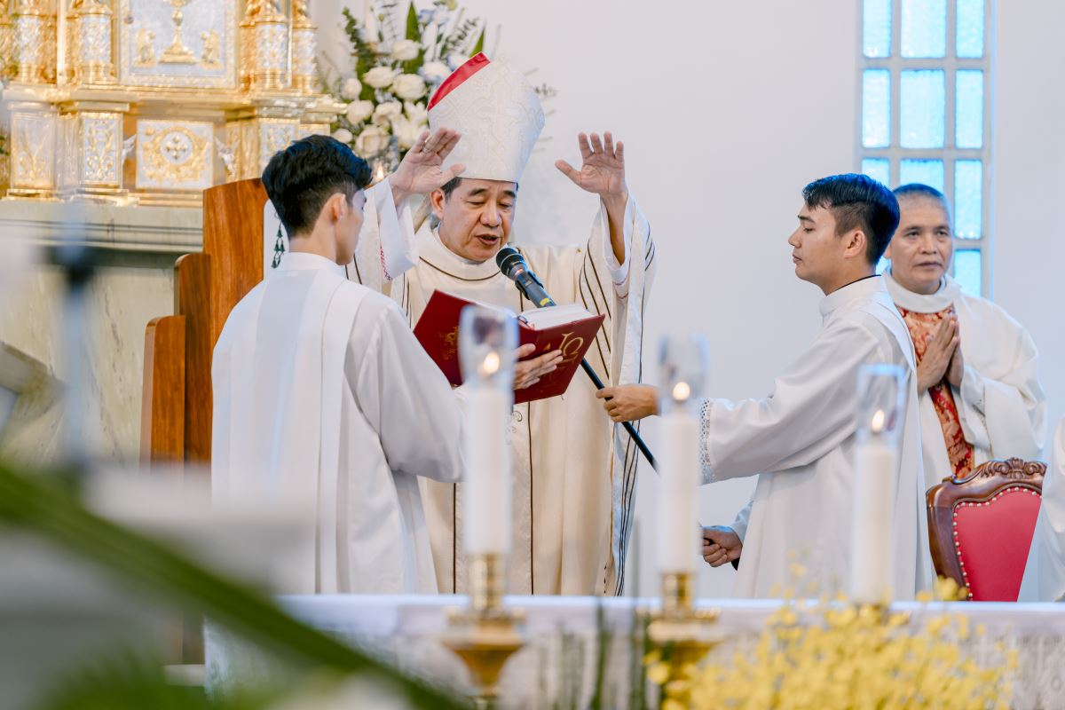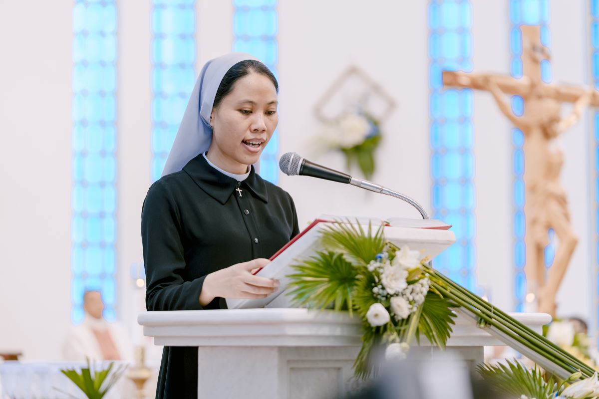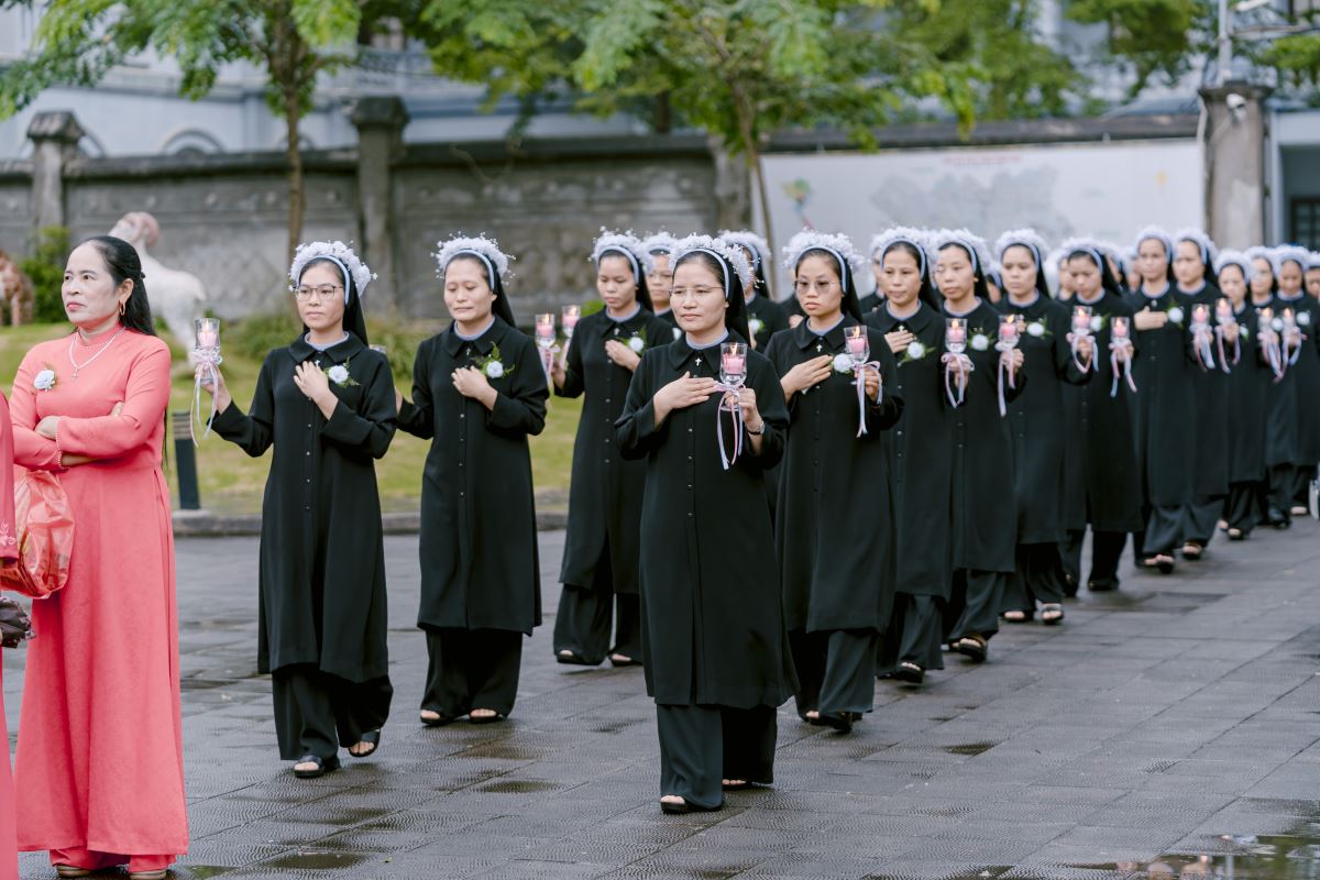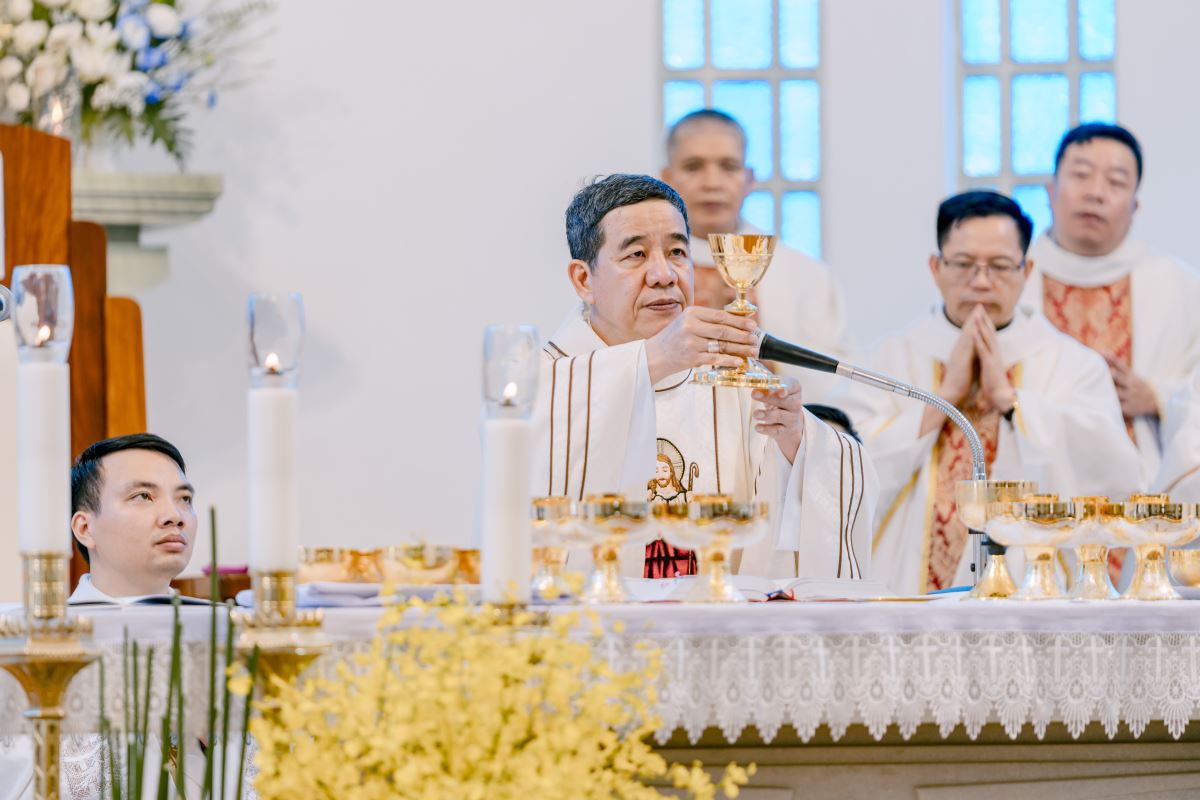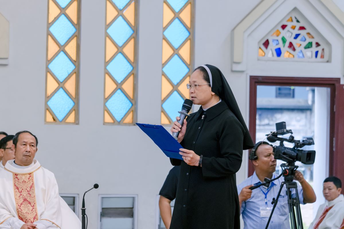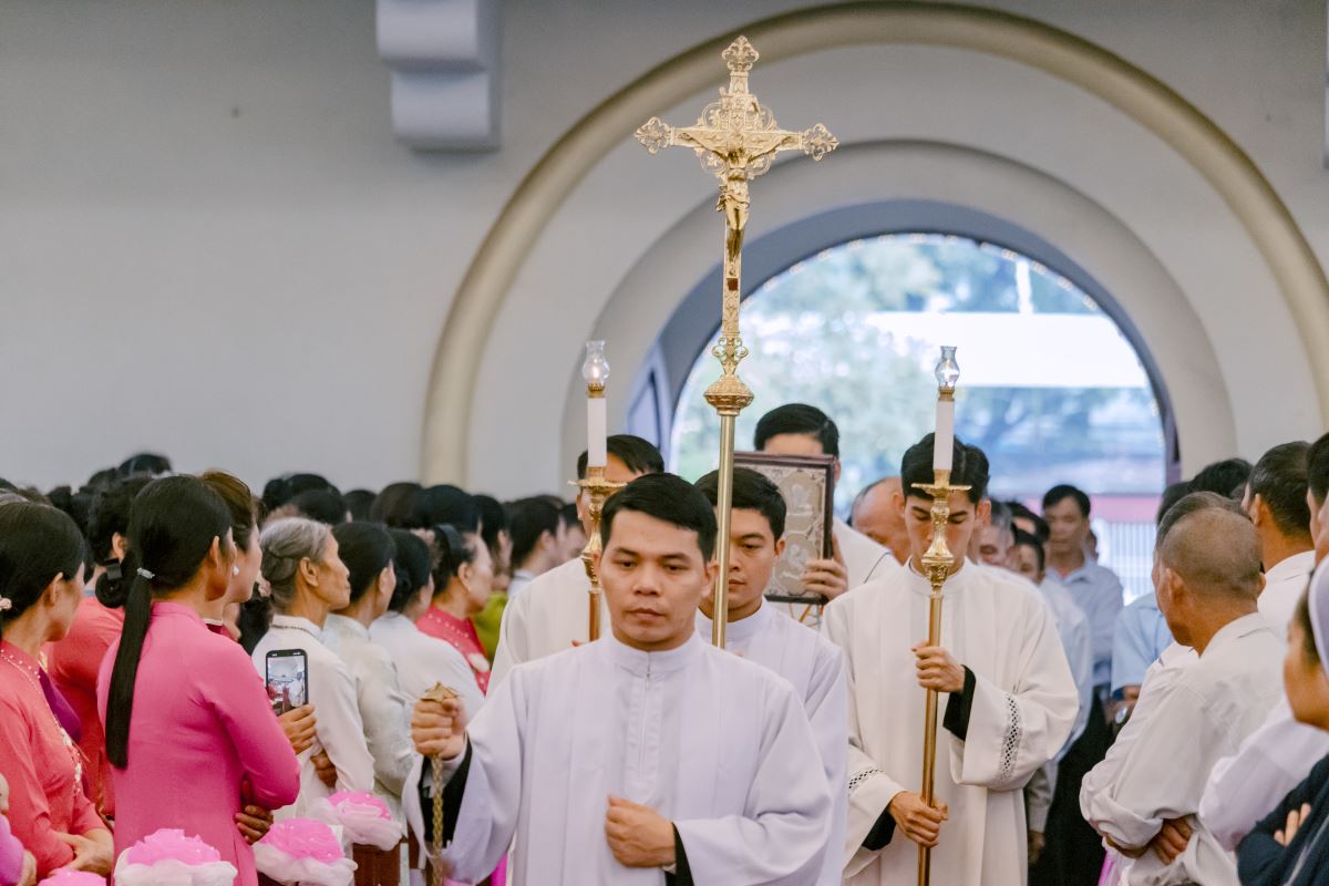 Mở đầu Thánh lễ, Đức cha Đaminh mời gọi cộng đoàn dâng lời tạ ơn Thiên Chúa vì hồng ân Người đã ban cho Giáo phận Hưng Hóa và Hội Dòng có thêm 16 nữ tu tuyên khấn trọn đời và 15 nữ tu mừng Ngân khánh khấn dòng. Đồng thời, Đức cha cũng tha thiết nguyện xin Chúa tuôn đổ muôn phúc lành trên các nữ tu, giúp mỗi chị em luôn sống thánh thiện, đạo đức và trung tín trong đời dâng hiến, để trở nên tấm gương sáng của đời sống tu trì và là chứng nhân sống động cho tình yêu Chúa giữa lòng thế giới hôm nay.