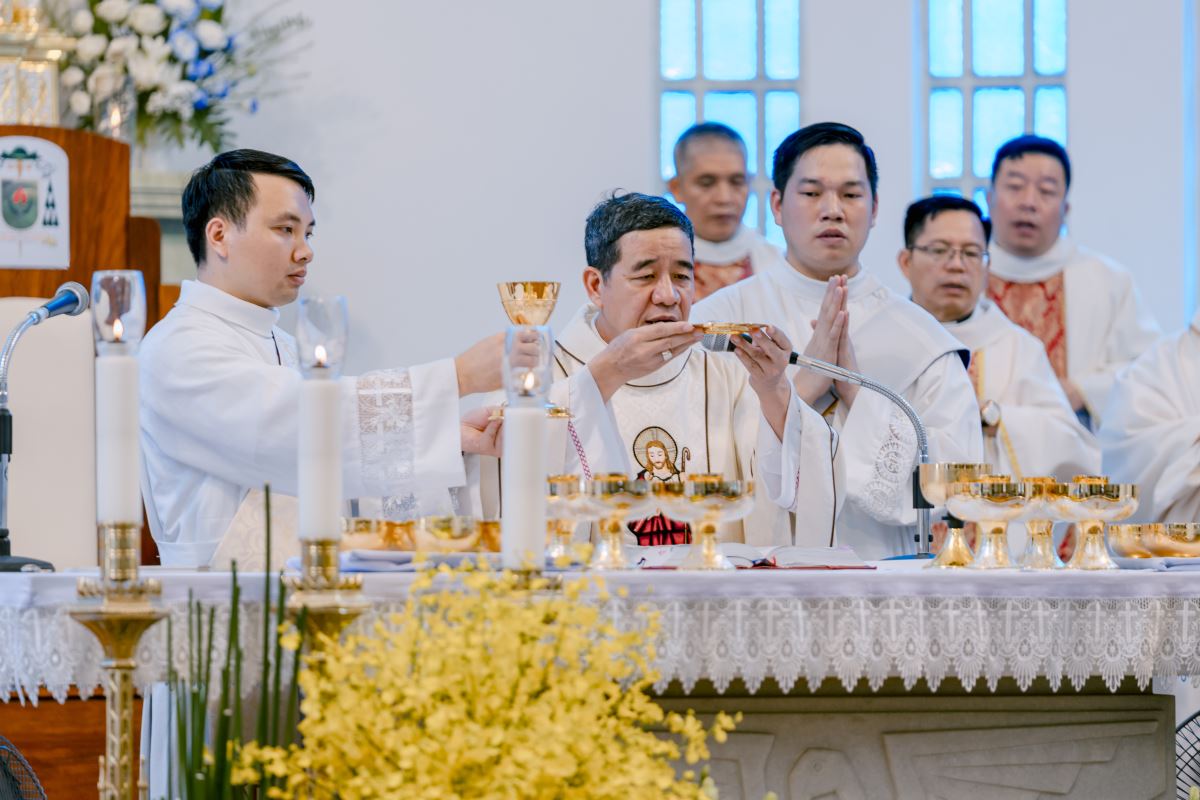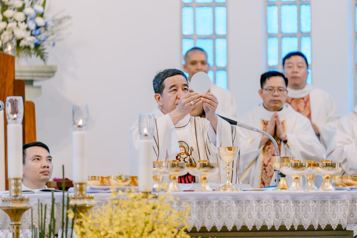 Thánh lễ được tiếp tục với phần Phụng vụ Thánh Thể trong bầu khí trang nghiêm và thánh thiêng.