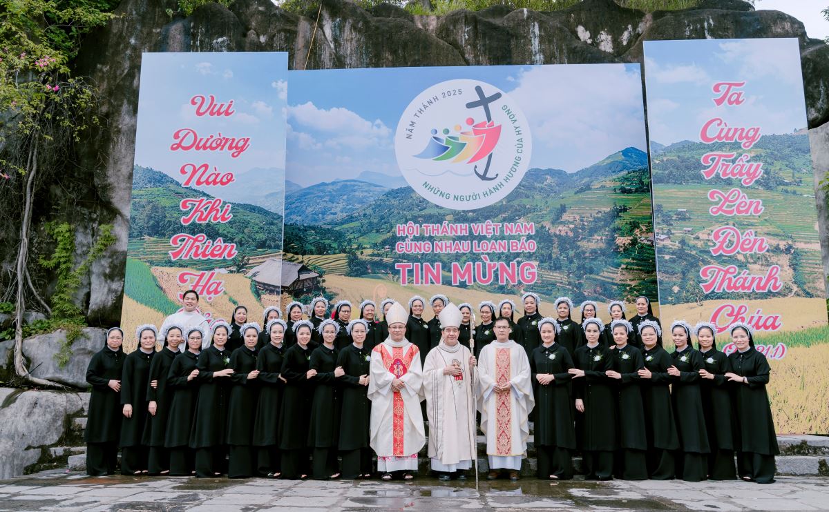 WMTGHH -“Ngày hạnh phúc Chúa ơi, cuộc giao duyên đất trời, đưa con vào tình sử, để hiến dâng trọn đời” (Gieo bước – Hải Hồ, Trần Định). Lời ca ấy ngân lên như khúc hát của những tâm hồn được Thiên Chúa chạm đến, cũng là nơi giao hòa giữa ân sủng và tình yêu, giữa trời cao và phận người bé nhỏ, mỏng giòn. Ngày hôm nay, một lần nữa, lời thánh ca ấy lại ngọt vang trong lòng của 16 nữ tu tuyên khấn trọn đời và 15 nữ tu mừng ngân khánh khấn dòng trong Thánh lễ tại Nhà thờ Chính tòa Sơn Lộc. Thánh lễ do Đức cha Đaminh Hoàng Minh Tiến – Giám mục Giáo phận Hưng Hóa chủ tế, được cử hành vào lúc 08g00, ngày 15.10.2025. Đồng tế trong Thánh lễ có Đức cha phụ tá Phaolô Nguyễn Quang Đĩnh, quý cha trong và ngoài giáo phận, cùng với sự tham dự của quý tu sĩ, chủng sinh, quý phụ huynh, quý thân nhân, ân nhân của các khấn sinh.