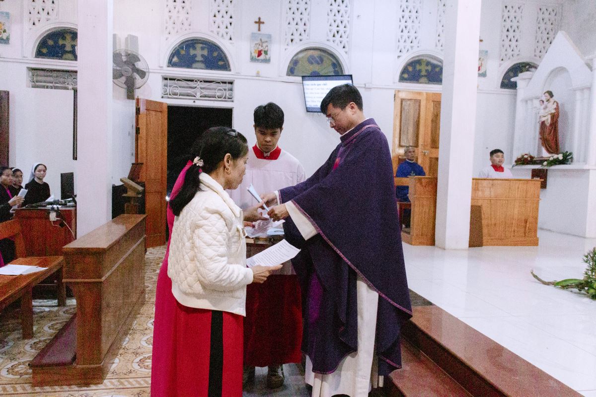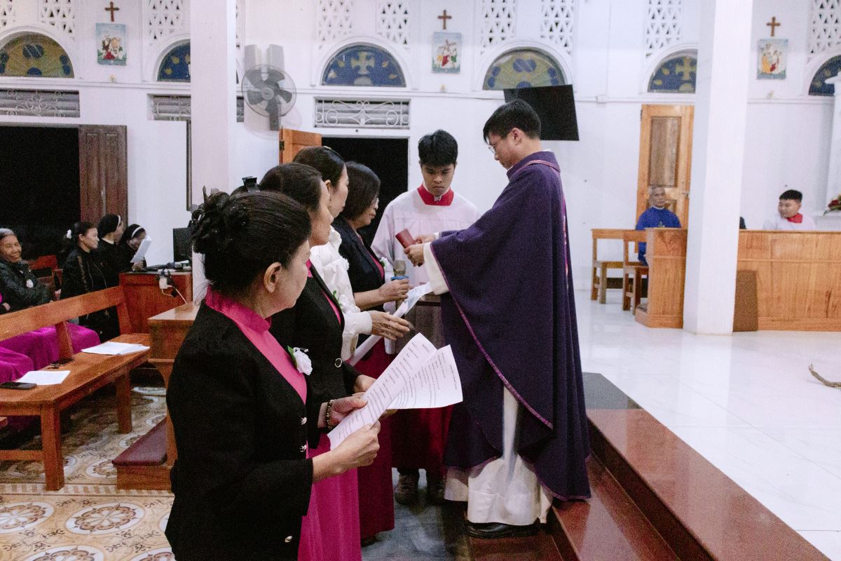 WMTGHH- Vào lúc 19g00 ngày 05/12/2025, trong bầu khí trang nghiêm của những ngày đầu Mùa Vọng, cha xứ Giuse Nguyễn Ngọc Ngoạn đã long trọng cử hành Thánh Lễ Gia Nhập và Cam Kết cho các Hội viên Hiệp Hội Tín Hữu Mến Thánh Giá Đồng Xa tại thánh đường giáo xứ Đồng Xa. Hiện diện trong Thánh Lễ có dì Đặc trách Hiệp hội Maria Nguyễn Thị Nhung, dì Trợ úy Maria Hoàng Thị Hoạch, quý dì cộng đoàn Mến Thánh Giá Vân Thê, cùng toàn thể các hội viên và đông đảo cộng đoàn dân Chúa.