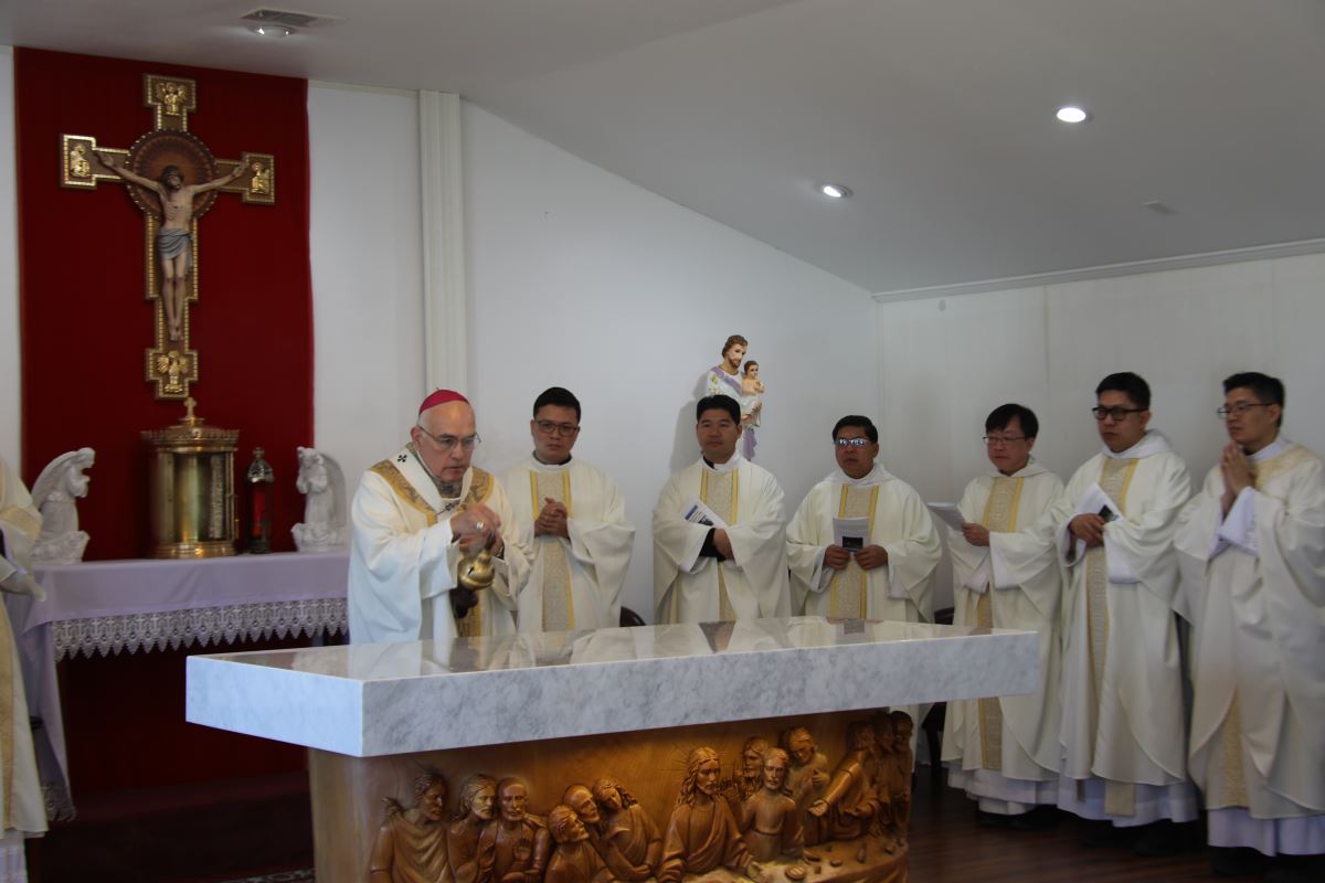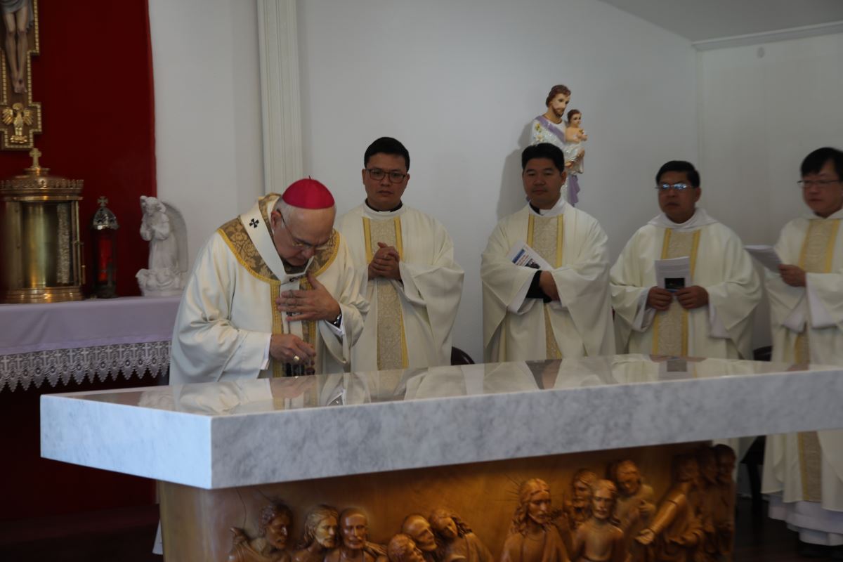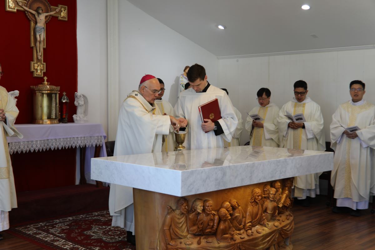 Sau Kinh Tin Kính, Đức Tổng Giám Mục đã long trọng cử hành nghi thức làm phép bàn thờ với việc xông hương và rảy nước thánh. Bàn thờ, trung tâm và trái tim của nhà nguyện, là nơi hy lễ Thánh Thể được cử hành, nơi bánh và rượu trở nên Mình và Máu Thánh Chúa Kitô, quy tụ cộng đoàn thành một gia đình trong Giáo Hội, cùng chung chia nguồn ân sủng cứu độ.