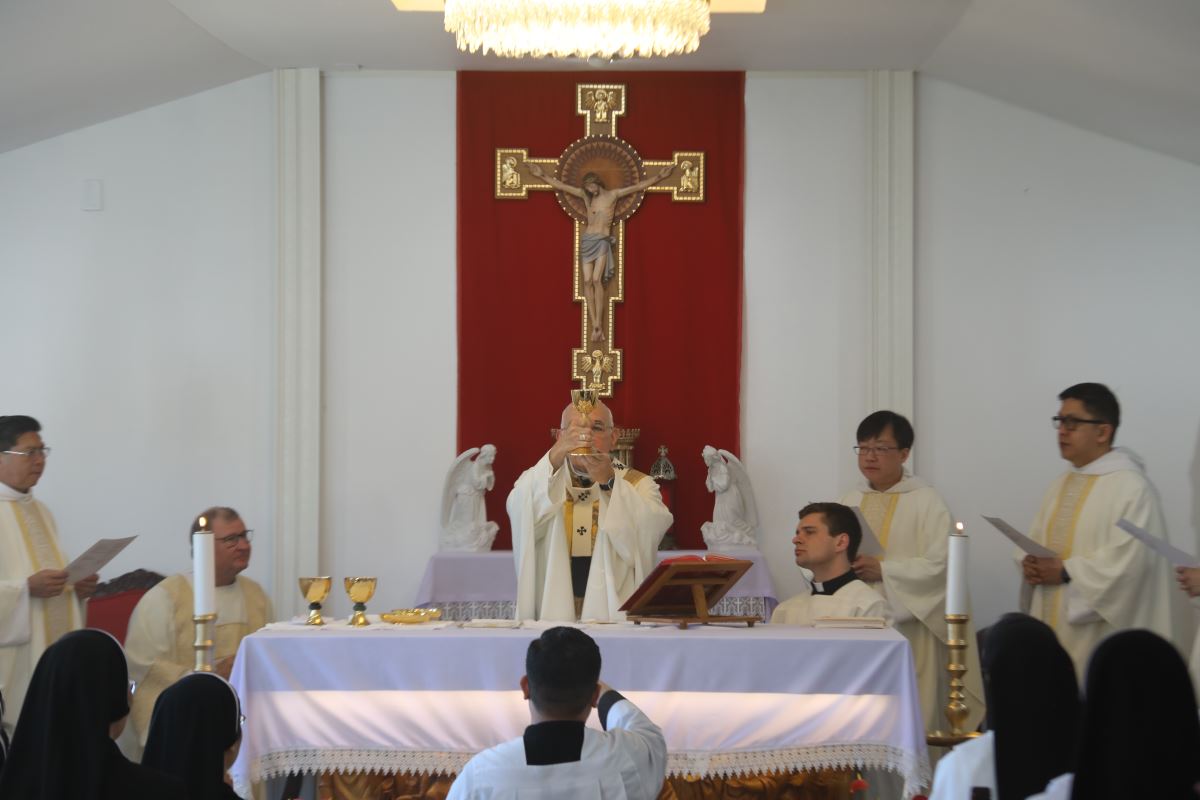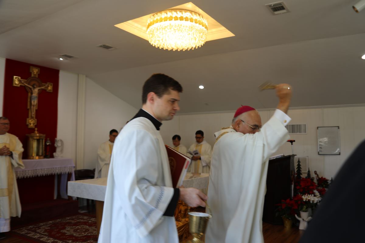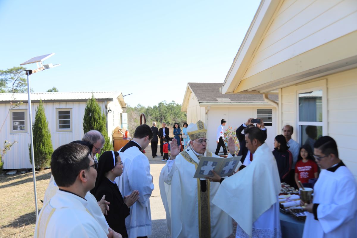 Sau Thánh Lễ, Đức Tổng Giám Mục cũng rảy nước thánh làm phép tu viện mới của cộng đoàn, phó dâng nơi đây cho sự bảo trợ và chúc lành của Thiên Chúa.