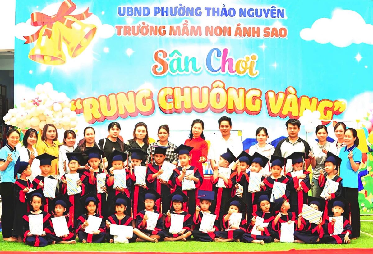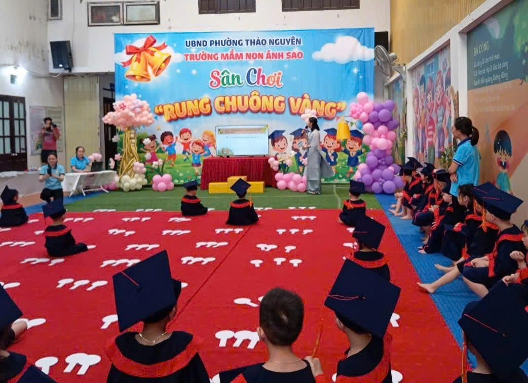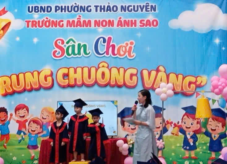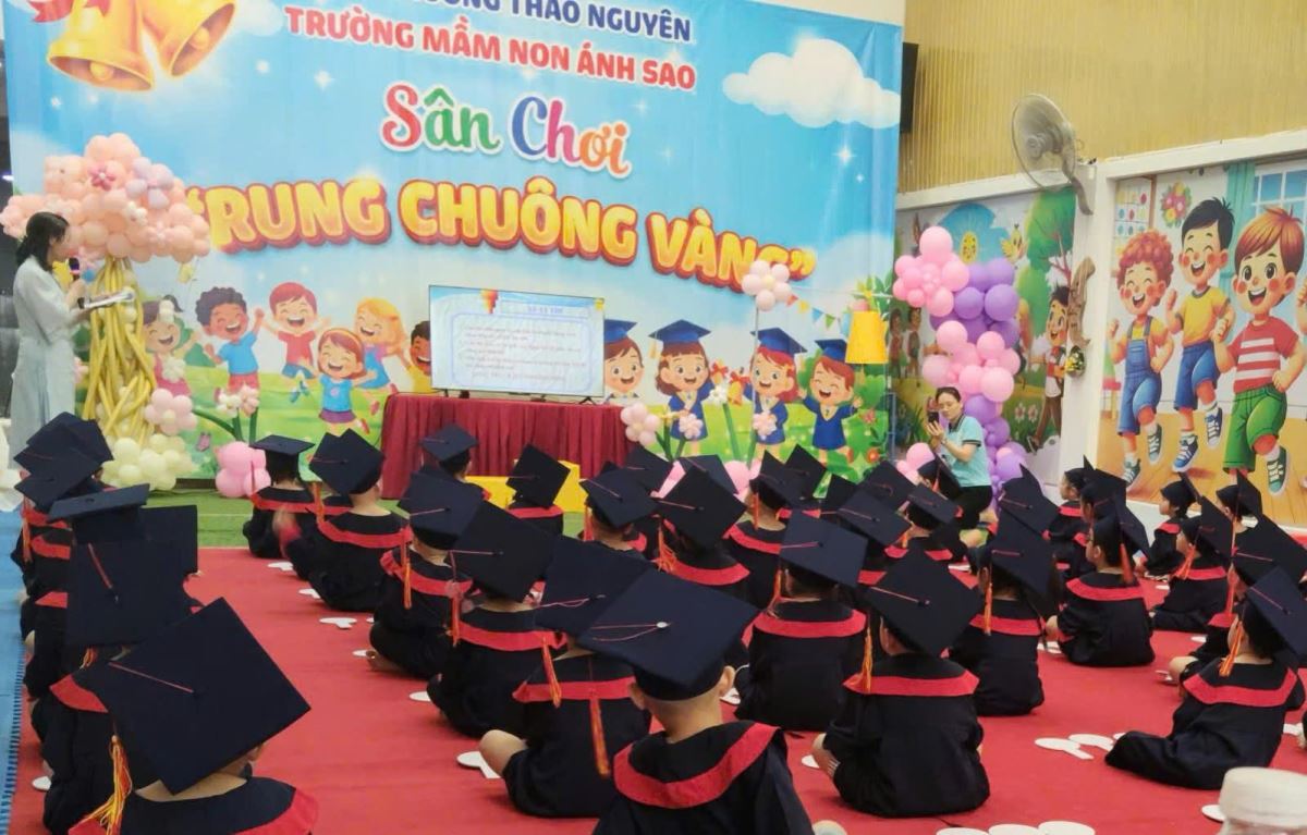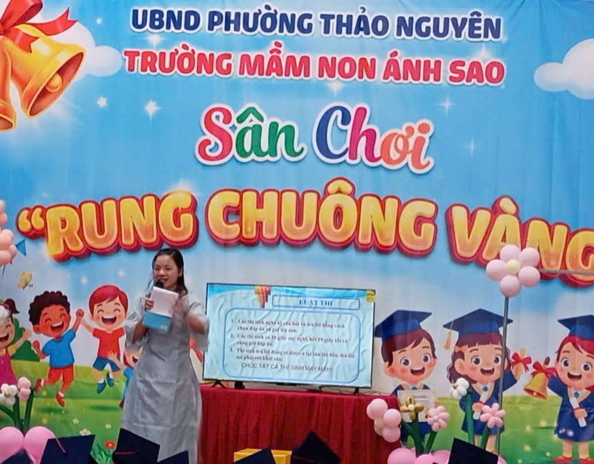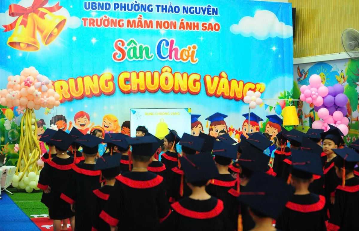 WMTGHH - Sáng ngày 15/04/2026, khi ánh ban mai trong trẻo của vùng cao nguyên Mộc Châu vừa ló rạng, khuôn viên Trường Mầm Non Ánh Sao như bừng sáng bởi tiếng cười và những bước chân ríu rít của các bé, nhất là các bé khối lớp 5 tuổi đang háo hức chuẩn bị tham gia hội thi “Rung Chuông Vàng”. Đây là một sân chơi đầy sáng tạo dành cho các bé, biến một hoạt động học tập thành một ngày hội ngập tràn sắc màu tuổi thơ cho các bé, nơi niềm vui, sự tự tin và những cảm xúc hồn nhiên được lan tỏa khắp không gian.