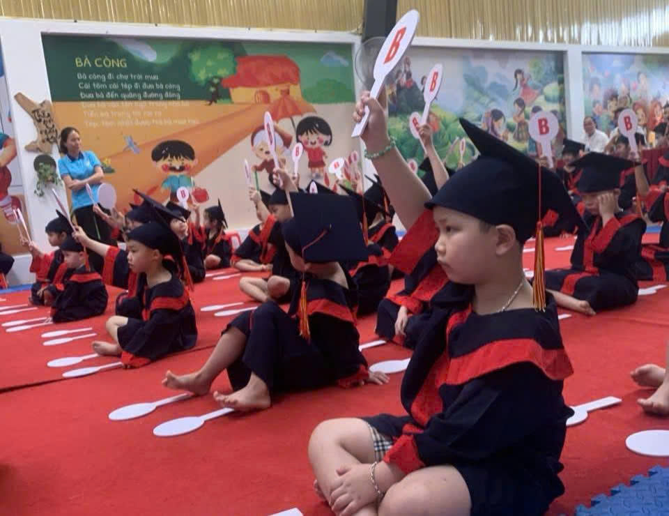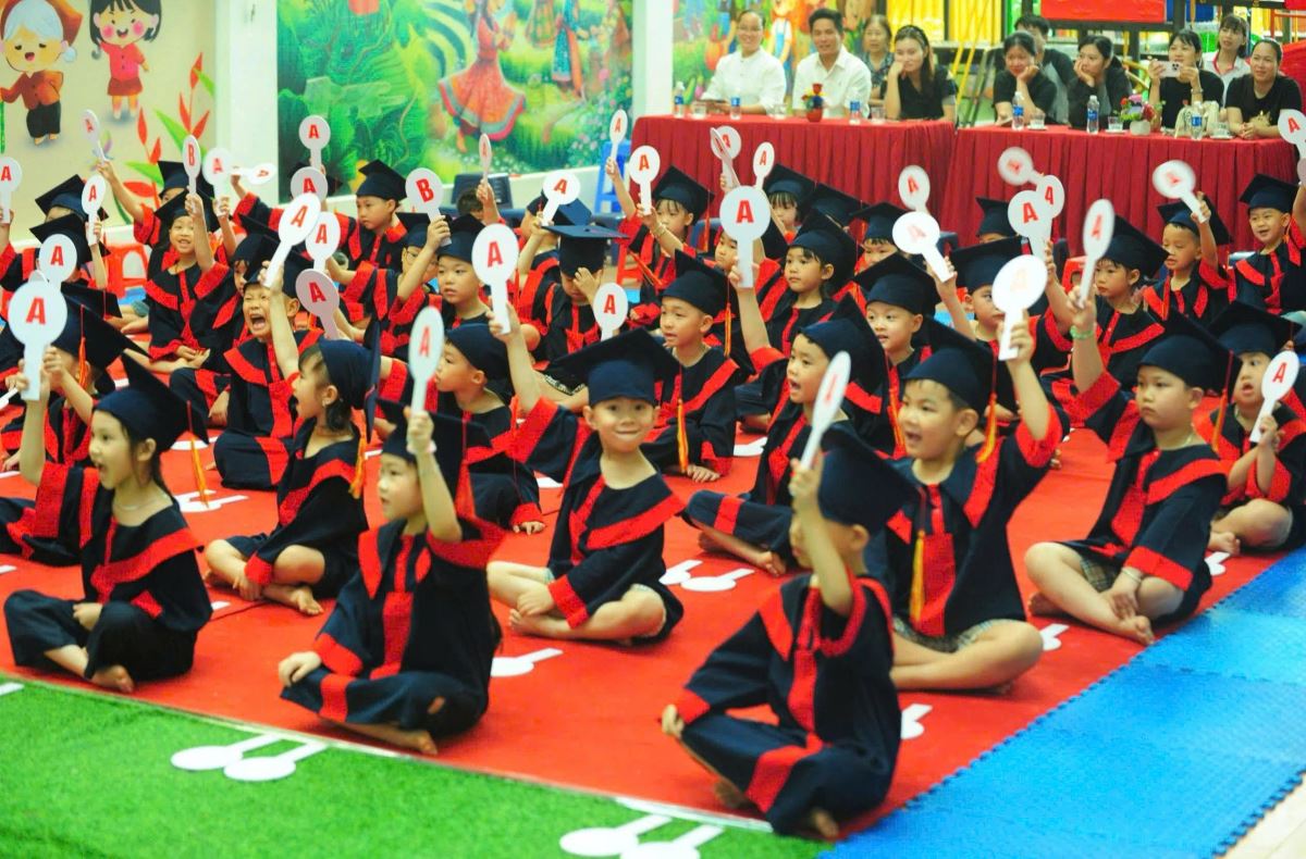 Khi phần thi bắt đầu, bầu không khí cũng trở nên sôi động. Mỗi câu hỏi vang lên là một lần các bé chăm chú suy nghĩ, đôi mắt mở to, gương mặt đầy biểu cảm. Những cánh tay nhỏ xinh giơ cao bảng trả lời một cách nhanh nhẹn, tự tin và đầy quyết tâm. Có những tiếng “ồ” đầy thích thú khi đáp án được đưa ra. Mỗi khoảnh khắc đều sống động và tràn đầy năng lượng tuổi thơ.