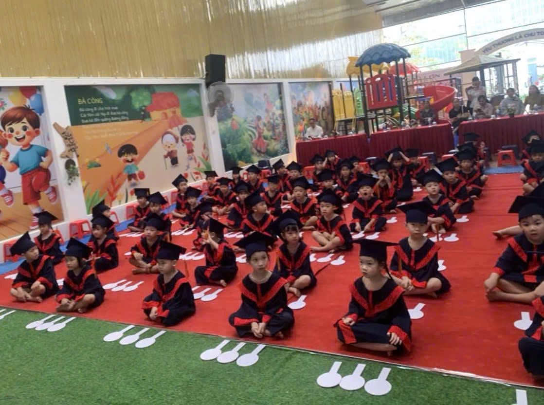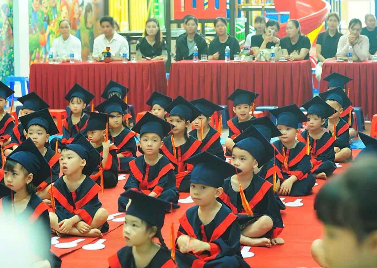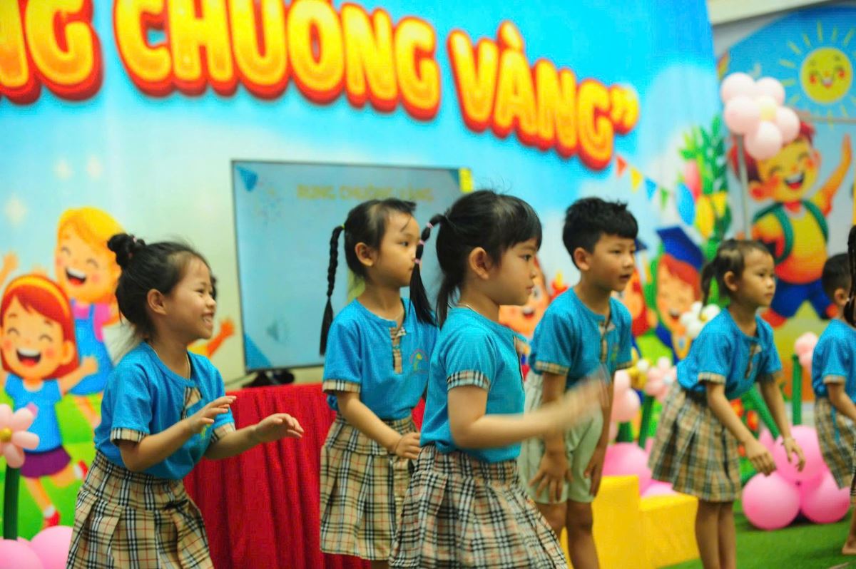 Tham dự chương trình có cô Hiệu trưởng Bùi Thị Ước, cô Hiệu phó Nguyễn Thị Như, bà Đặng Thu Huyền – Hội trưởng Hội Phụ huynh, cùng tập thể giáo viên nhà trường và đông đảo phụ huynh đến cổ vũ cho các con. Sự góp mặt đầy đủ và ấm áp ấy đã khiến hội thi thêm phần trang trọng nhưng vẫn gần gũi, thân thương. Trước khi chương trình chính thức bắt đầu, các bé lớp 4 tuổi đã biểu diễn vũ điệu “Aram Sam Sam” vô cùng đáng yêu. Những “vũ công nhí” với đôi má hồng xinh, ánh mắt long lanh, nhún nhảy theo nhạc một cách hồn nhiên. Những đôi tay nhỏ xinh vỗ nhịp, những bước nhảy ngộ nghĩnh cùng gương mặt rạng rỡ đã khiến cả hội trường như tan chảy. Tiếng nhạc vui tươi hòa cùng tiếng cười giòn tan và những tràng pháo tay vang lên không ngớt đã tạo nên một khởi đầu đầy năng lượng và cảm xúc cho hội thi.