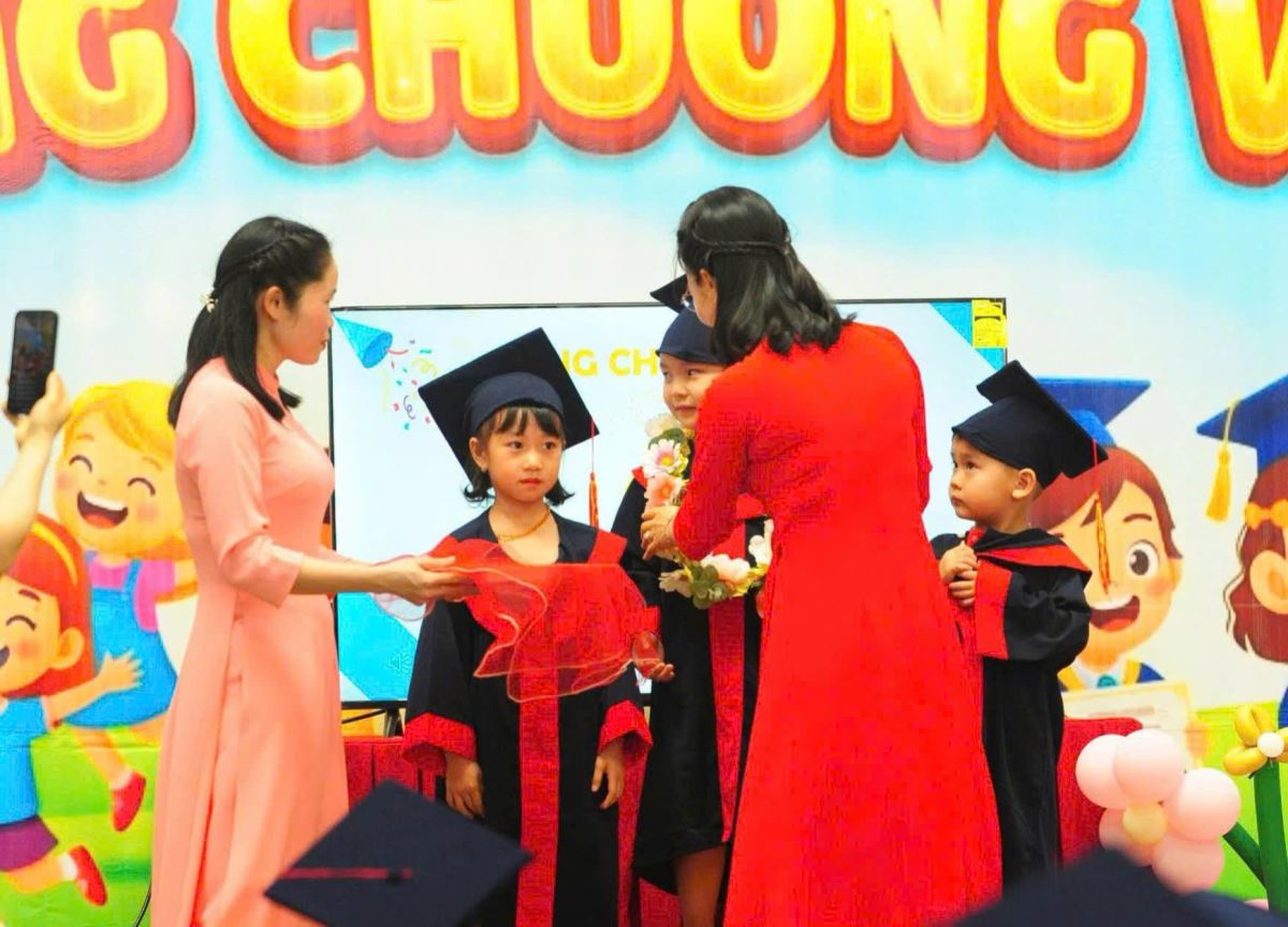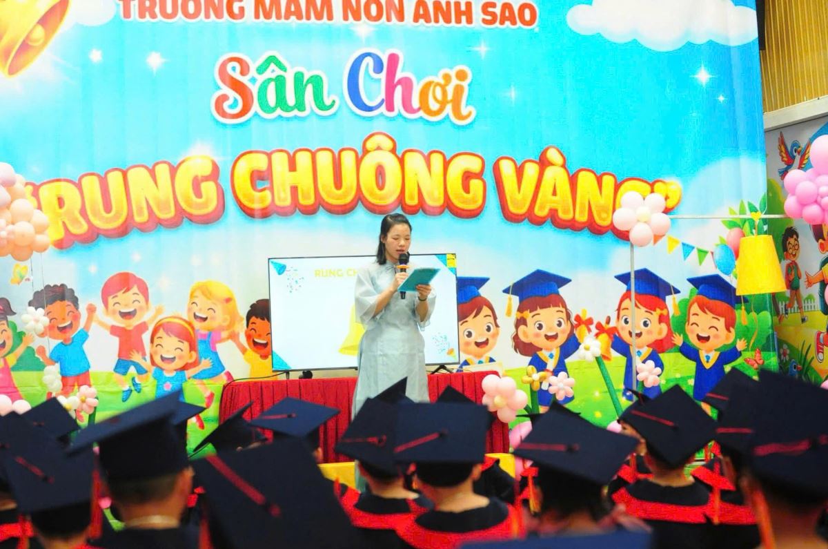 Đúng 9g45, hội thi chính thức kết thúc trong niềm hân hoan và xúc động, với kết quả chung cuộc: Giải Nhất thuộc về bé Trần Gia Bảo, được cô Hiệu trưởng Bùi Thị Ước trực tiếp trao thưởng trong niềm tự hào; cô Hiệu phó Nguyễn Thị Như trao Giải Nhì cho bé Trần Đào Khánh An và bà Đặng Thu Huyền - Hội trưởng Hội Phụ huynh trao Giải Ba cho bé Nguyễn Đức Lộc trong niềm vui rạng rỡ. Hội thi “Rung Chuông Vàng” khép lại, nhưng dư âm vẫn còn trong từng ánh mắt lấp lánh, từng nụ cười “thiên thần” của các bé. Đó là niềm vui khi được khám phá tri thức, là sự tự tin khi dám thể hiện bản thân, và là những bước trưởng thành đầu tiên thật đáng nhớ. Hội thi đã gieo vào lòng các bé những hạt mầm của tri thức, của niềm tin, của những ước mơ và để lại trong tâm hồn các bé một ký ức thật đẹp của tuổi thơ hồn nhiên đáng yêu. Chúc các bé luôn chăm ngoan, tự tin khám phá thế giới và hạnh phúc mỗi ngày dưới mái trường Mầm Non Ánh Sao thân yêu.