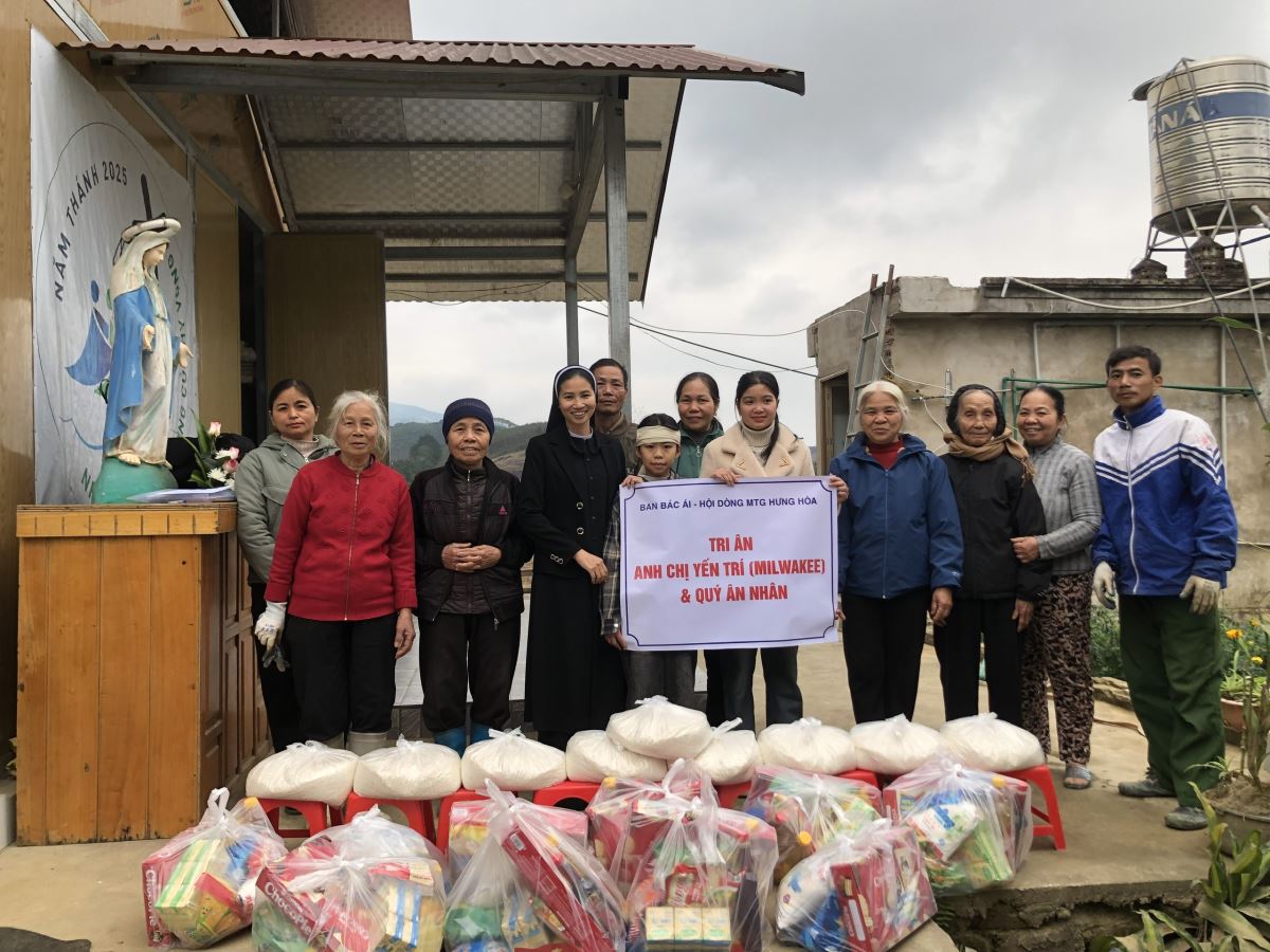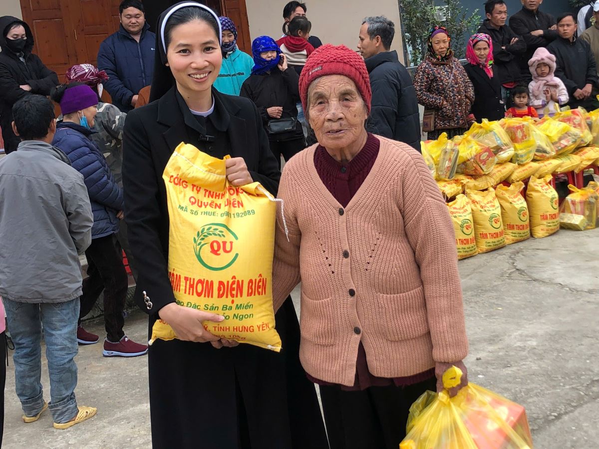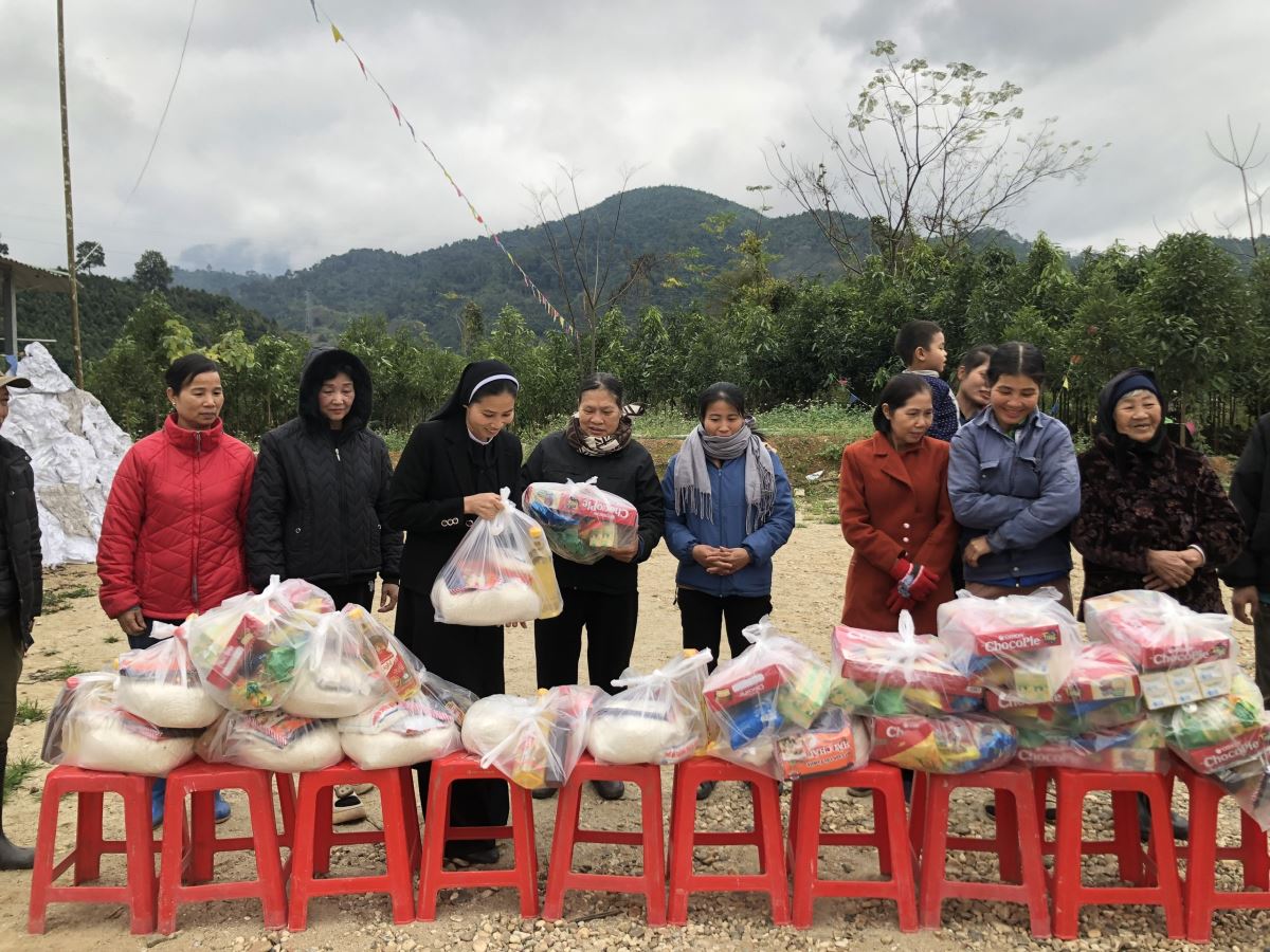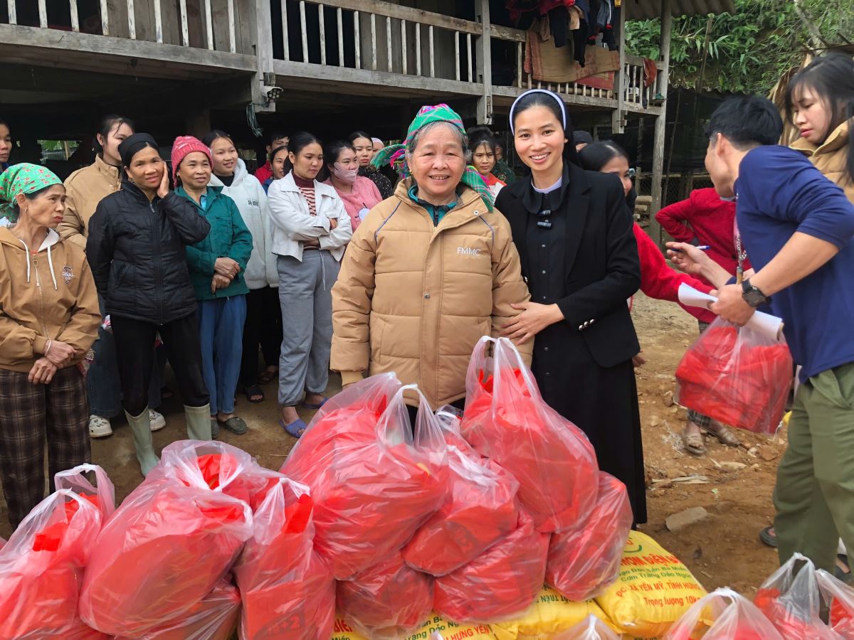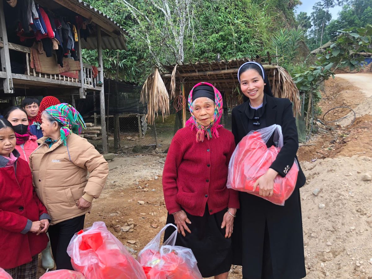 WMTGHH - Trong những ngày cuối năm, khi Xuân mới đang về trên khắp mọi miền đất nước, vẫn còn đó nhiều gia đình đồng bào vùng cao đang phải đối diện với muôn vàn thiếu thốn, lo toan cho một cái Tết đủ đầy. Với tinh thần bác ái và thao thức sẻ chia, Ban Bác Ái - Hội Dòng Mến Thánh Giá Hưng Hóa đã thực hiện chương trình trao quà Tết Nguyên đán năm 2026 cho người nghèo vùng cao, diễn ra từ ngày 24 đến 27 tháng 01 năm 2026. Trong những ngày này, quý nữ tu Ban Bác Ái đã tới thăm và trao quà Tết cho 176 hộ gia đình nghèo, thuộc các sắc tộc: Dao, Tày, Dáy, H’mông... tại nhiều bản làng xa xôi thuộc tỉnh Lào Cai. Mỗi chuyến đi không chỉ mang theo những phần quà vật chất, mà còn là sự hiện diện yêu thương, lời thăm hỏi ân cần và niềm hy vọng được sẻ chia trong những ngày giáp Tết. Chương trình trao quà Tết được sự hỗ trợ và cộng tác của hai nhóm ân nhân: 1. Gia đình anh chị Thu Phúc và quý Ân nhân Hội St. Joseph Lovers of Poverty đã hỗ trợ 52 phần quà Tết, được Ban Bác Ái trao tận tay 52 hộ gia đình tại thôn Lằng Đát, xã Nghĩa Đô, tỉnh Lào Cai. 2. Cha Viên, Cha Thiên, anh chị Toàn Oanh, anh chị Hùng Vân, anh chị Hùng Chi, anh chị Thi Loan, anh chị Thanh Hiệp, anh chị Hoàng Huyền và anh chị Trí Yến đã quảng đại hỗ trợ 124 suất quà Tết. Những phần quà này cũng đã được Ban Bác Ái trao tận tay 124 gia đình tại 17 bản làng, thuộc 05 xã: Phúc Khánh, Việt Tiến, Bảo Yên, Thượng Hà và Tân Tiến, tỉnh Lào Cai, thuộc Giáo phận Hưng Hóa. Mỗi phần quà Tết bao gồm các nhu yếu phẩm thiết thực như: gạo, dầu ăn, muối, hạt nêm, nước mắm, bánh tết. Phần quà tuy đơn sơ nhưng đó là sự góp nhặt của yêu thương của tình người, giúp bà con có thêm điều kiện đón Tết ấm áp hơn, vơi bớt những vất vả, nhọc nhằn của cuộc sống thường ngày. Ban Bác Ái Hội Dòng Mến Thánh Giá Hưng Hóa xin thay lời cho 176 hộ gia đình chân thành tri ân quý Cha và quý Ân nhân đã quảng đại sẻ chia, góp phần mang đến cho bà con nghèo vùng cao một cái Tết ấm áp và chan chứa yêu thương. Nguyện xin Thiên Chúa chúc lành, gìn giữ và trả công bội hậu cho quý Ân nhân cùng gia đình.