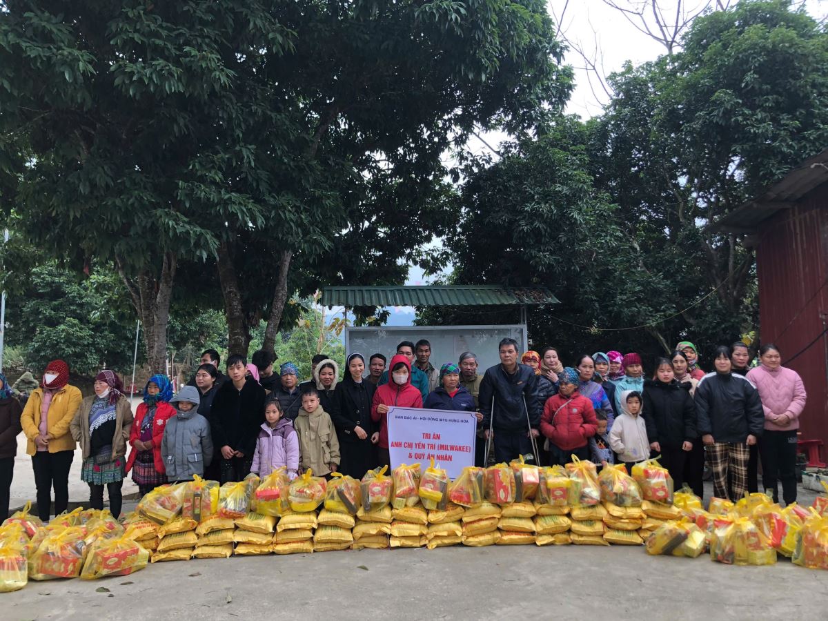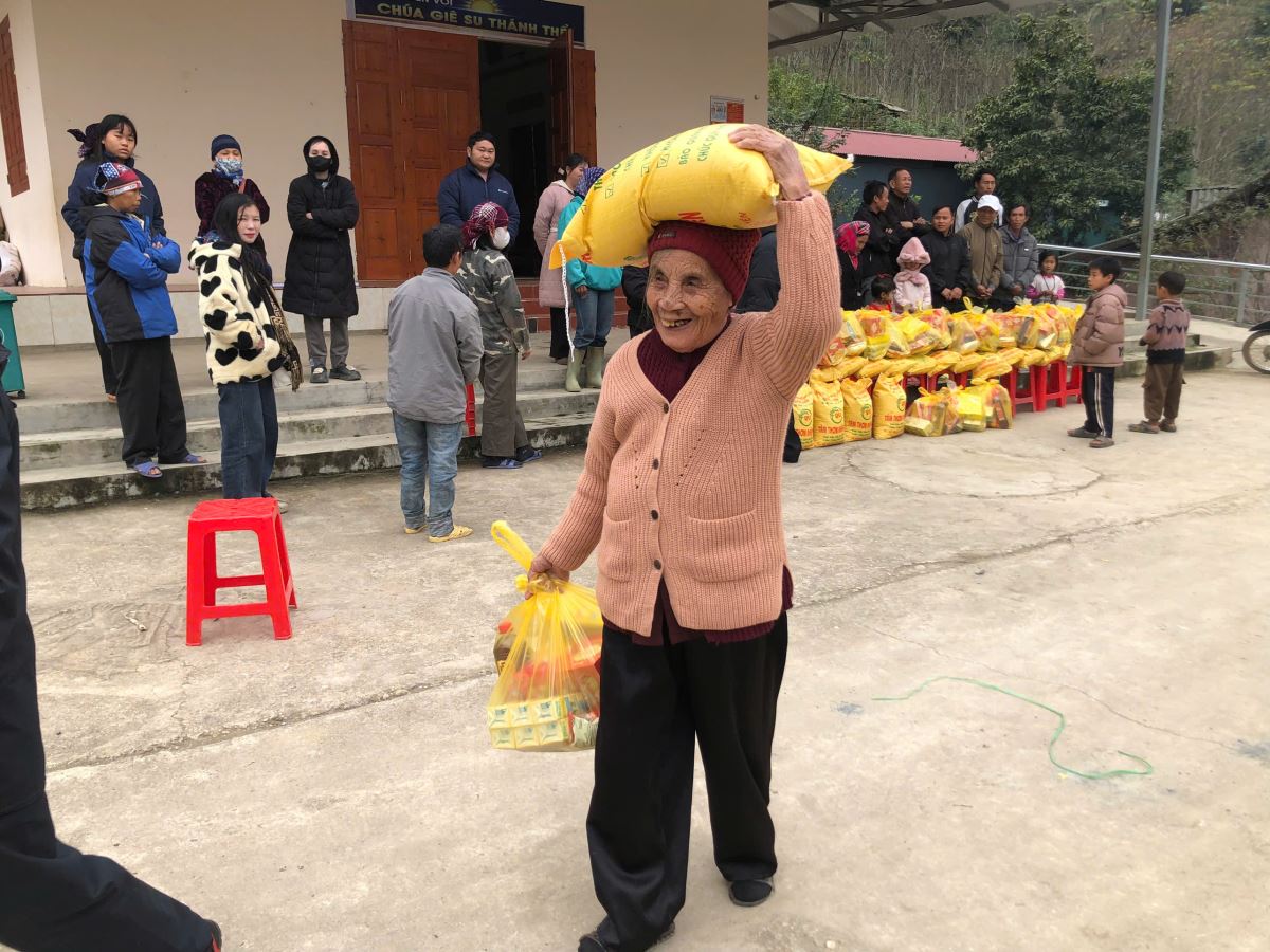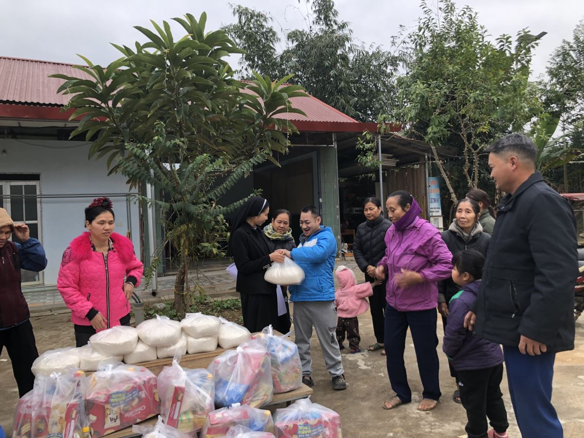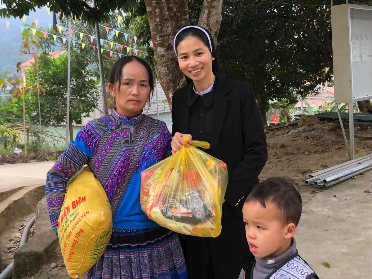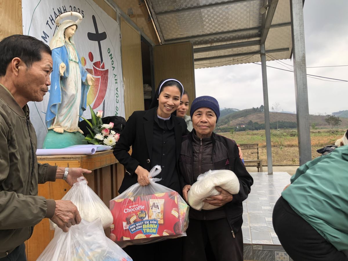 WMTGHH - Trong những ngày cuối năm, khi Xuân mới đang về trên khắp mọi miền đất nước, vẫn còn đó nhiều gia đình đồng bào vùng cao đang phải đối diện với muôn vàn thiếu thốn, lo toan cho một cái Tết đủ đầy. Với tinh thần bác ái và thao thức sẻ chia, Ban Bác Ái - Hội Dòng Mến Thánh Giá Hưng Hóa đã thực hiện chương trình trao quà Tết Nguyên đán năm 2026 cho người nghèo vùng cao, diễn ra từ ngày 24 đến 27 tháng 01 năm 2026. Trong những ngày này, quý nữ tu Ban Bác Ái đã tới thăm và trao quà Tết cho 176 hộ gia đình nghèo, thuộc các sắc tộc: Dao, Tày, Dáy, H’mông... tại nhiều bản làng xa xôi thuộc tỉnh Lào Cai. Mỗi chuyến đi không chỉ mang theo những phần quà vật chất, mà còn là sự hiện diện yêu thương, lời thăm hỏi ân cần và niềm hy vọng được sẻ chia trong những ngày giáp Tết. Chương trình trao quà Tết được sự hỗ trợ và cộng tác của hai nhóm ân nhân: 1. Gia đình anh chị Thu Phúc và quý Ân nhân Hội St. Joseph Lovers of Poverty đã hỗ trợ 52 phần quà Tết, được Ban Bác Ái trao tận tay 52 hộ gia đình tại thôn Lằng Đát, xã Nghĩa Đô, tỉnh Lào Cai. 2. Cha Viên, Cha Thiên, anh chị Toàn Oanh, anh chị Hùng Vân, anh chị Hùng Chi, anh chị Thi Loan, anh chị Thanh Hiệp, anh chị Hoàng Huyền và anh chị Trí Yến đã quảng đại hỗ trợ 124 suất quà Tết. Những phần quà này cũng đã được Ban Bác Ái trao tận tay 124 gia đình tại 17 bản làng, thuộc 05 xã: Phúc Khánh, Việt Tiến, Bảo Yên, Thượng Hà và Tân Tiến, tỉnh Lào Cai, thuộc Giáo phận Hưng Hóa. Mỗi phần quà Tết bao gồm các nhu yếu phẩm thiết thực như: gạo, dầu ăn, muối, hạt nêm, nước mắm, bánh tết. Phần quà tuy đơn sơ nhưng đó là sự góp nhặt của yêu thương của tình người, giúp bà con có thêm điều kiện đón Tết ấm áp hơn, vơi bớt những vất vả, nhọc nhằn của cuộc sống thường ngày. Ban Bác Ái Hội Dòng Mến Thánh Giá Hưng Hóa xin thay lời cho 176 hộ gia đình chân thành tri ân quý Cha và quý Ân nhân đã quảng đại sẻ chia, góp phần mang đến cho bà con nghèo vùng cao một cái Tết ấm áp và chan chứa yêu thương. Nguyện xin Thiên Chúa chúc lành, gìn giữ và trả công bội hậu cho quý Ân nhân cùng gia đình.
