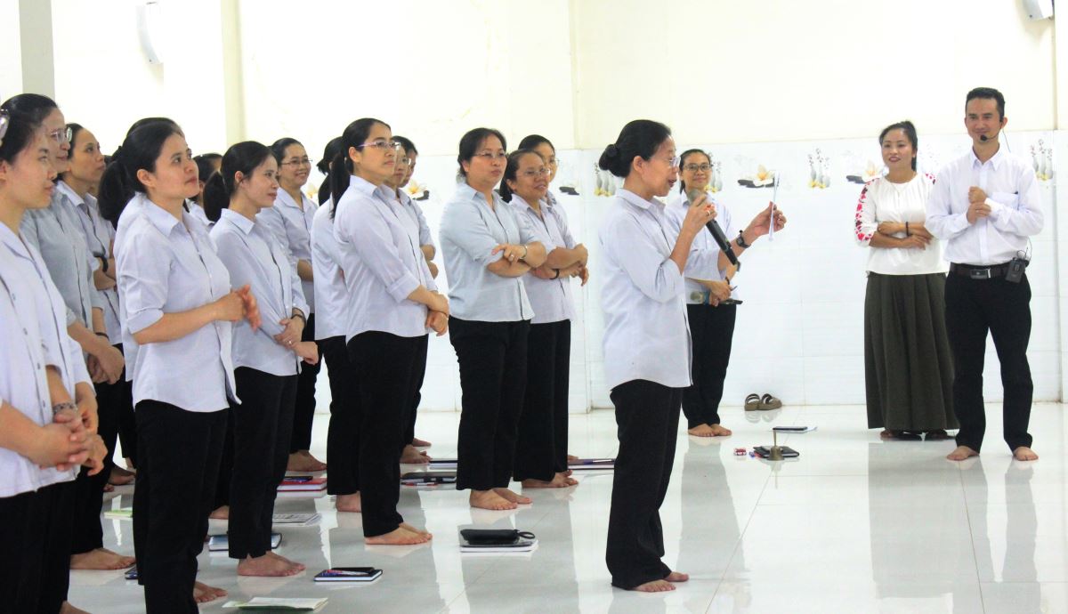 Với phương pháp giảng dạy linh hoạt, sinh động kết hợp giữa lý thuyết và thực hành, các giảng viên đã mang đến không khí học tập sôi nổi, gợi mở và đầy cảm hứng. Những bài tập tình huống, hoạt động nhóm, và phần chia sẻ kinh nghiệm thực tế đã giúp các chị em nhìn lại chính mình, học hỏi lẫn nhau và khơi dậy sự cam kết mới trong sứ mạng giáo dục.