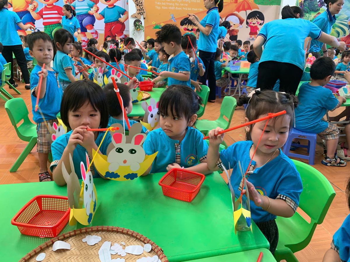 Chương trình bắt đầu từ 09g00 đến 10g00, diễn ra trong không khí vui tươi, háo hức của các bé và sự chuẩn bị chu đáo từ tập thể giáo viên, nhà trường. Ngay từ đầu buổi sáng, các lớp đã được cô Hiệu phó Nguyễn Thị Như tập trung, ổn định đội hình và khởi động cuộc thi bằng vũ điệu “Chicken Dance” sôi động. Giai điệu rộn ràng cùng những động tác nhảy ngộ nghĩnh đã mang đến bầu không khí phấn khởi, tạo sự hào hứng cho các bé bước vào hoạt động chính.