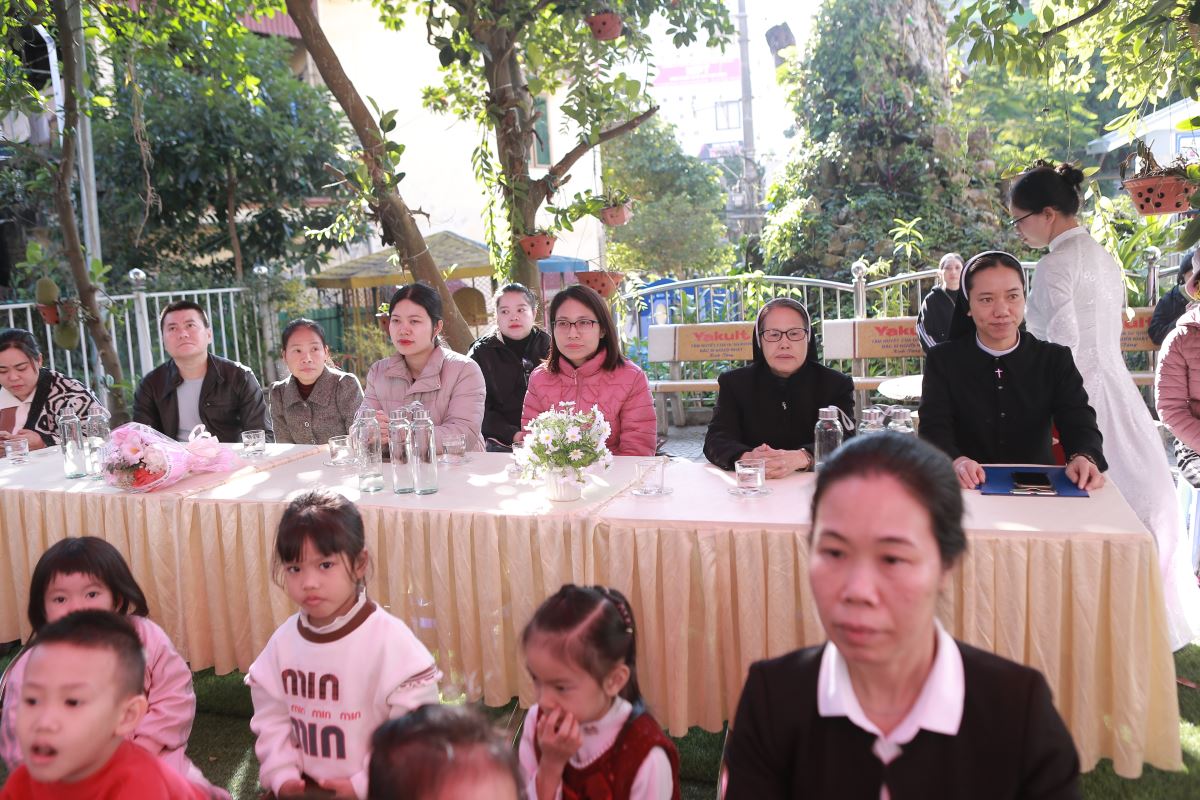 WMTGHH - Hòa chung trong không khí tưng bừng của cả nước chào mừng ngày Nhà giáo Việt Nam 20/11, trường Mầm non Ánh Dương thuộc Cộng đoàn MTG Yên Bái, phường Yên Bái, tỉnh Lào Cai đã long trọng tổ chức chuỗi hoạt động ý nghĩa nhằm tôn vinh nghề dạy học – nghề “ươm mầm xanh” cho tương lai. Với sự chuẩn bị chu đáo, sáng tạo và đầy tâm huyết, các chương trình của nhà trường trong ngày 18/11 và 20/11 đã để lại nhiều cảm xúc đẹp, tạo dấu ấn sâu sắc trong lòng phụ huynh và học sinh. Sáng ngày 18/11/2025, nhà trường đã tổ chức lễ khai mạc triển lãm ảnh với chủ đề “Khoảnh khắc bên cô”. Đây là những hình ảnh chân thật và xúc động được ghi lại trong hành trình học tập – vui chơi – trưởng thành của các con dưới bàn tay chăm sóc, dạy dỗ của các cô giáo. Trong không khí trang trọng ấy, cô Hiệu trưởng Anna Bùi Thị Sáu phát biểu khai mạc buổi triển lãm đặc sắc này.