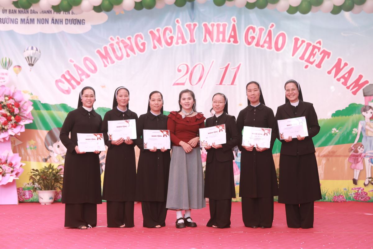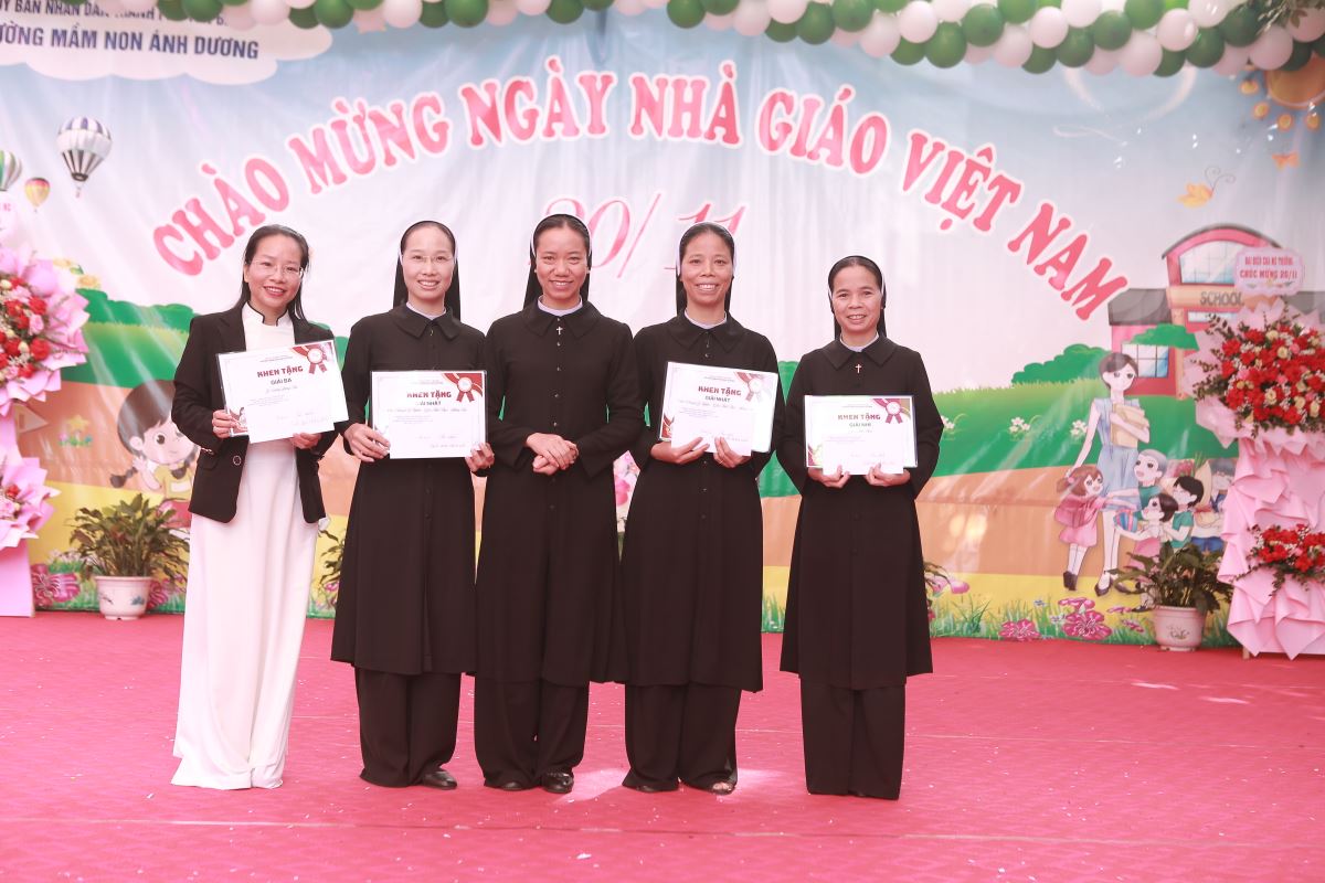 Để thể hiện tâm tình biết ơn thay cho các bé, một vị đại diện cho hội phụ huynh bày tỏ tâm tình biết ơn sâu sắc và những lời chúc tốt đẹp tới các cô giáo trong trường, đồng thời gửi tới các cô lãng hoa tươi thắm. Không khí hội trường trở nên sôi động khi các con được thưởng thức tiết mục xiếc đặc sắc, mang lại nhiều tiếng cười và sự thích thú. Các tiết mục của lớp Rumba và biểu diễn của các cô giáo viên tiếp tục làm nóng sân khấu, thể hiện sự tự tin, tài năng, đồng thời khắc họa môi trường giáo dục năng động, giàu tính nghệ thuật của nhà trường. Hôm nay, nhà trường cũng tổng kết thao giảng cấp trường, ghi nhận sự cố gắng và chuyên môn vững vàng của đội ngũ giáo viên trong các giờ dạy dự thi. Điểm nhấn cuối chương trình là phần trao quà lưu niệm cho các lớp đã tham gia tích cực vào triển lãm “Khoảnh khắc bên cô”. Đây vừa là món quà tinh thần, vừa là lời chúc mừng dành cho mỗi lớp vì những nỗ lực sáng tạo và nhiệt huyết dành cho các con. Chuỗi hoạt động 18/11 và 20/11 không chỉ là dịp để tri ân các thầy cô mà còn góp phần gắn kết tập thể giáo viên, phụ huynh và học sinh. Trường Mầm non Ánh Dương tự hào là ngôi trường đầy ắp tình yêu, nơi các con được học tập trong yêu thương, nơi các cô dạy bằng trái tim và nuôi dưỡng bằng sự kiên nhẫn. Buổi lễ tuy đã khép lại nhưng tâm tình của cô và trò trường Mầm non Ánh Dương vẫn còn kéo dài mãi. Nhà trường chân thành cảm ơn sự đồng hành của quý phụ huynh và sự nhiệt tình của tập thể cán bộ, giáo viên, nhân viên. Hy vọng ngọn lửa yêu nghề mến trẻ luôn bừng sáng trong mỗi trái tim nhà giáo, để hành trình gieo mầm tri thức mãi mãi xanh tươi.