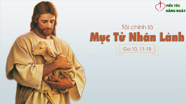 Tôi chính là Mục Tử nhân lành. Mục Tử nhân lành hy sinh mạng sống mình cho đoàn chiên. Người làm thuê, vì không phải là mục tử, và vì chiên không thuộc về anh, nên khi thấy sói đến, anh bỏ chiên mà chạy. Sói vồ lấy chiên và làm cho chiên tán loạn, vì anh ta là kẻ làm thuê, và không thiết gì đến chiên. Tôi chính là Mục Tử nhân lành. Tôi biết chiên của tôi, và chiên của tôi biết tôi, như Chúa Cha biết tôi, và tôi biết Chúa Cha, và tôi hy sinh mạng sống mình cho đoàn chiên.