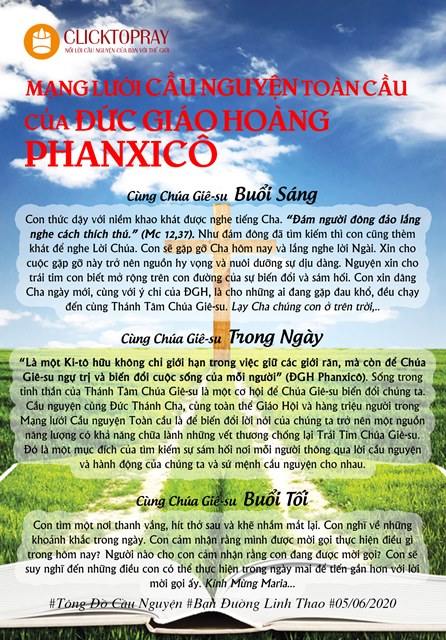 “Là một Ki-tô hữu không chỉ giới hạn trong việc giữ các giới răn, mà còn để Chúa Giê-su ngự trị và biến đổi cuộc sống của mỗi người” (ĐGH Phanxicô). Sống trong tinh thần của Thánh Tâm Chúa Giê-su là một cơ hội để Chúa Giê-su biến đổi chúng ta. Cầu nguyện cùng Đức Thánh Cha, cùng toàn thể Giáo Hội và hàng triệu người trong Mạng lưới Cầu nguyện Toàn cầu là để biến đổi lời nói của chúng ta trở nên một nguồn năng lượng có khả năng chữa lành những vết thương chống lại Trái Tim Chúa Giê-su. Đó là một mục đích của tìm kiếm sự sám hối nơi mỗi người thông qua lời cầu nguyện và hành động của chúng ta và sứ mệnh cầu nguyện cho nhau.