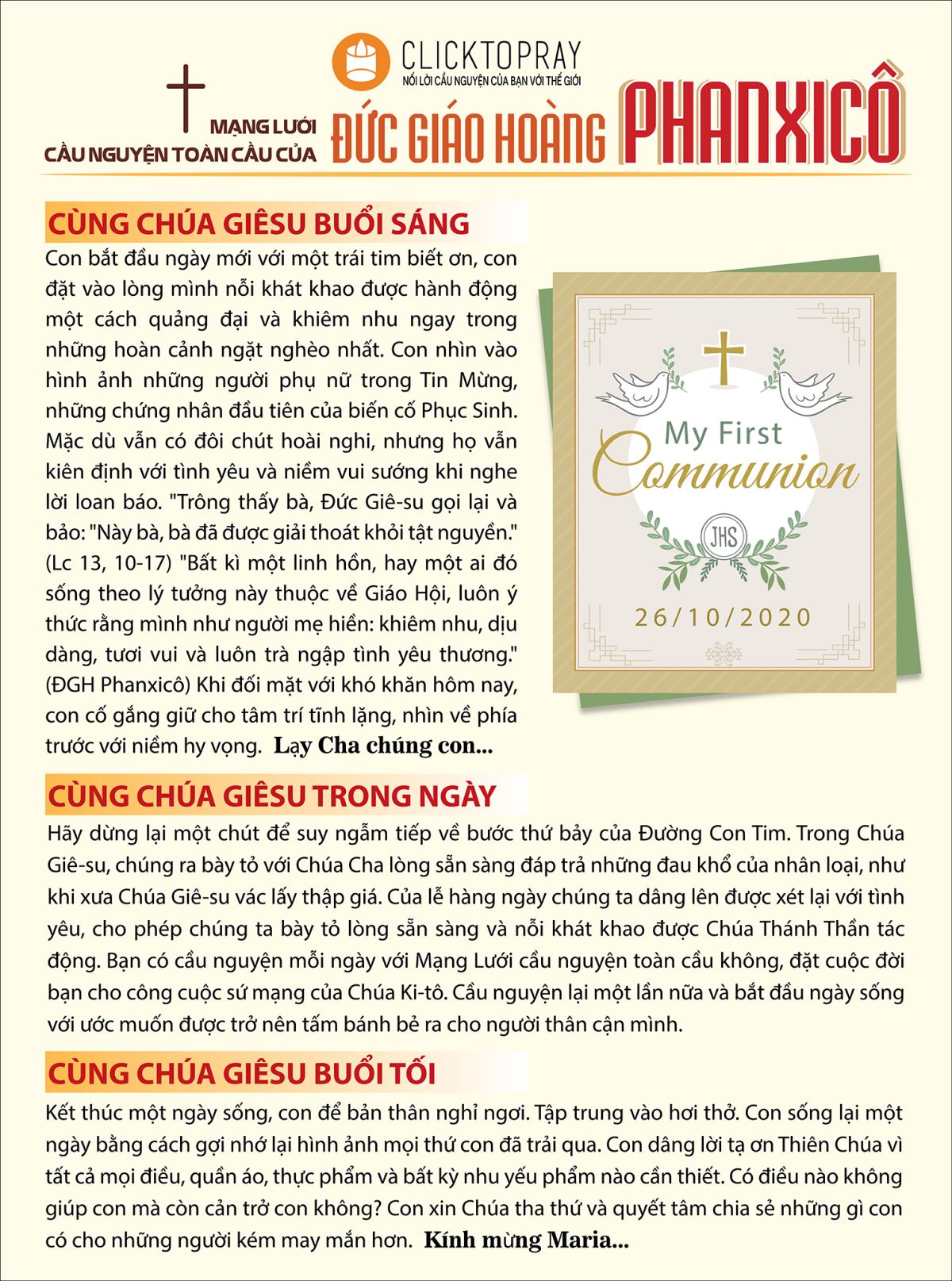 CÙNG CHÚA GIÊSU TRONG NGÀY