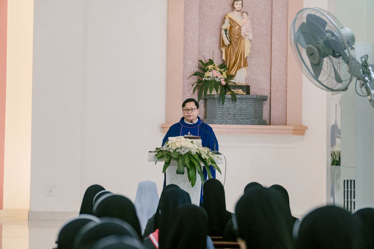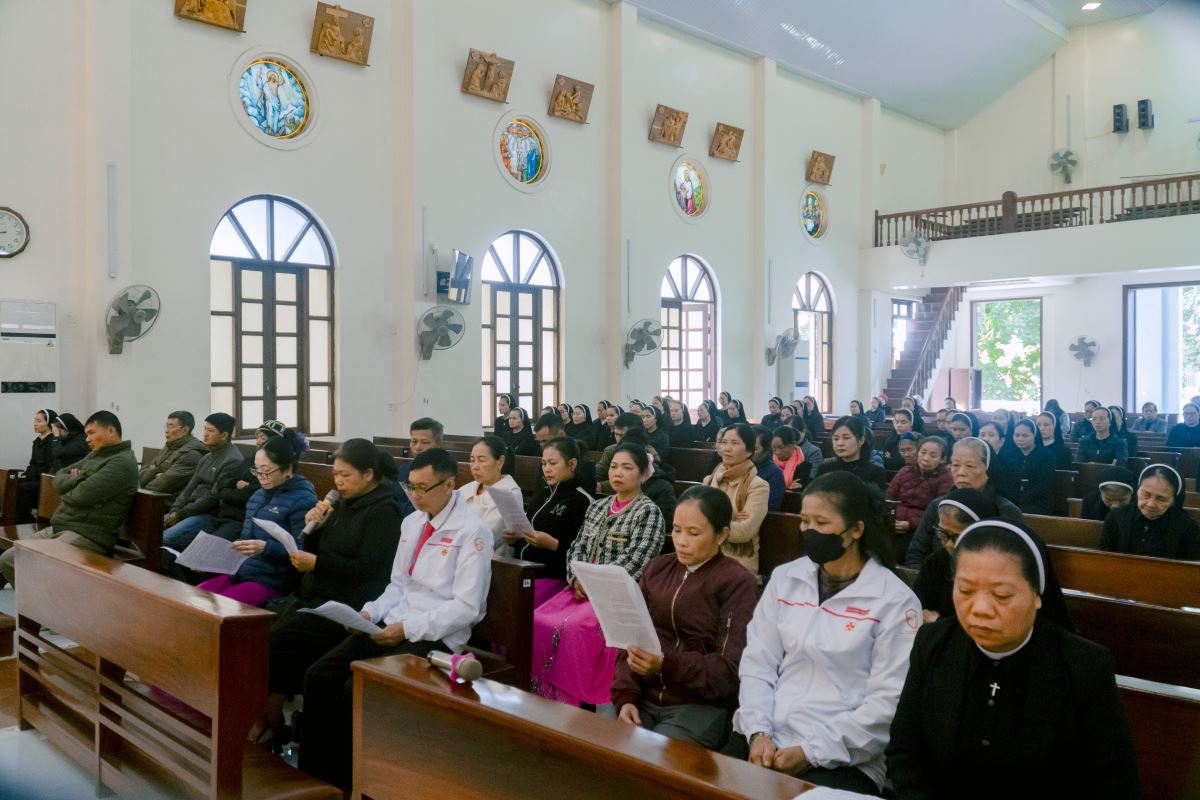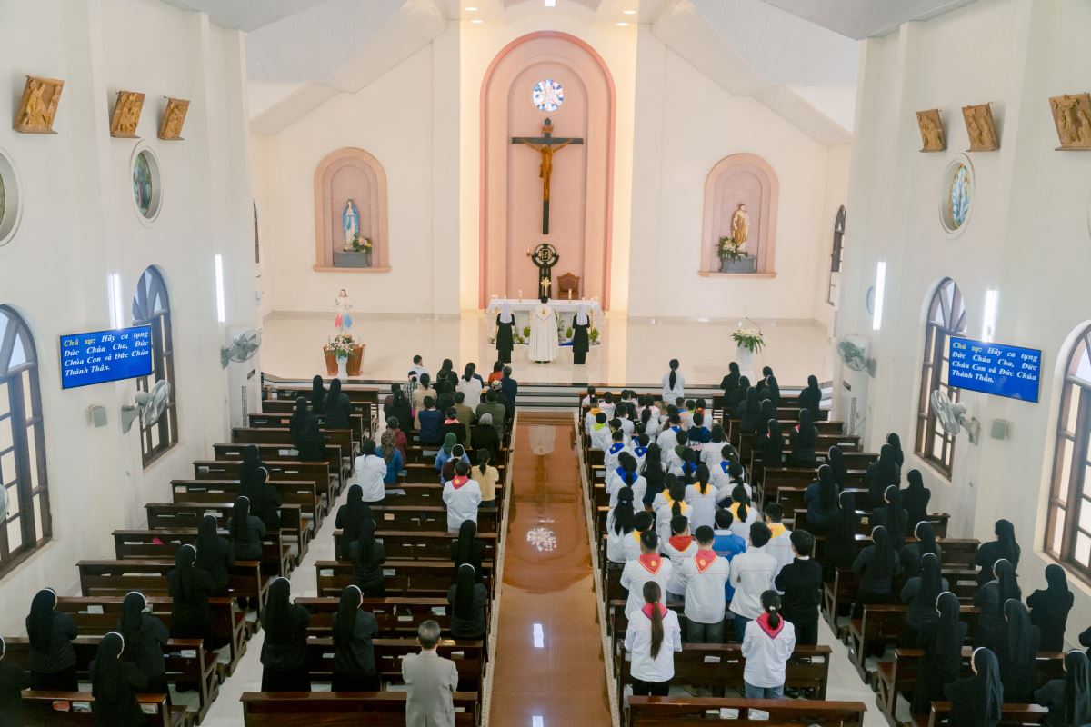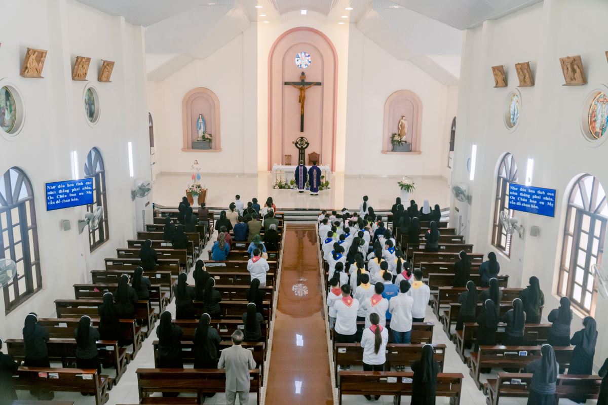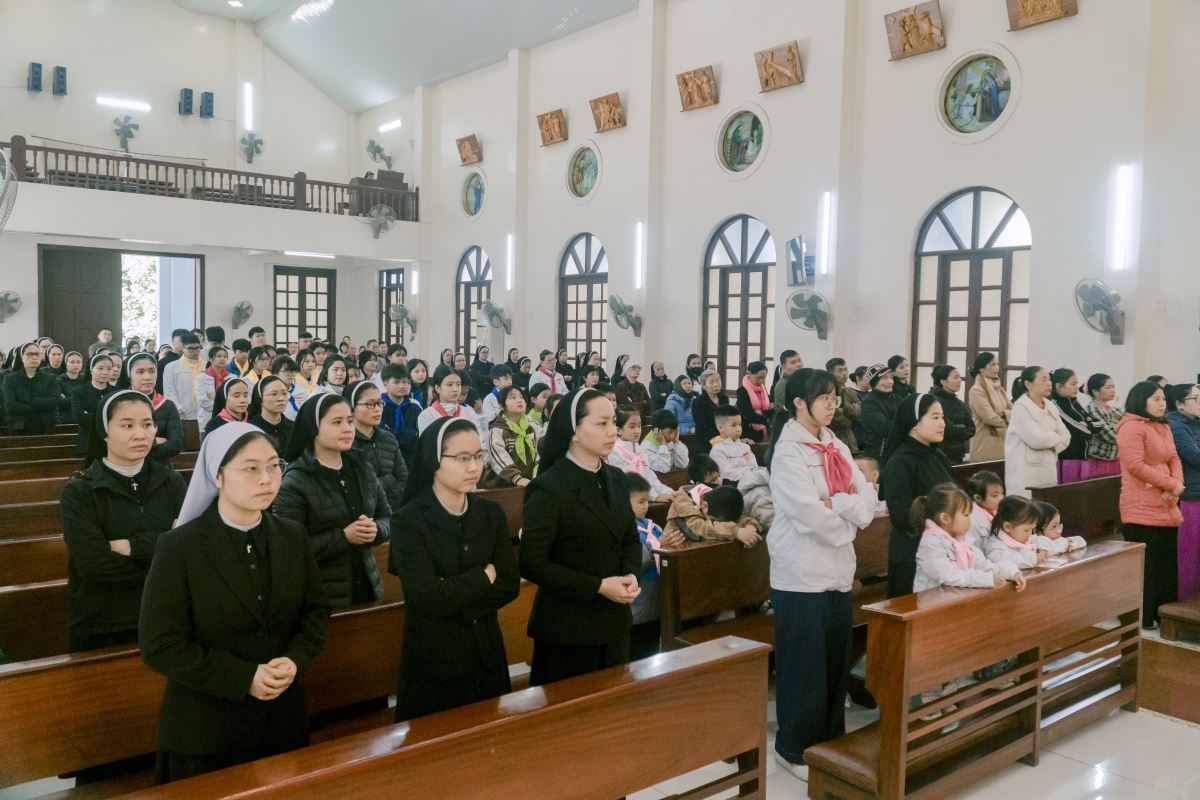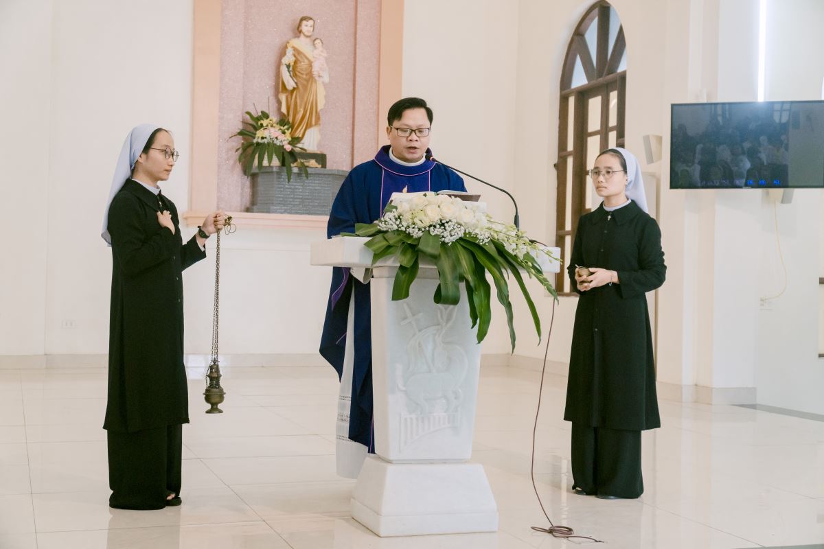 Thánh lễ do cha Giuse Nguyễn Đình Tuyến chủ tế, cùng đồng tế với cha Giuse Lê Thanh Nghị. Tham dự Thánh lễ, có thầy xứ Giuse Chu Văn Thái, quý chị em thuộc các khối đang phục vụ tại Nhà Mẹ Hội dòng, cùng quý chị em từ các cộng đoàn lân cận như Bách Lộc, Sơn Tây, các hội viên Hiệp hội Tín hữu Mến Thánh Giá, Thiếu Nhi Thánh Thể xứ đoàn Đa Minh Savio và cộng đoàn giáo xứ Chính Tòa.