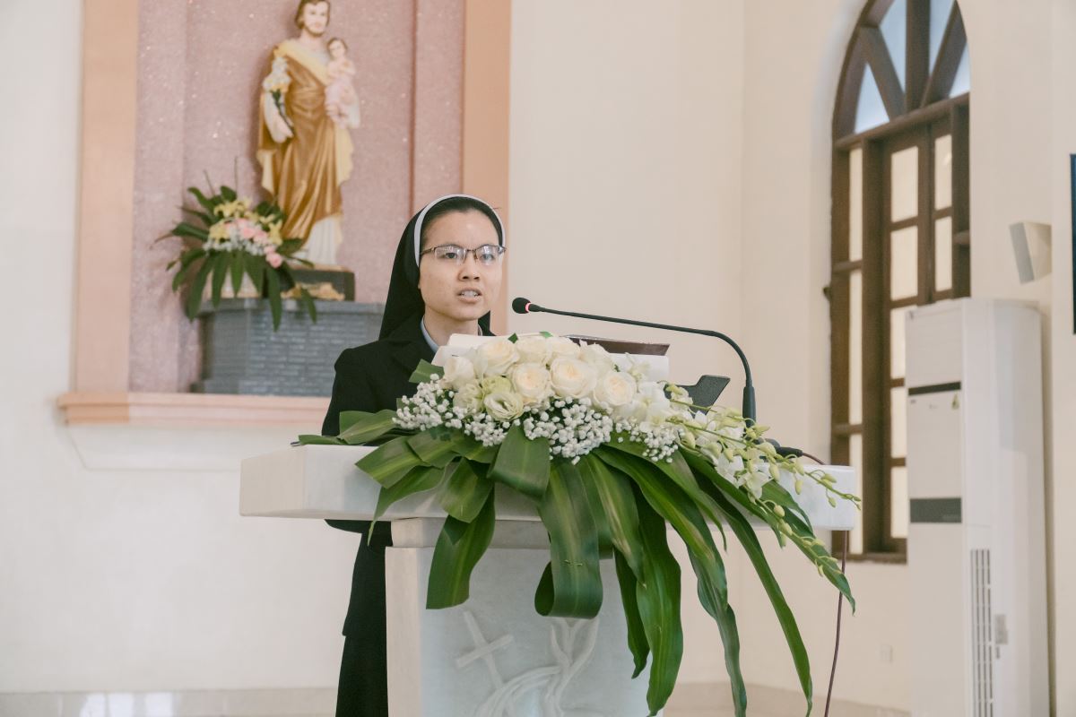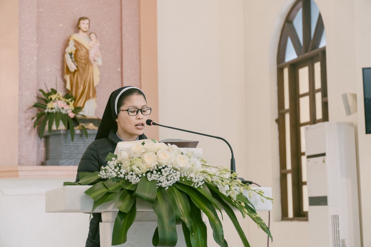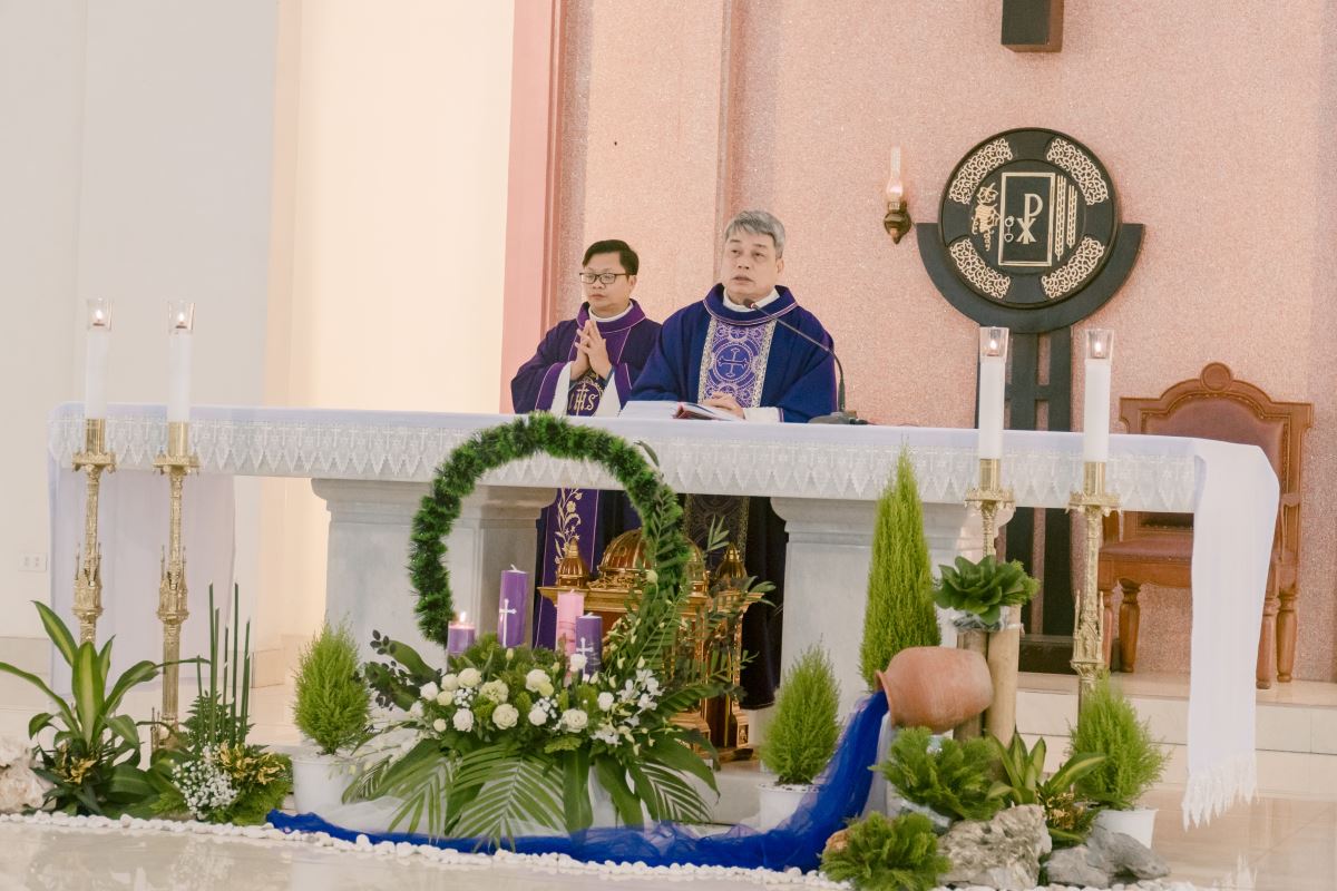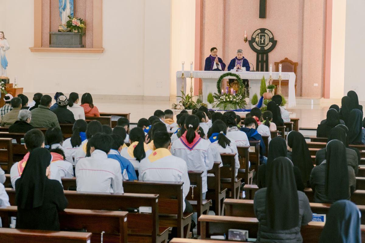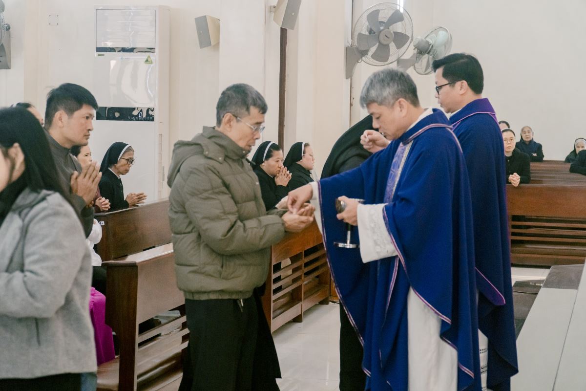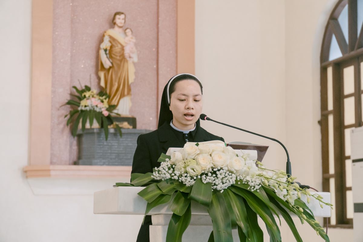 Thánh lễ do cha Giuse Nguyễn Đình Tuyến chủ tế, cùng đồng tế với cha Giuse Lê Thanh Nghị. Tham dự Thánh lễ, có thầy xứ Giuse Chu Văn Thái, quý chị em thuộc các khối đang phục vụ tại Nhà Mẹ Hội dòng, cùng quý chị em từ các cộng đoàn lân cận như Bách Lộc, Sơn Tây, các hội viên Hiệp hội Tín hữu Mến Thánh Giá, Thiếu Nhi Thánh Thể xứ đoàn Đa Minh Savio và cộng đoàn giáo xứ Chính Tòa.